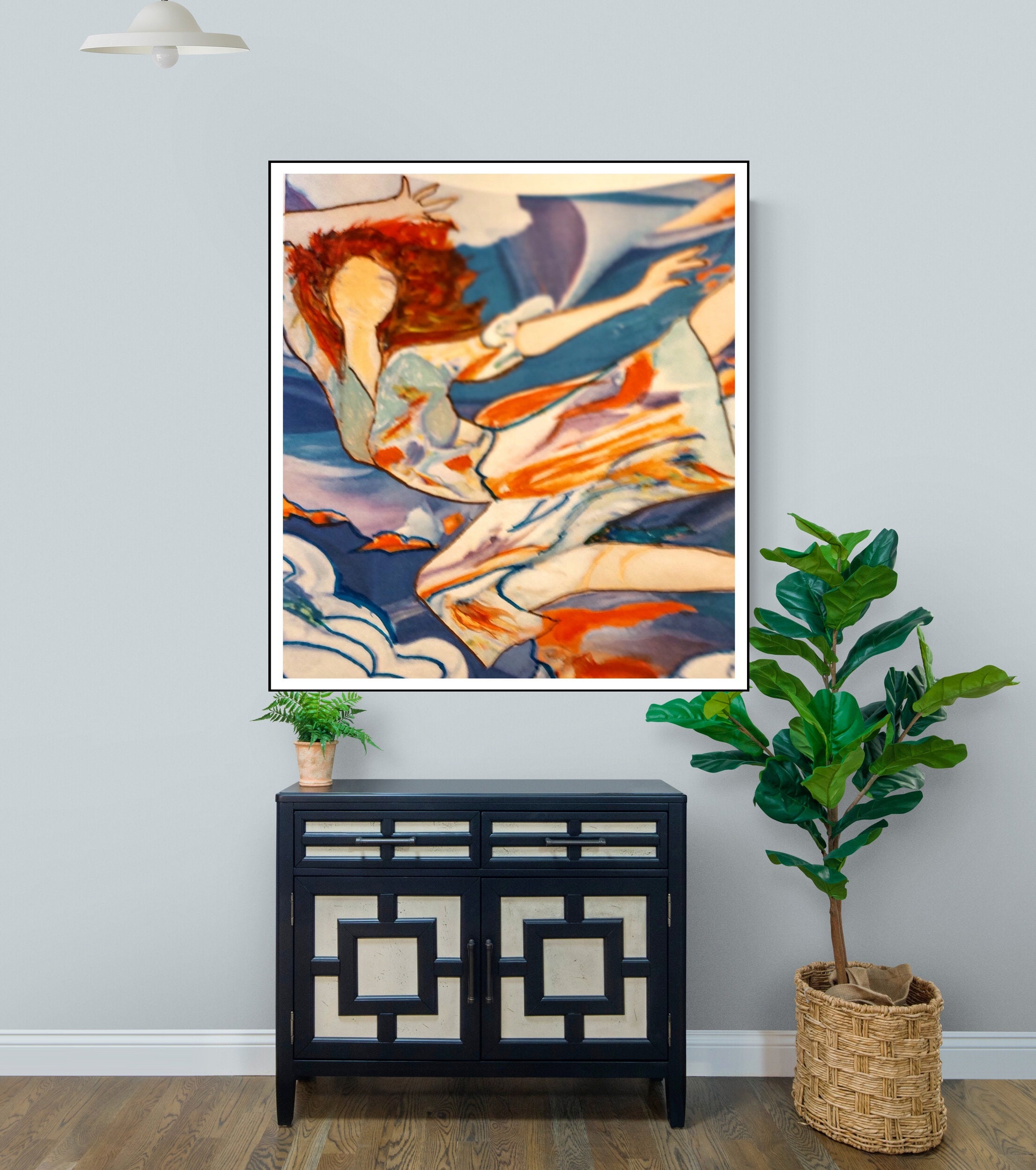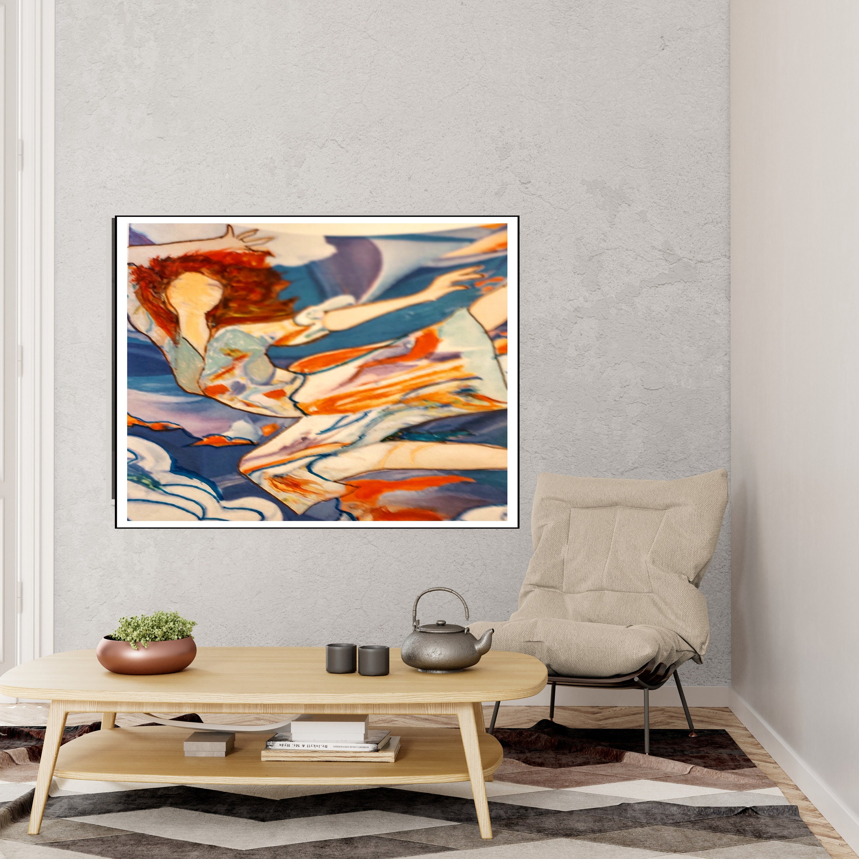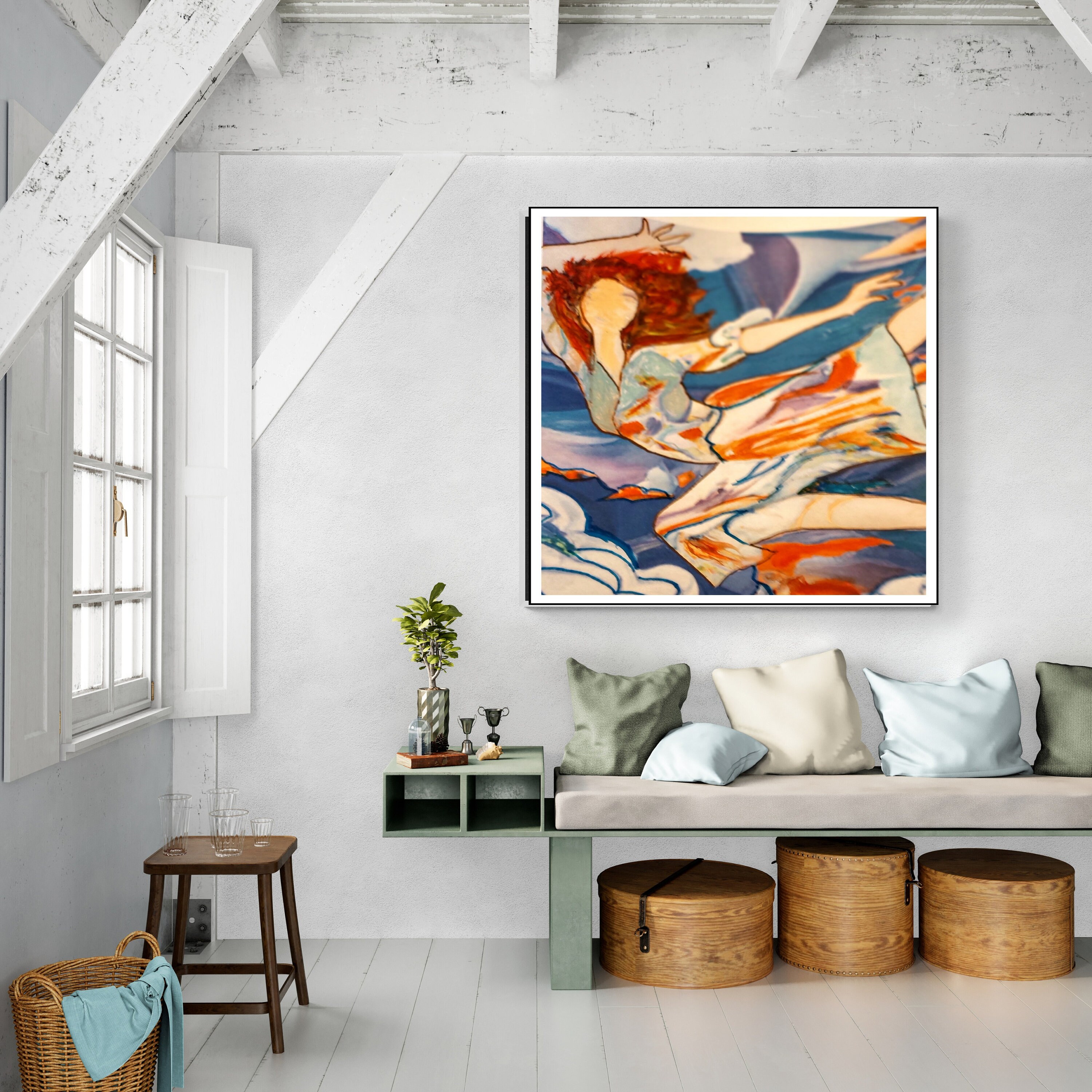 Printed on high-quality canvas, this piece is ideal for art lovers who appreciate abstract expressionism, feminine energy, and modern surrealist design. Whether you're redecorating your home or gifting a unique artwork to someone special, Dancing with Clouds will inspire wonder and elevate your decor.
