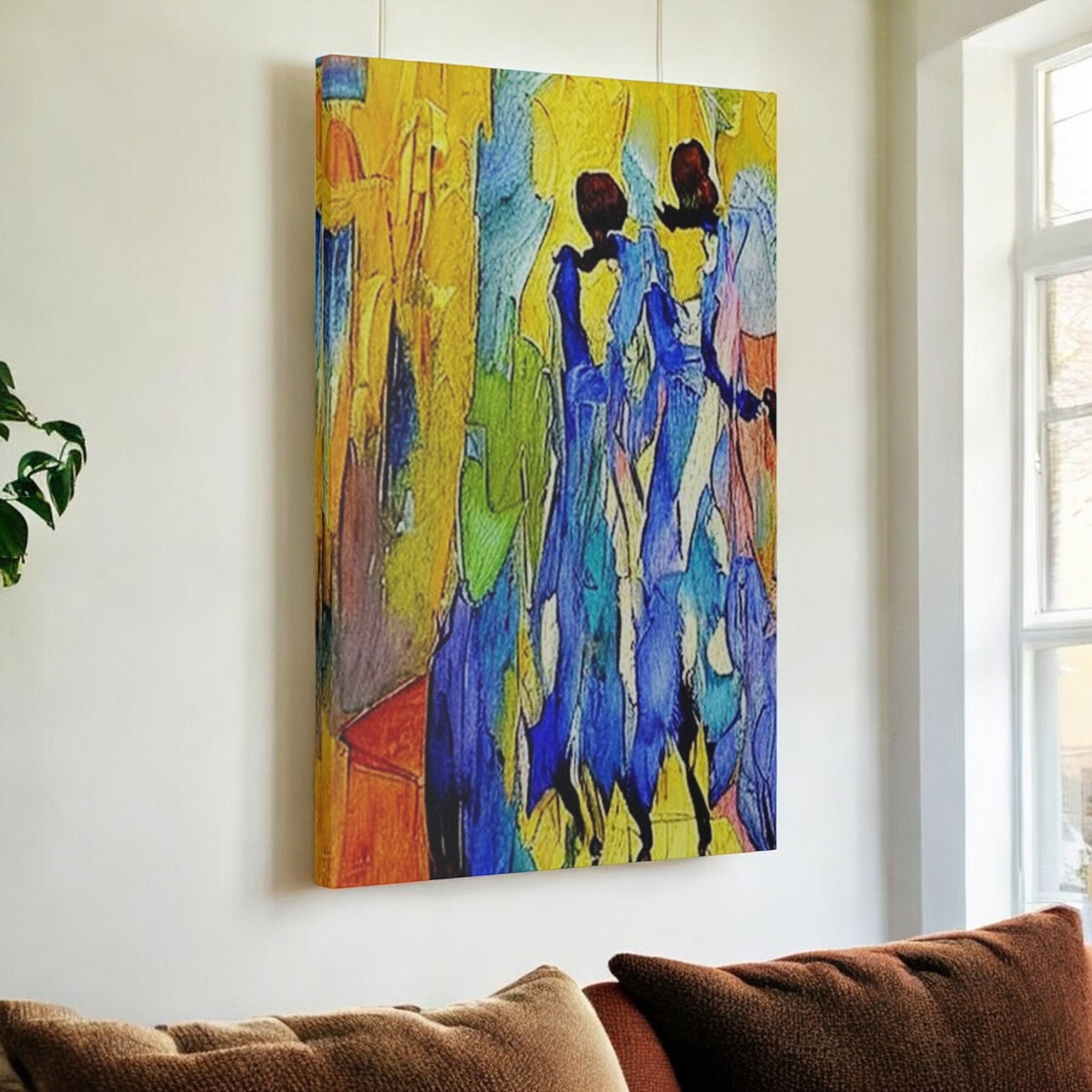 Unfold an intriguing narrative with this captivating original artwork on a large canvas, portraying two women in a dynamic, abstract figurative style. Crafted with vibrant acrylic strokes, the piece transcends decor, inviting exploration of nuanced layers of emotion and connection. Ideal for modern art collections, it transforms your space into a gallery of captivating stories and artistic expression, exuding depth.