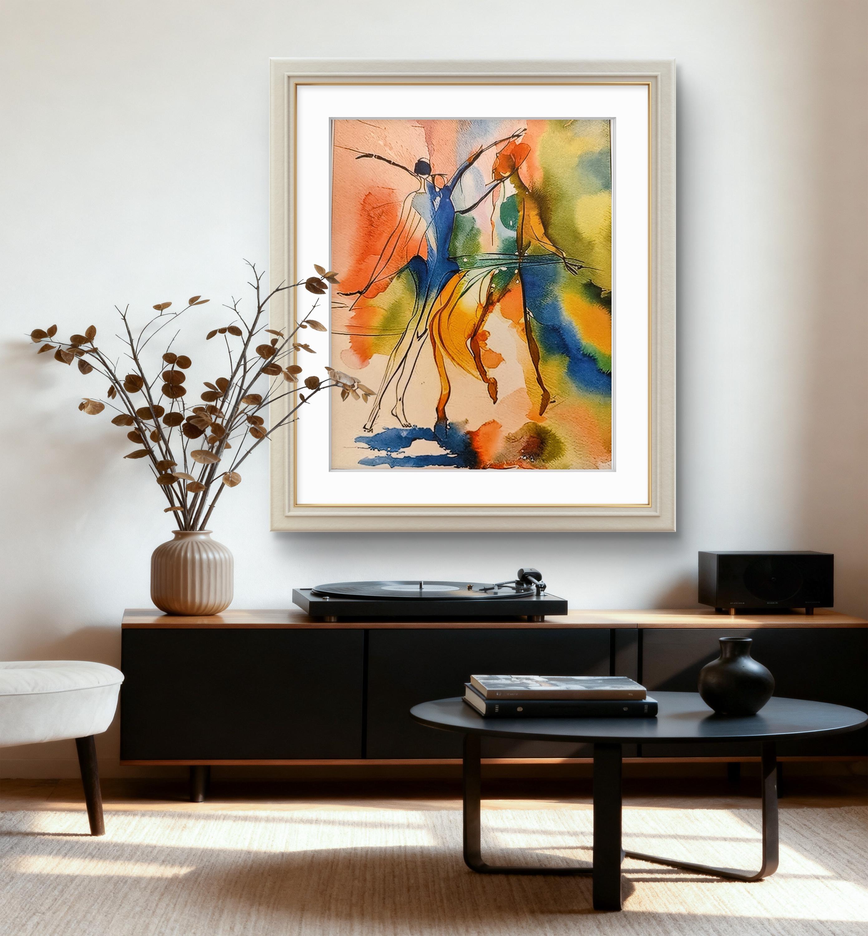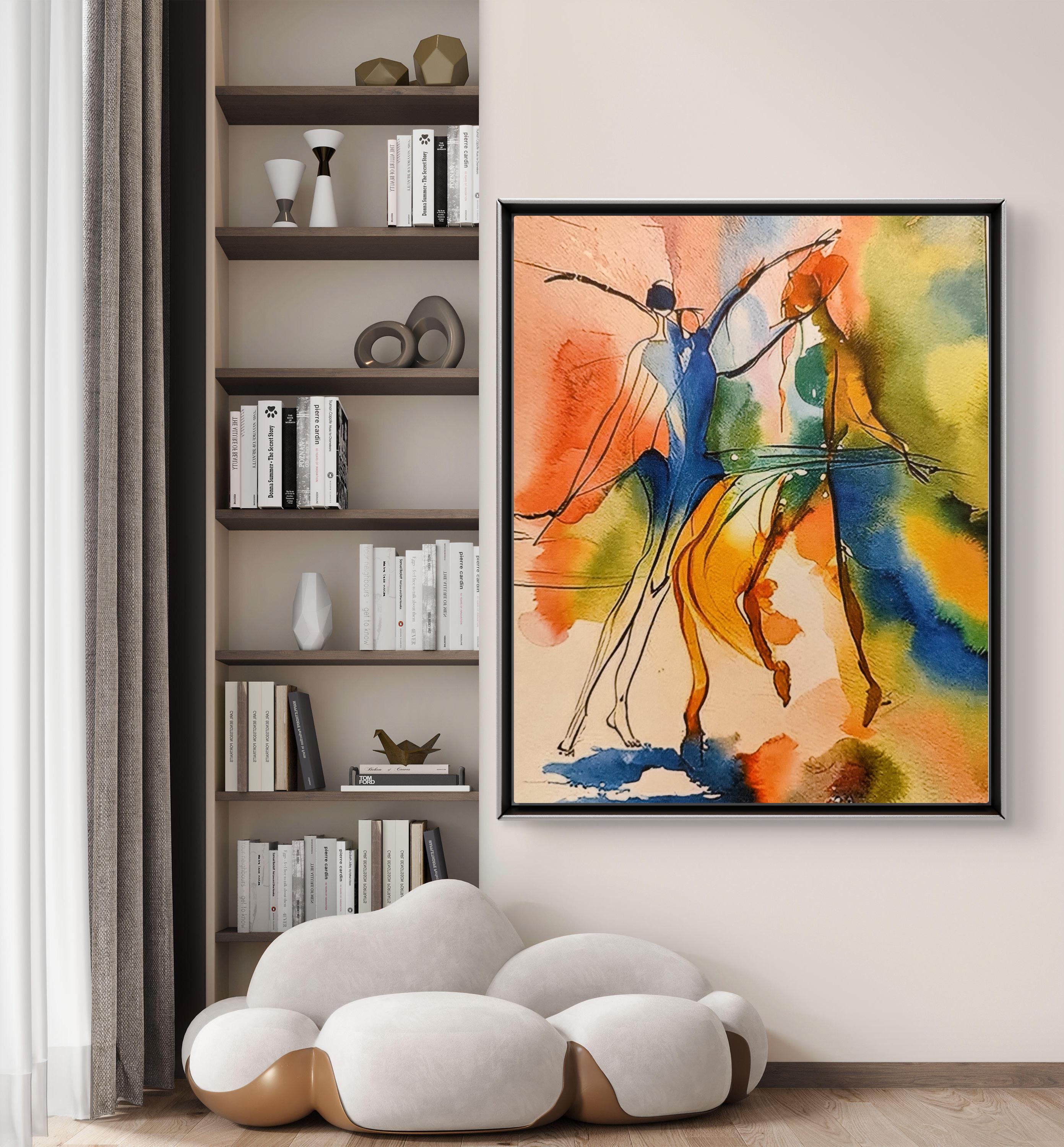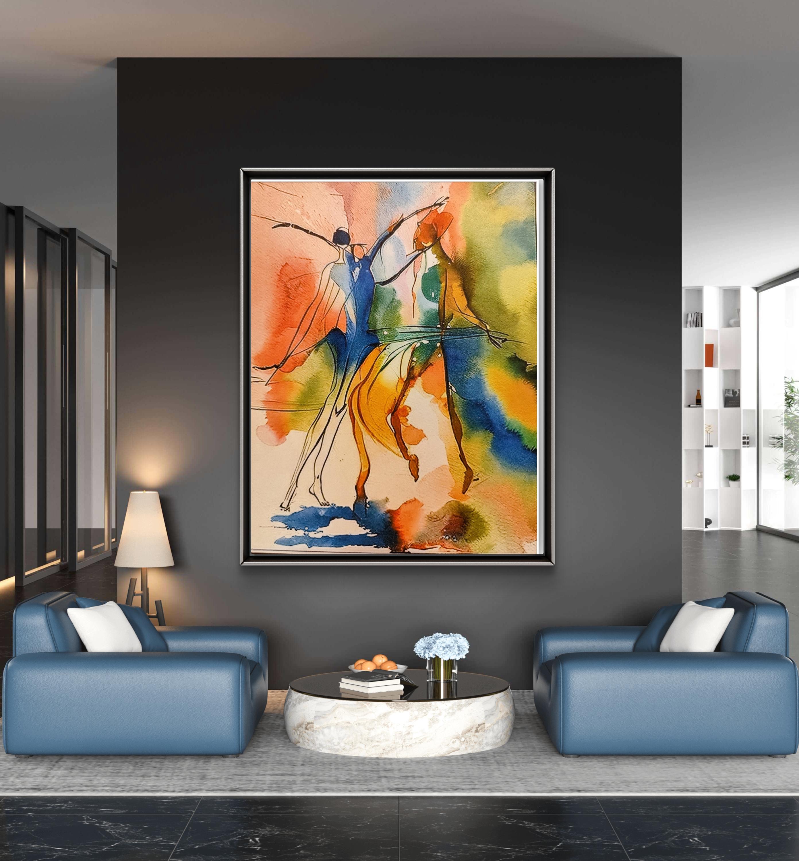 Abstract group Dancers Watercolor Painting, Contemporary Figurative Wall Art
