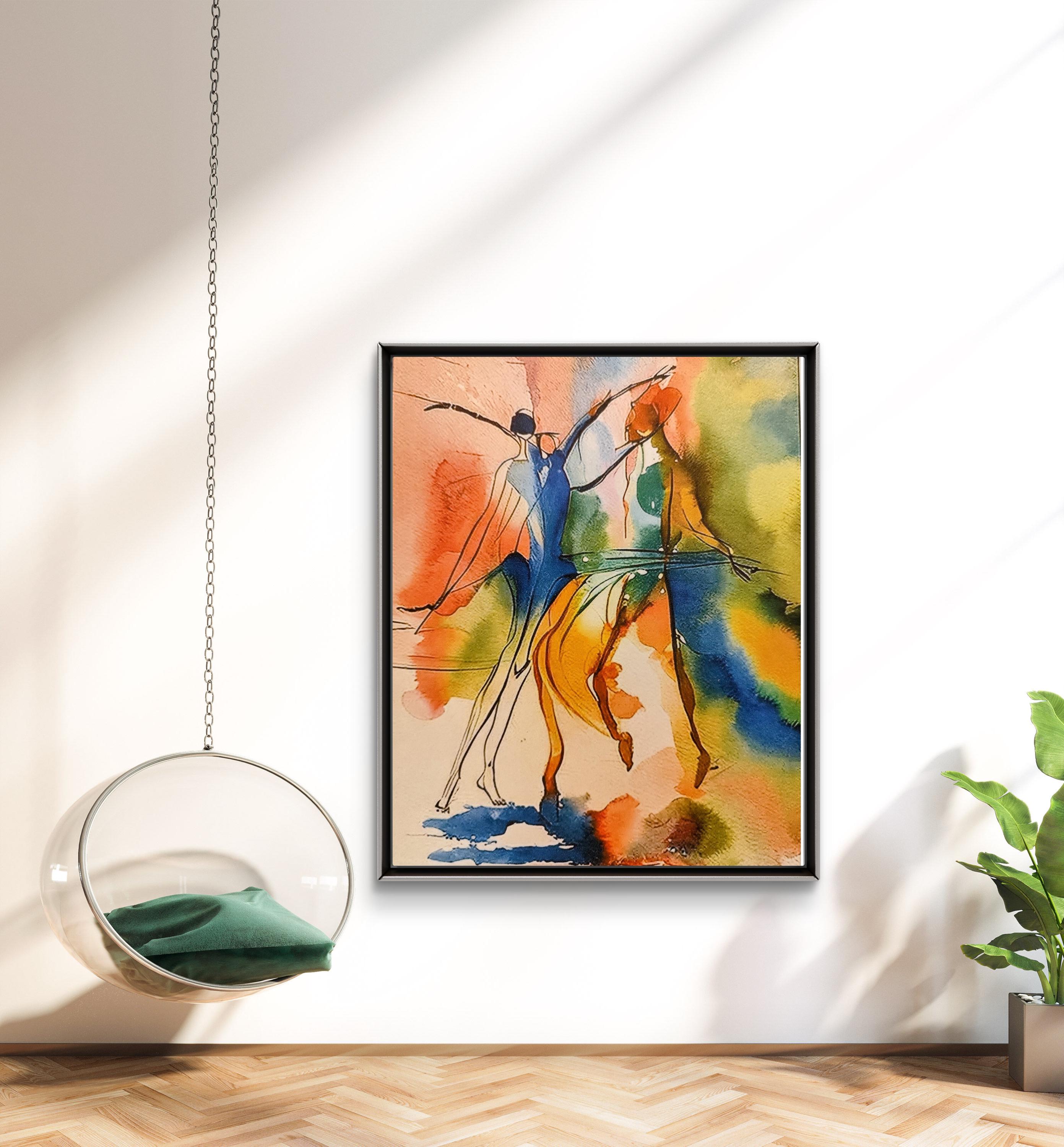 Abstract art invites viewers to interpret meaning through emotion, movement, and color rather than through literal representation. In this piece, the abstraction emphasizes the essence of dance—fluidity, rhythm, and connection—without relying on realistic depictions of the dancers or environment. It encourages personal interpretation and evokes an emotional response, drawing the viewer into the energy of the moment.