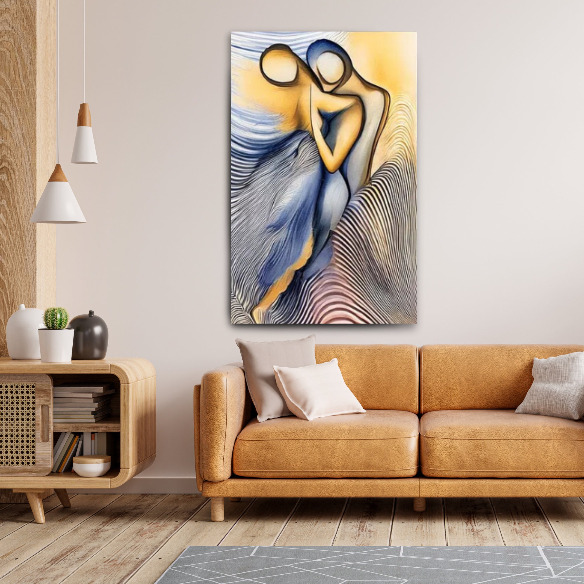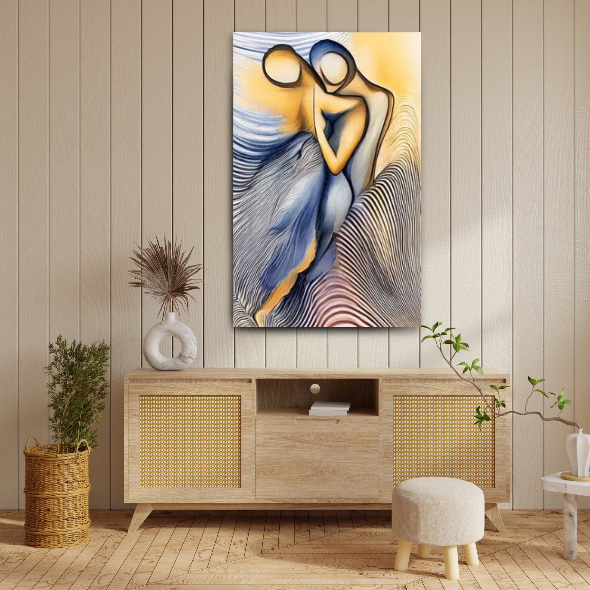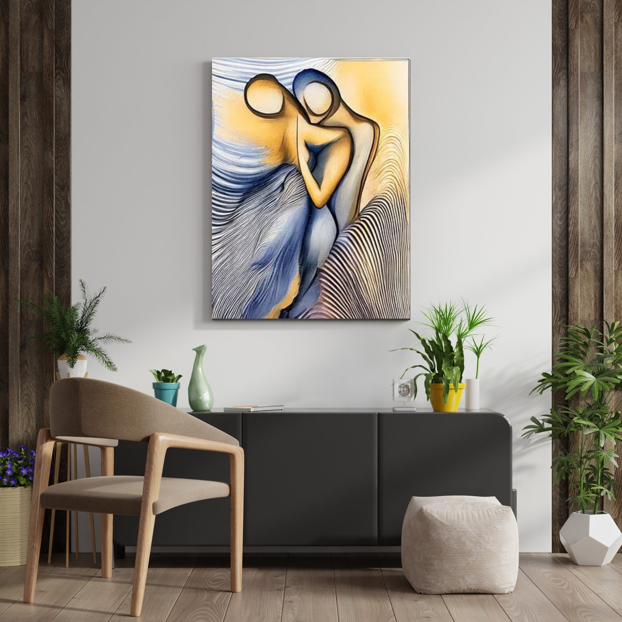 Ideal as a gift for couples, anniversaries, or art lovers, this unique artwork brings a soothing energy and sophisticated charm to your home. The blend of warm tones and abstract shapes creates a visually captivating statement piece.