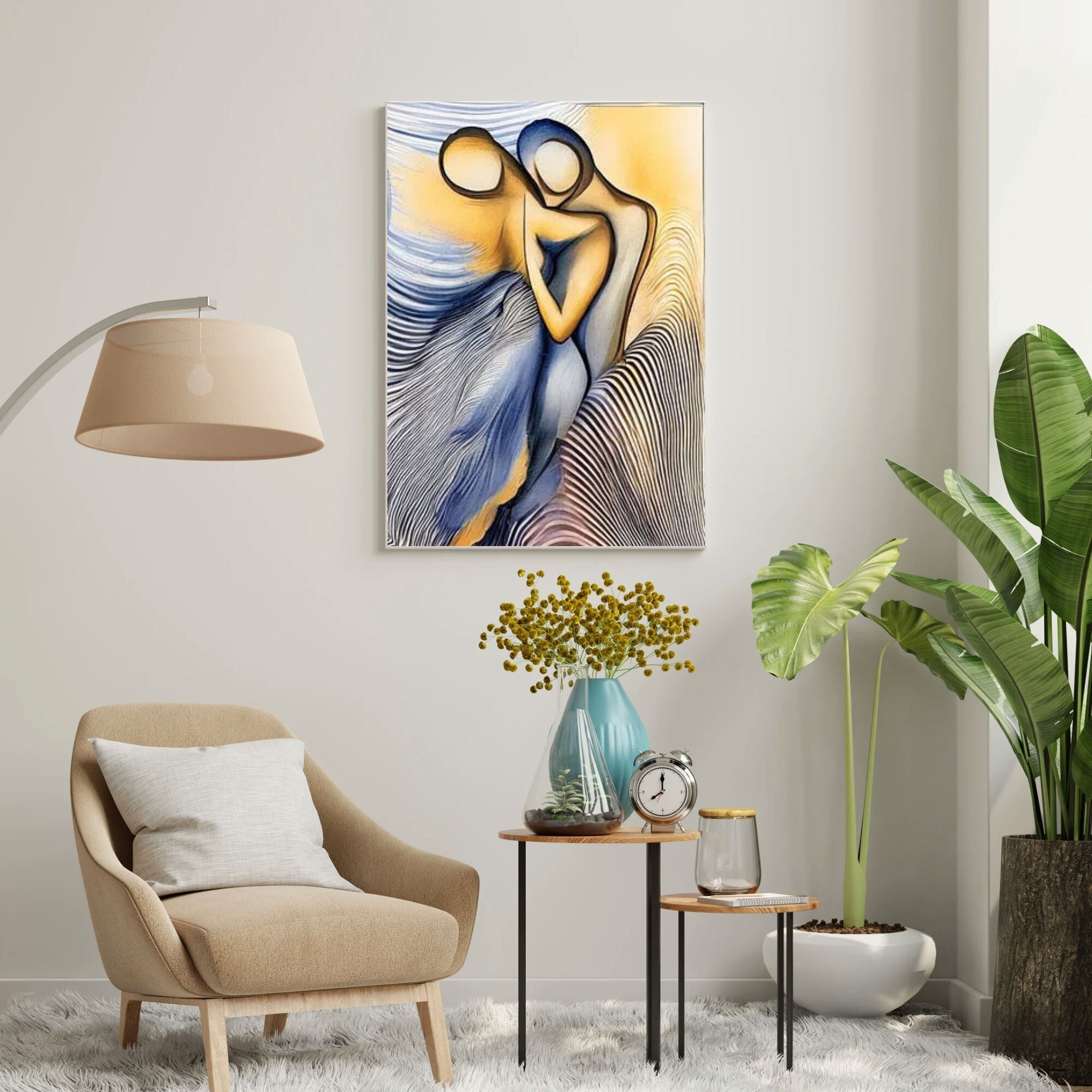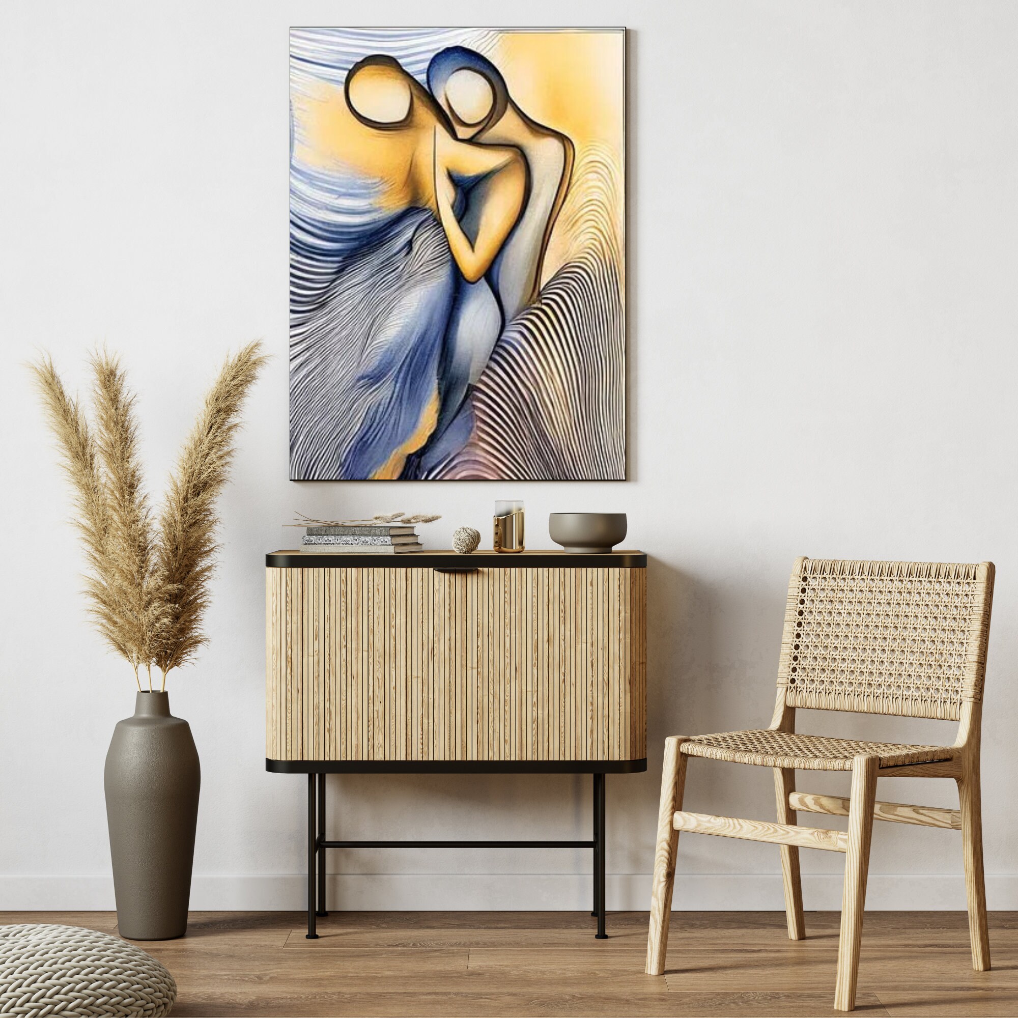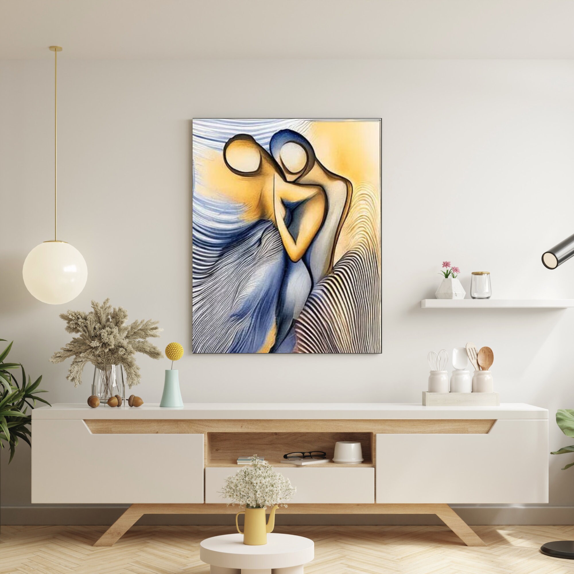 Ideal as a gift for couples, anniversaries, or art lovers, this unique artwork brings a soothing energy and sophisticated charm to your home. The blend of warm tones and abstract shapes creates a visually captivating statement piece.