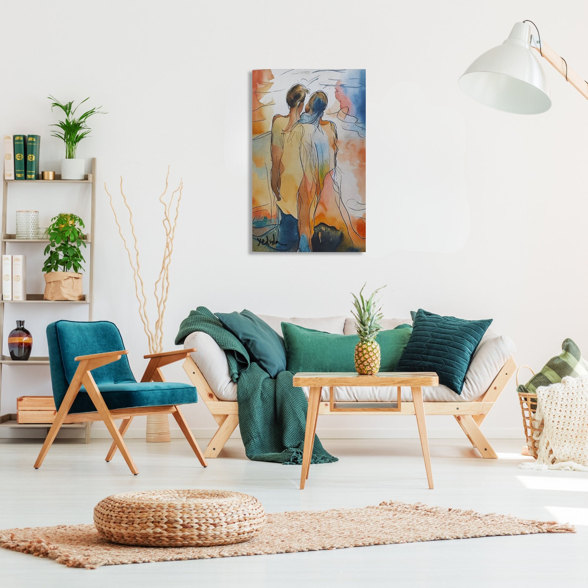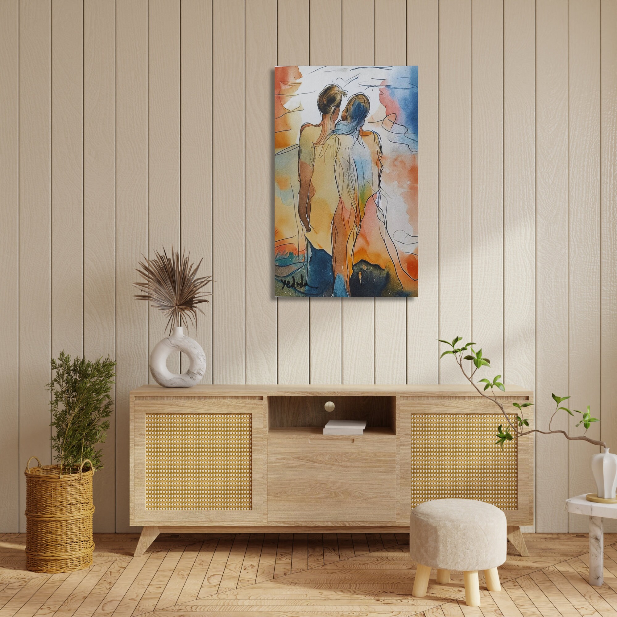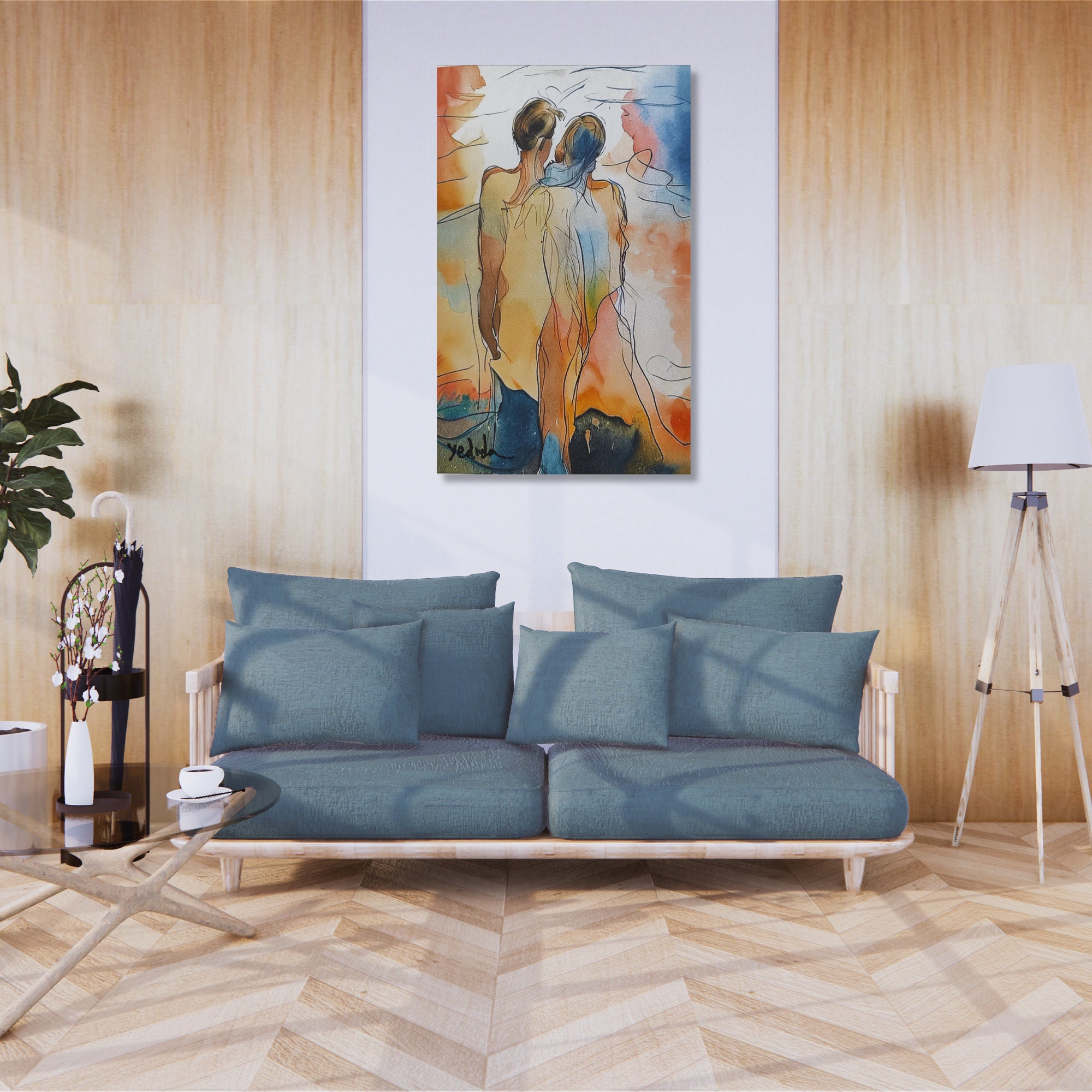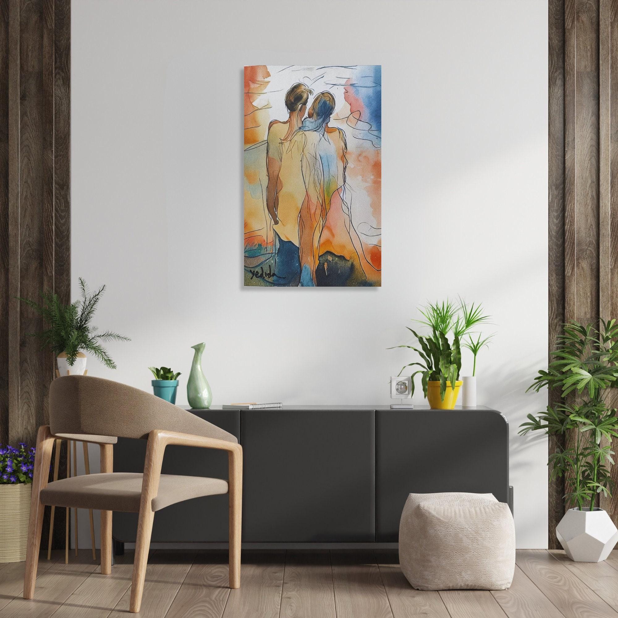 Abstract Lovers Canvas sleeping room Prin: Figurative Art, Modern Wall Decor