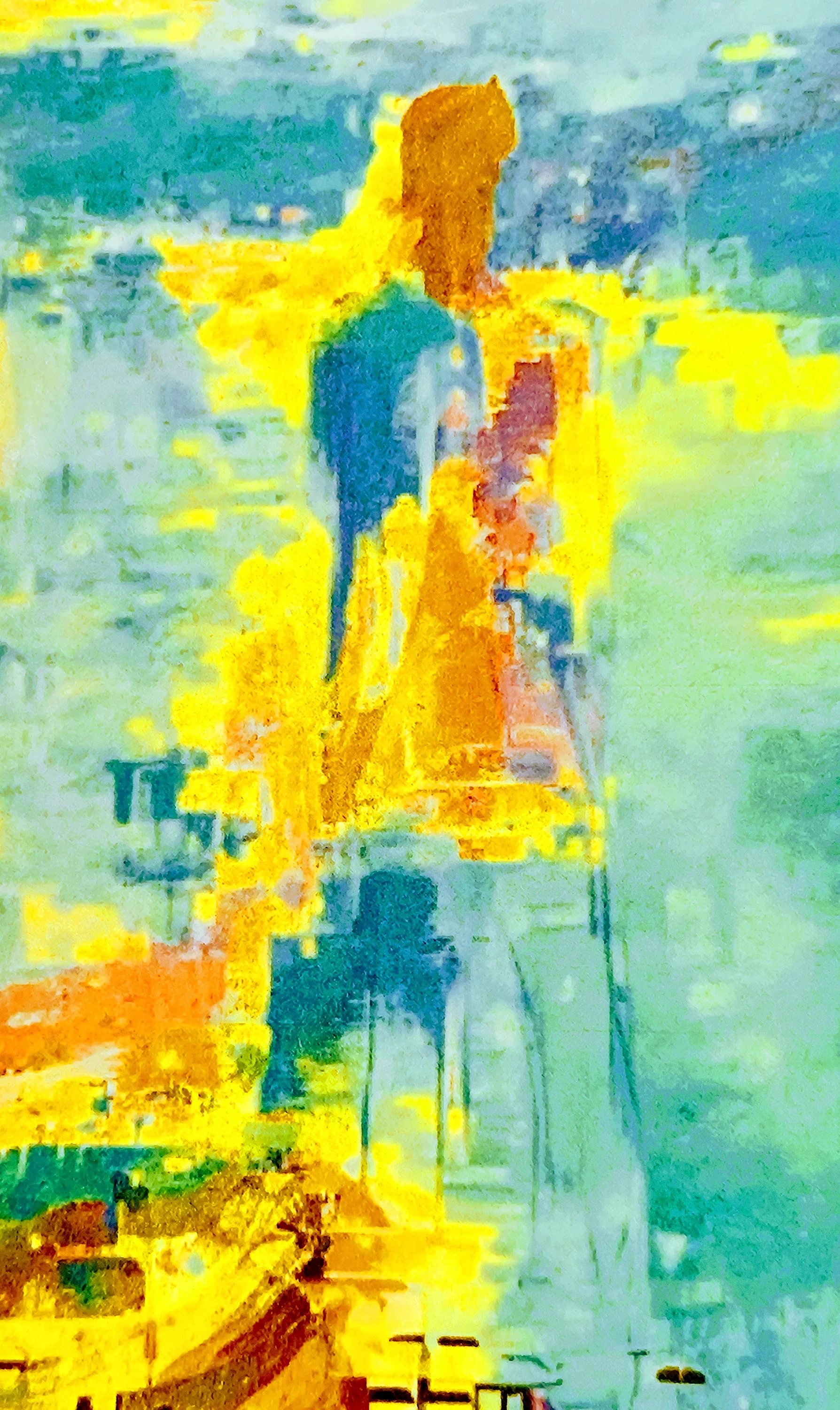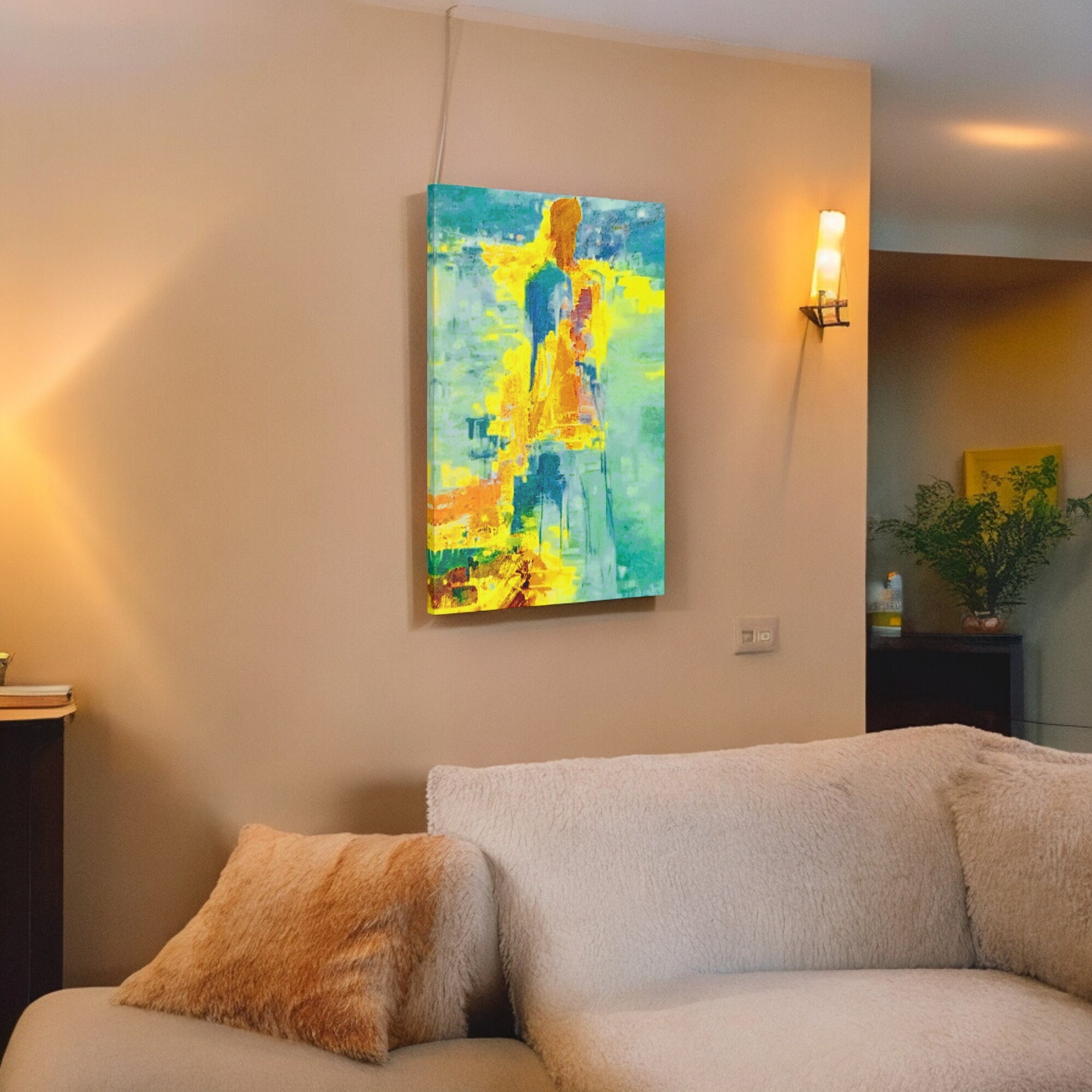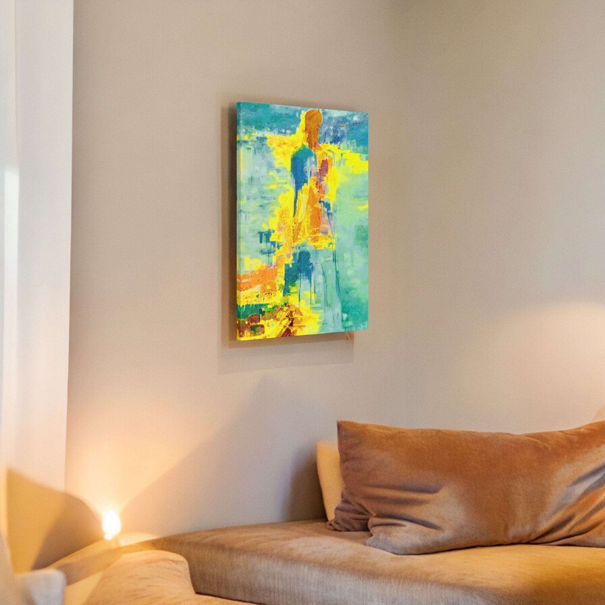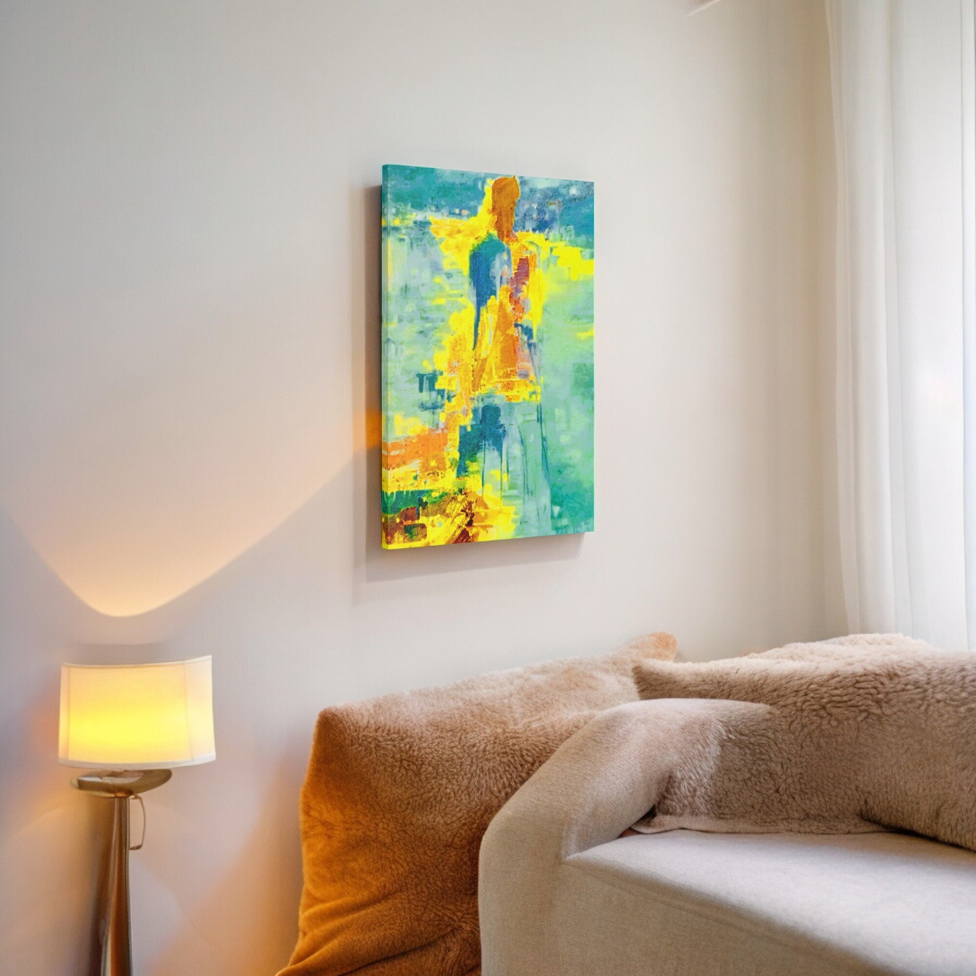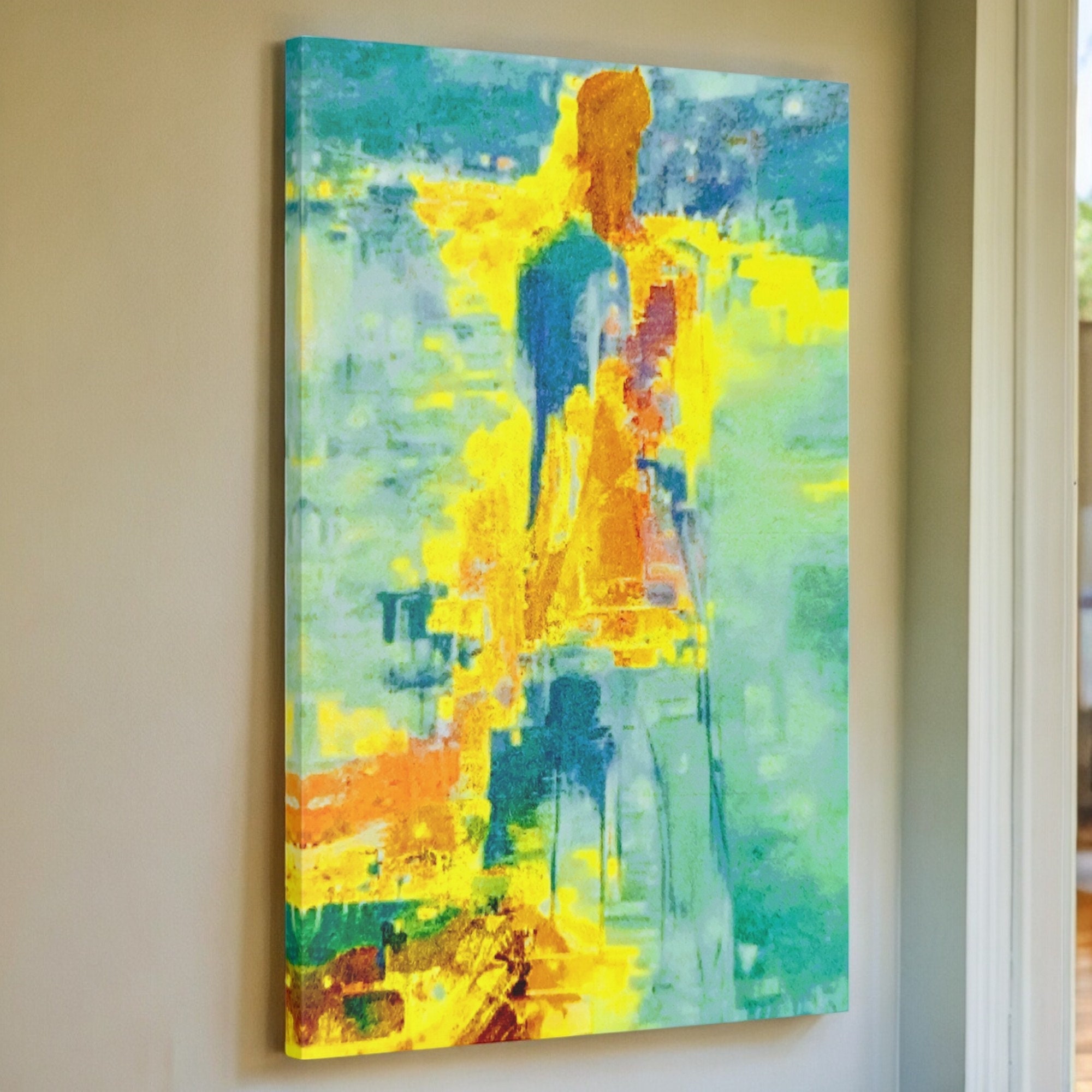 Yellow Woman Abstract Painting, Handmade Modern Canvas Wall Art