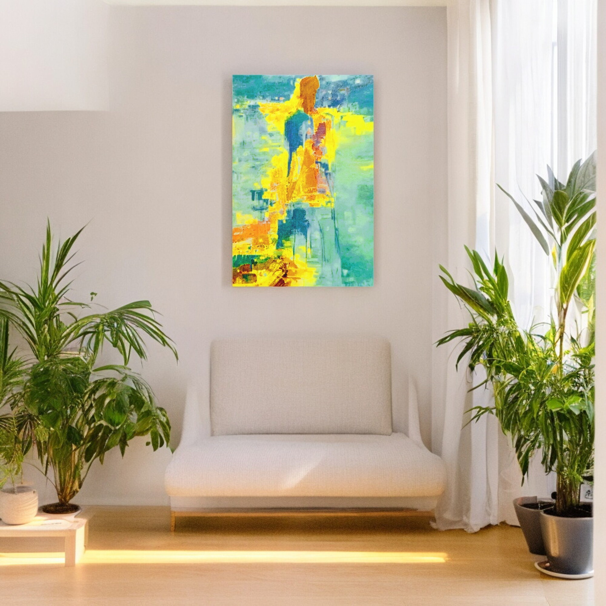 Abstract figurative wall art, Yellow woman looking forward woman, Abstract original painting on canvas, living room acrylic painting, Home decor art