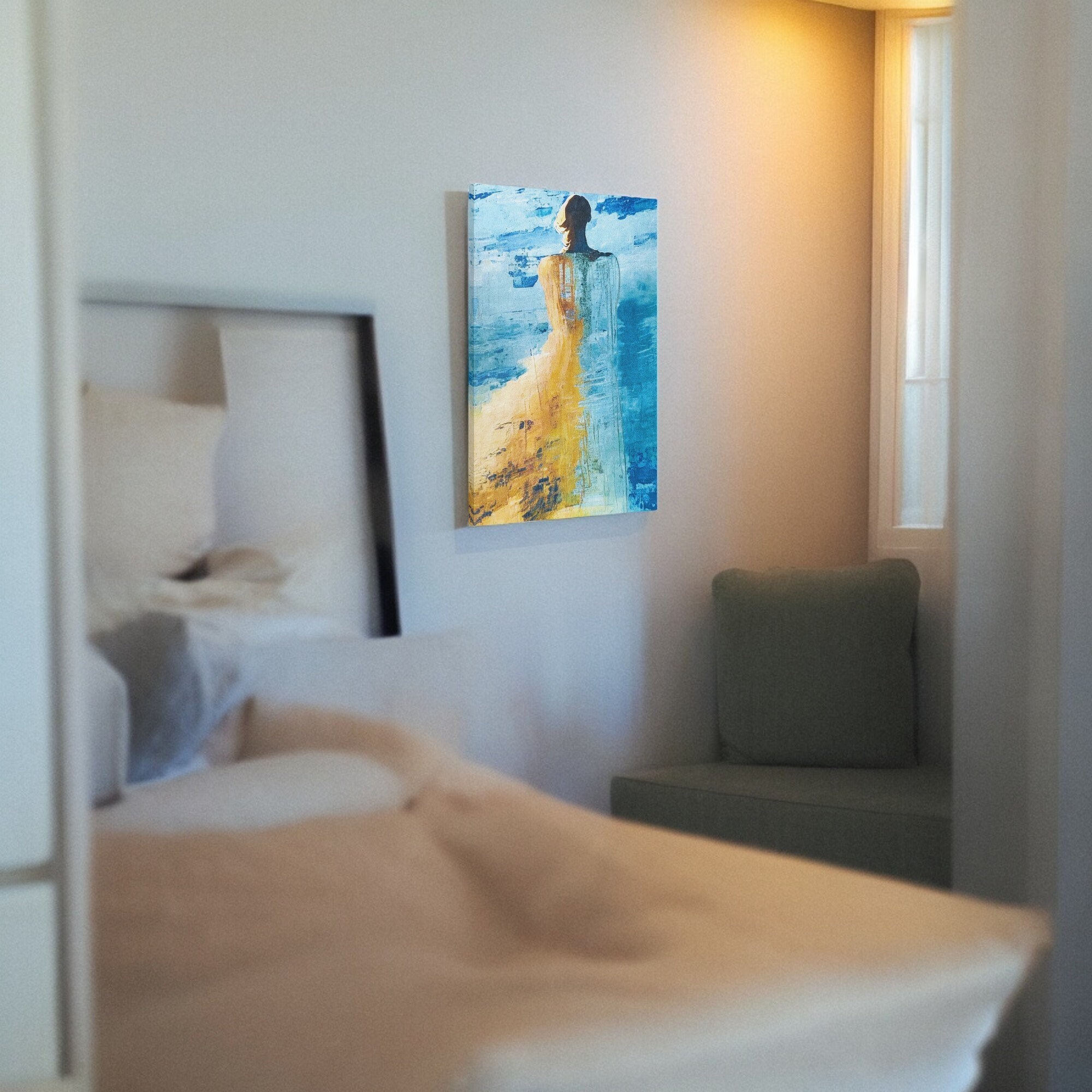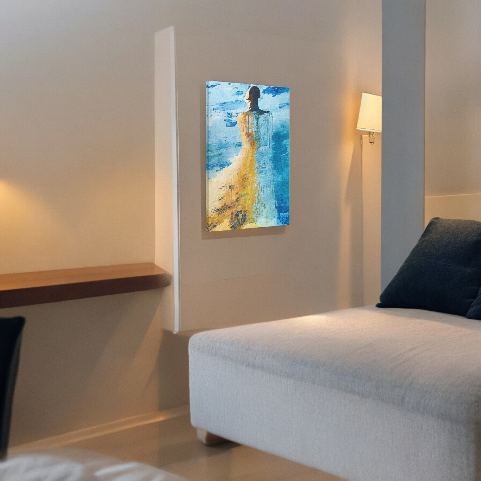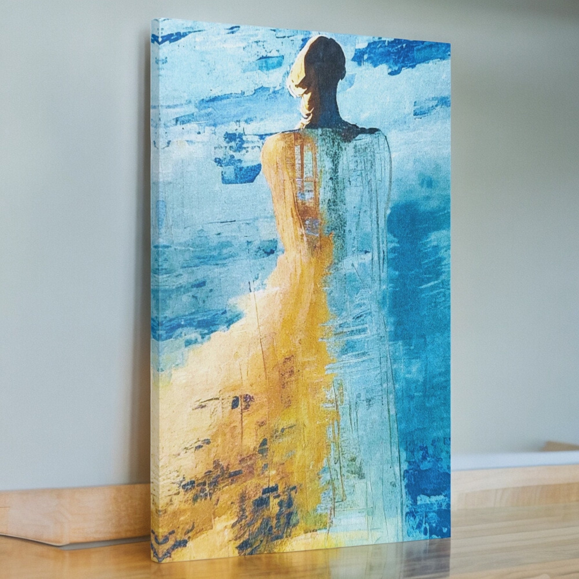 Blue Woman Canvas Painting, Figurative Abstract Art, Home Decor