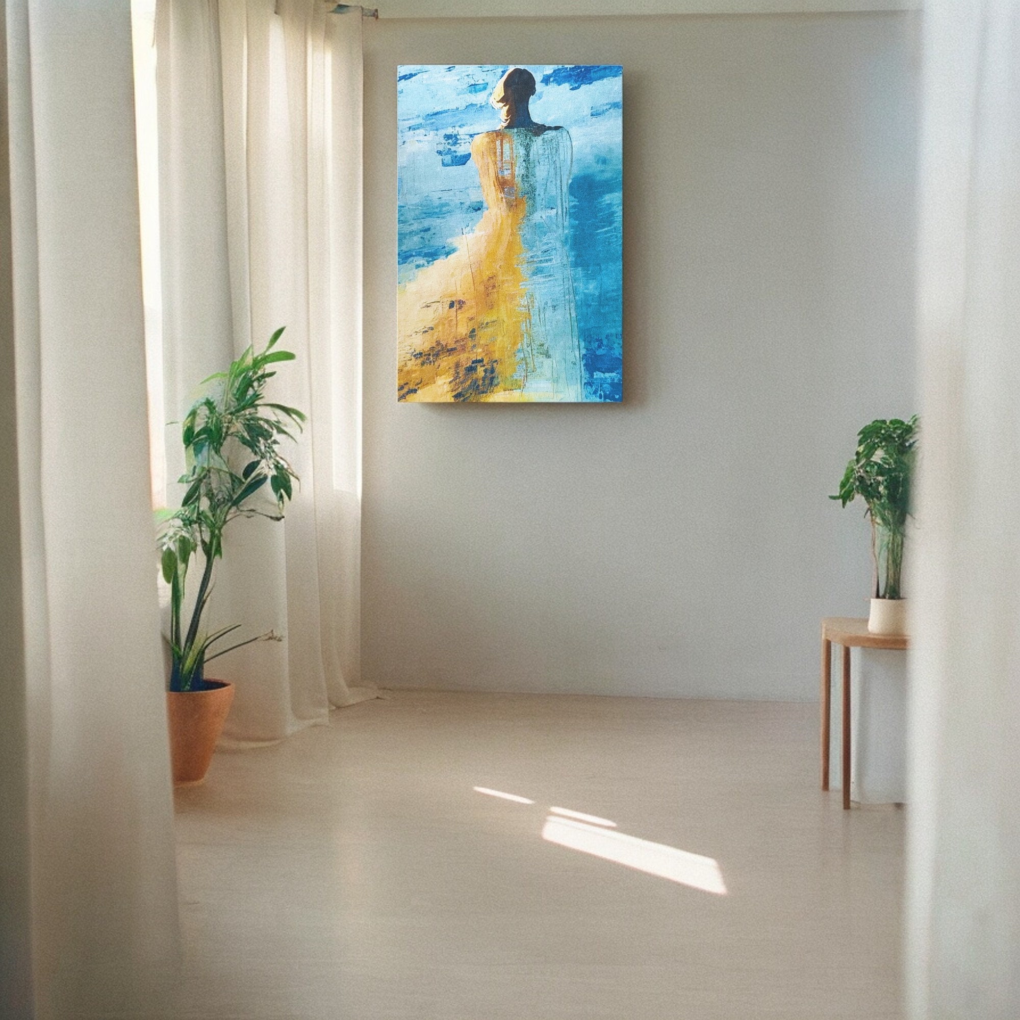 A Lady With A Gown| Figurative Blue Abstract Canvas Figure Painting | Abstract Handmade Art | Living Room Female Painting | Home Decor