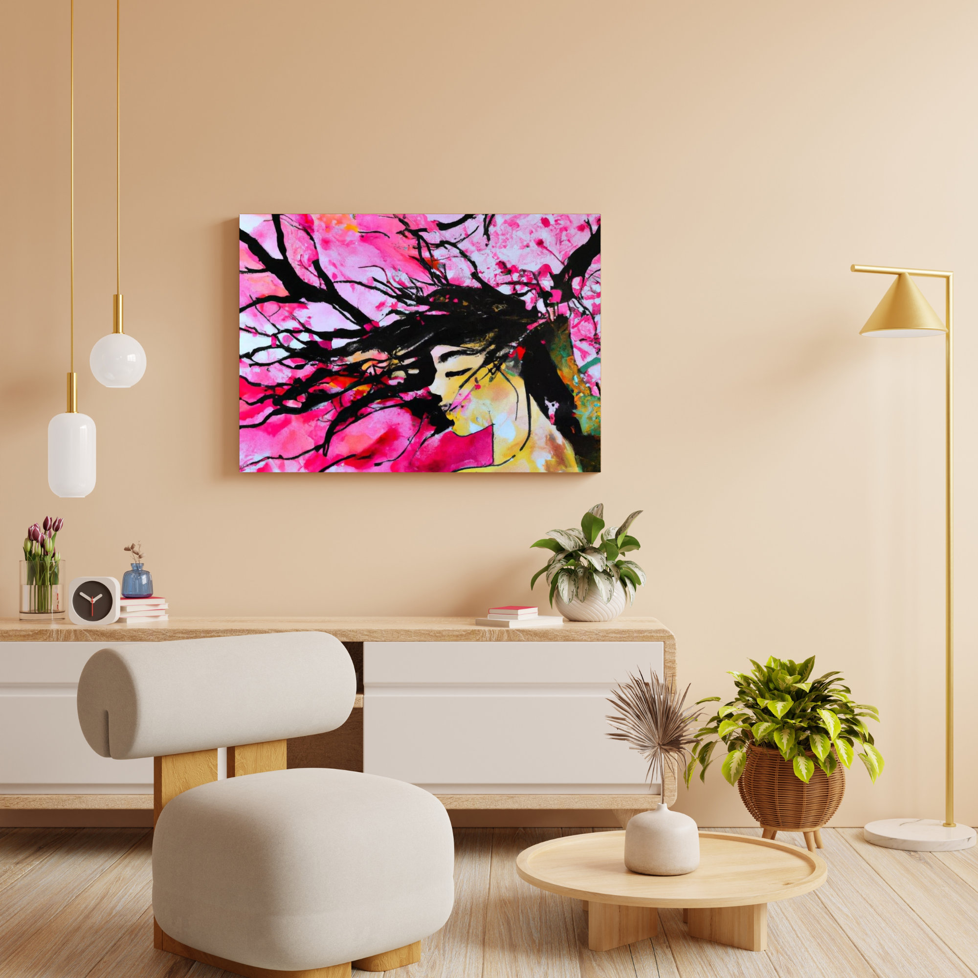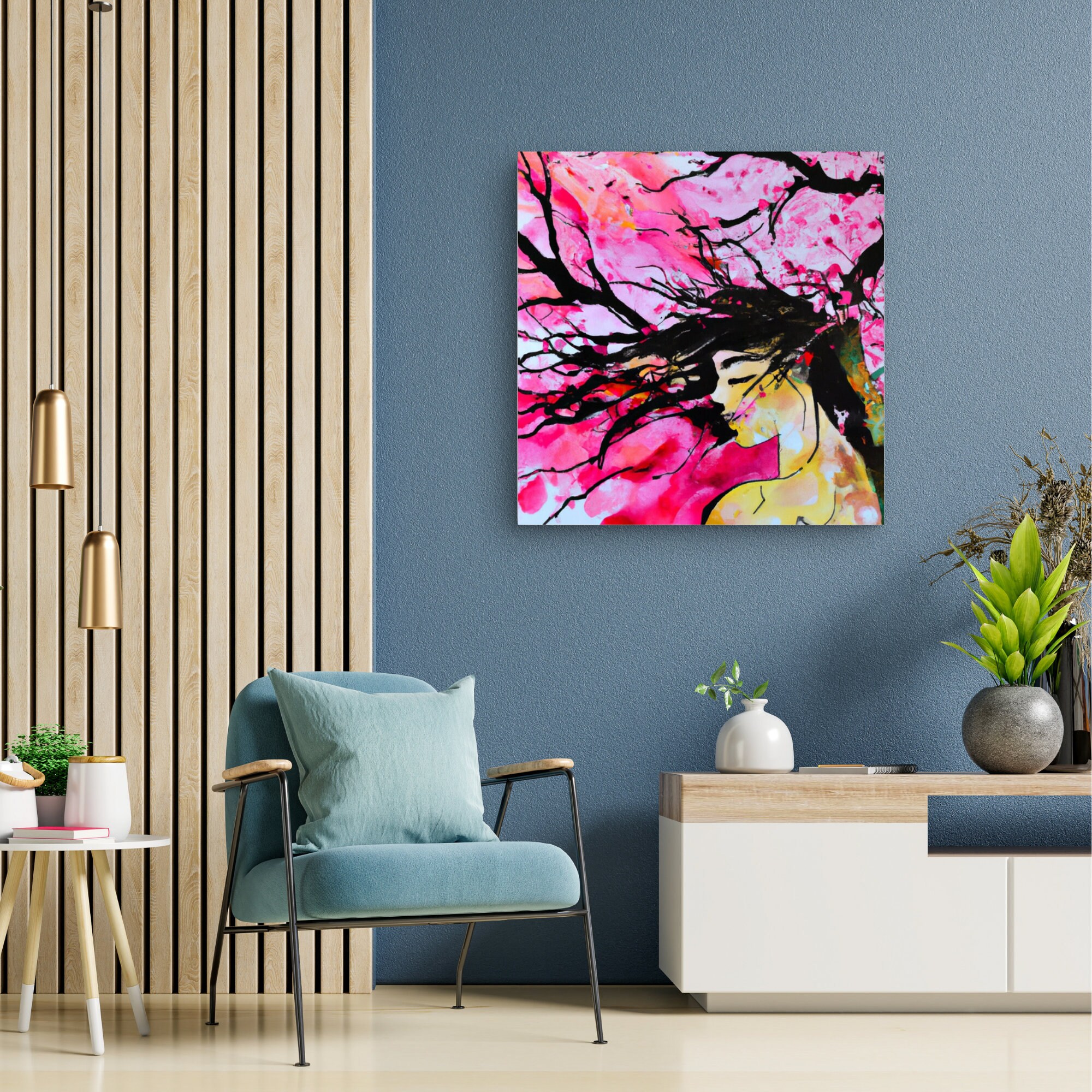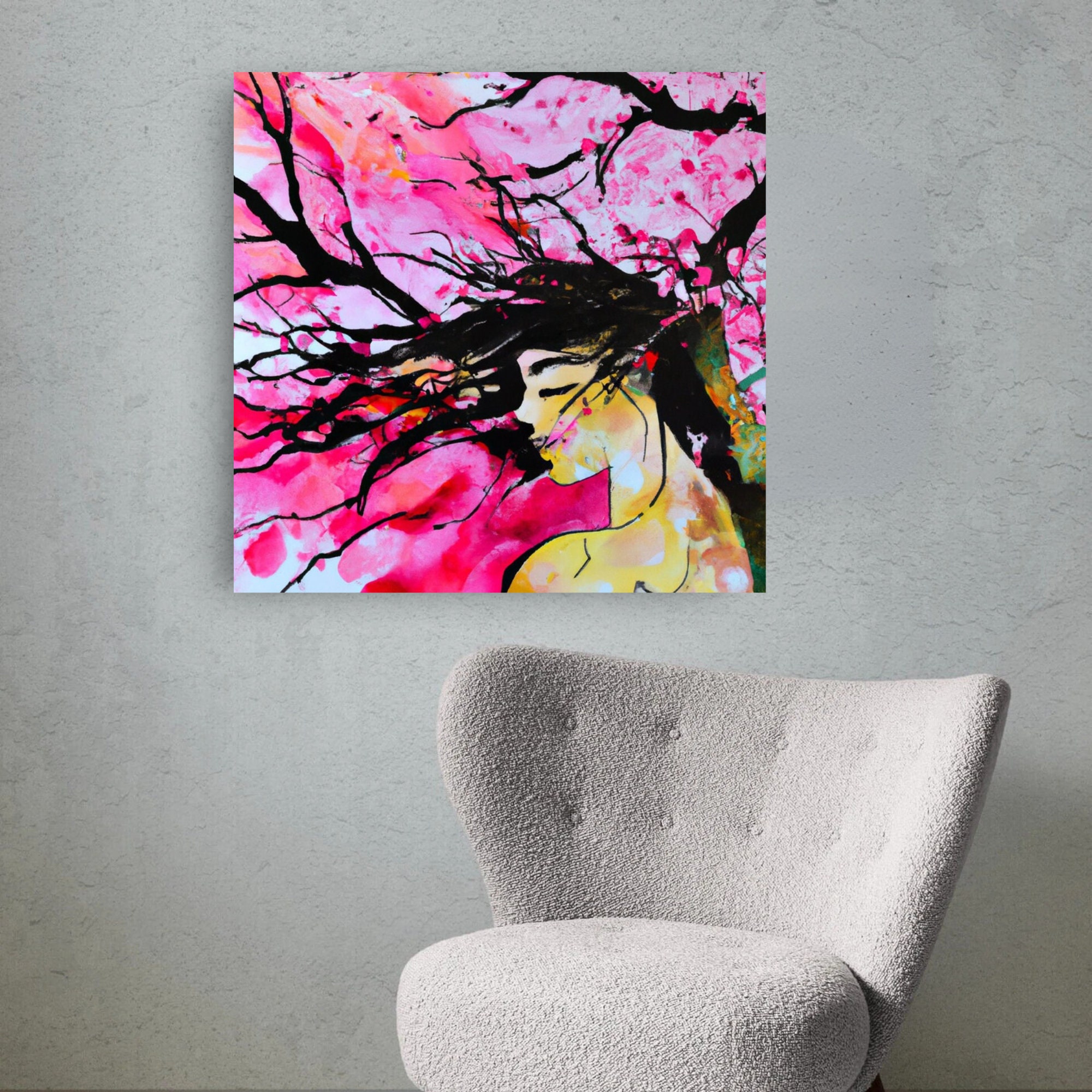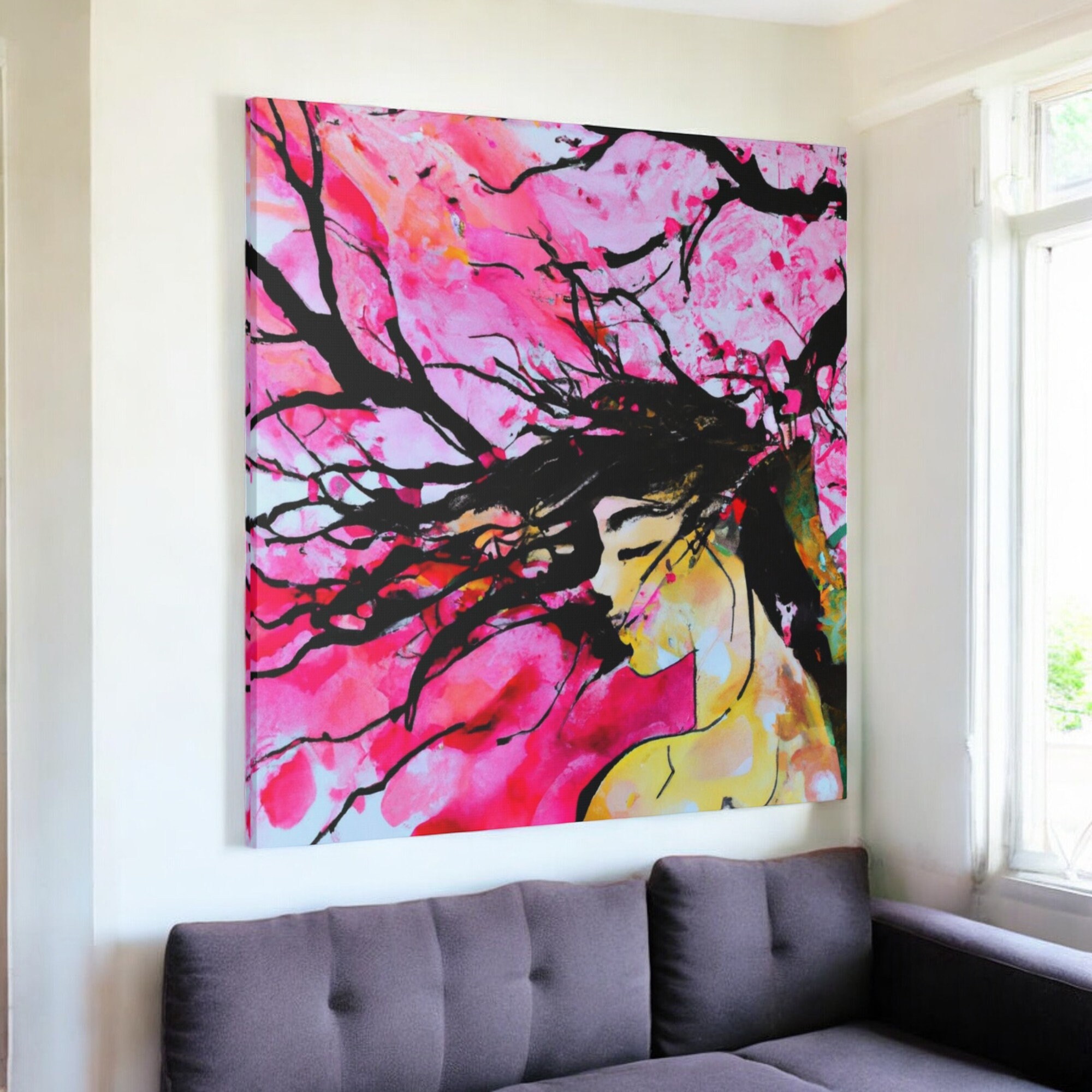 Figurative Woman Watercolor Painting Abstract Tree Canvas Art