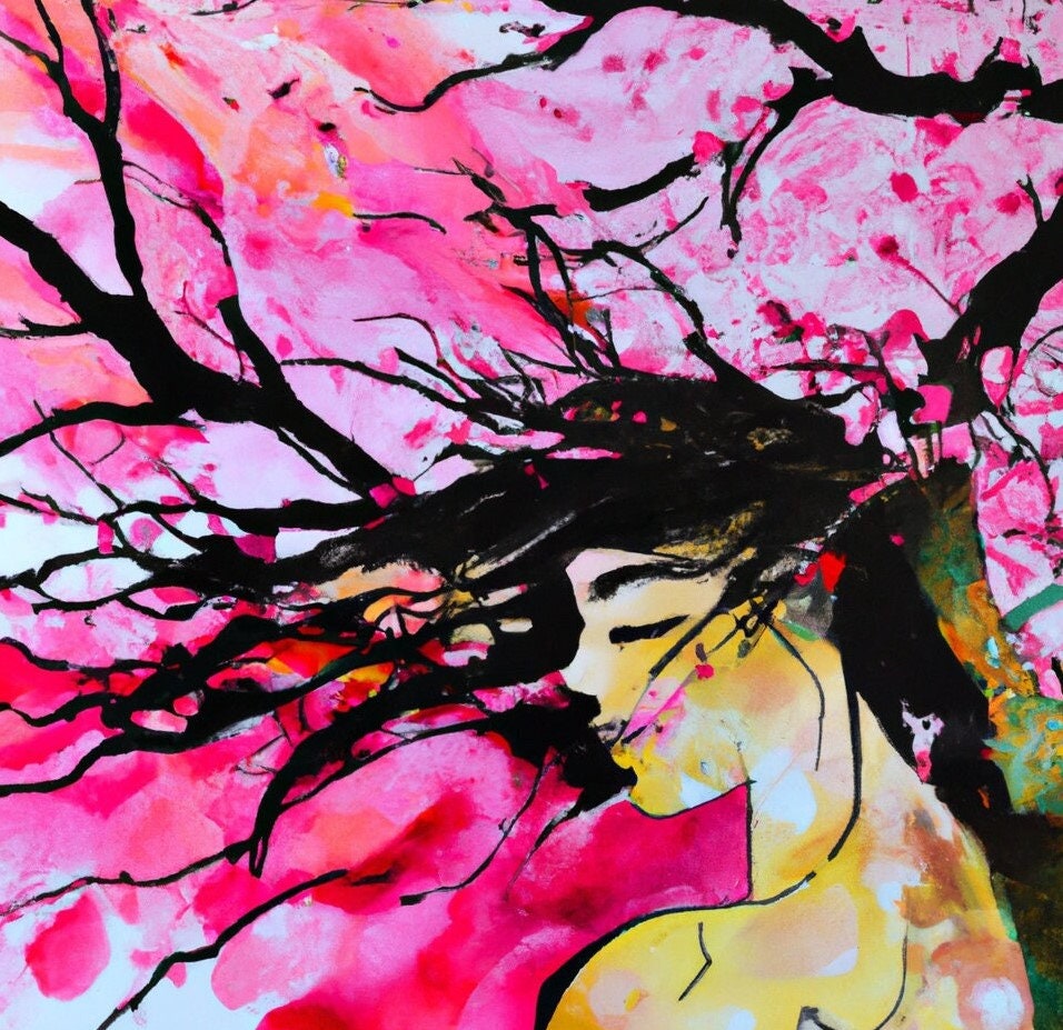 The painting of a woman sitting under a tree. As she sat there , because she feel the world around her faded away, and she is safe near the tree, absorbed in the tranquility of the moment. The rustling of the leaves, the nature around her became the soundtrack of her thoughts. Her hair still clung to the branches around her, a testament to the tranquility of the moment and the lasting impression she had on anyone who crossed her path.