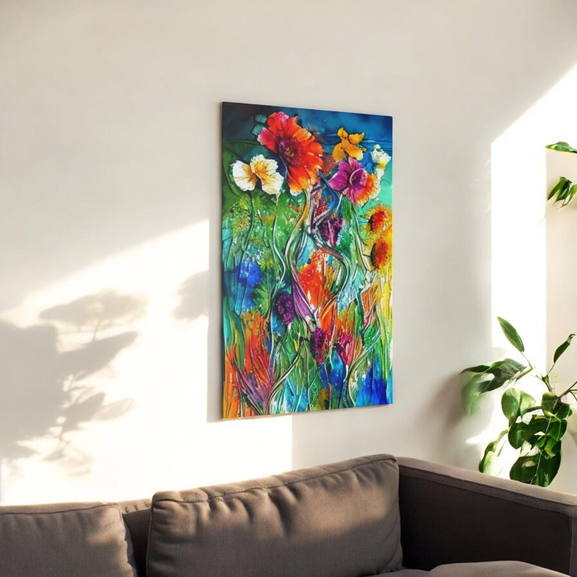 Colorful Abstract Floral Canvas Print Vivid red, yellow blue Flowers Home Art Decor