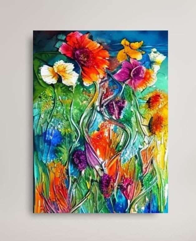 Flowers painting , abstract wall art, large stretched modern wall art, contemporary art print. original painting on canvas for living room, bedroom or every place in your home, decor art print.