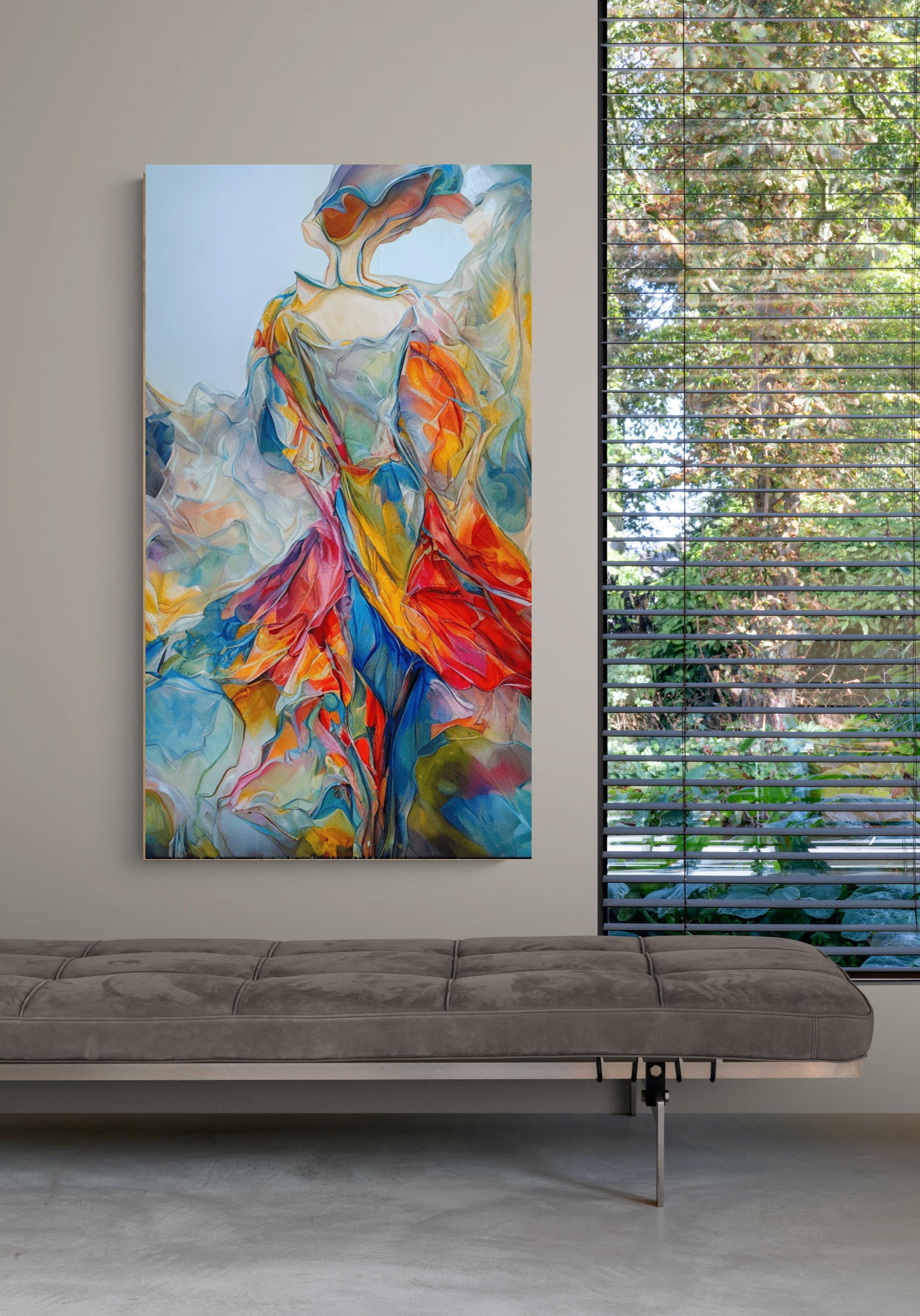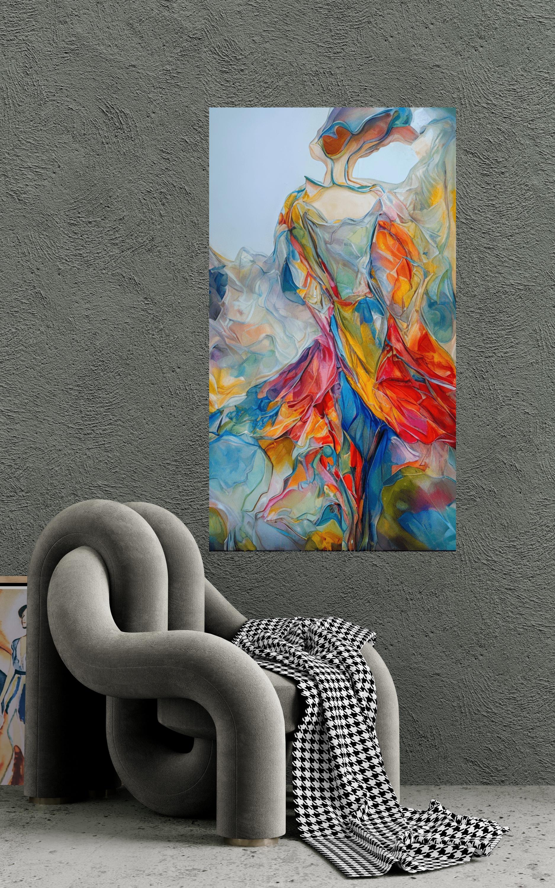 A woman in a flowing colorful dress .Abstract Woman Canvas wall art Print