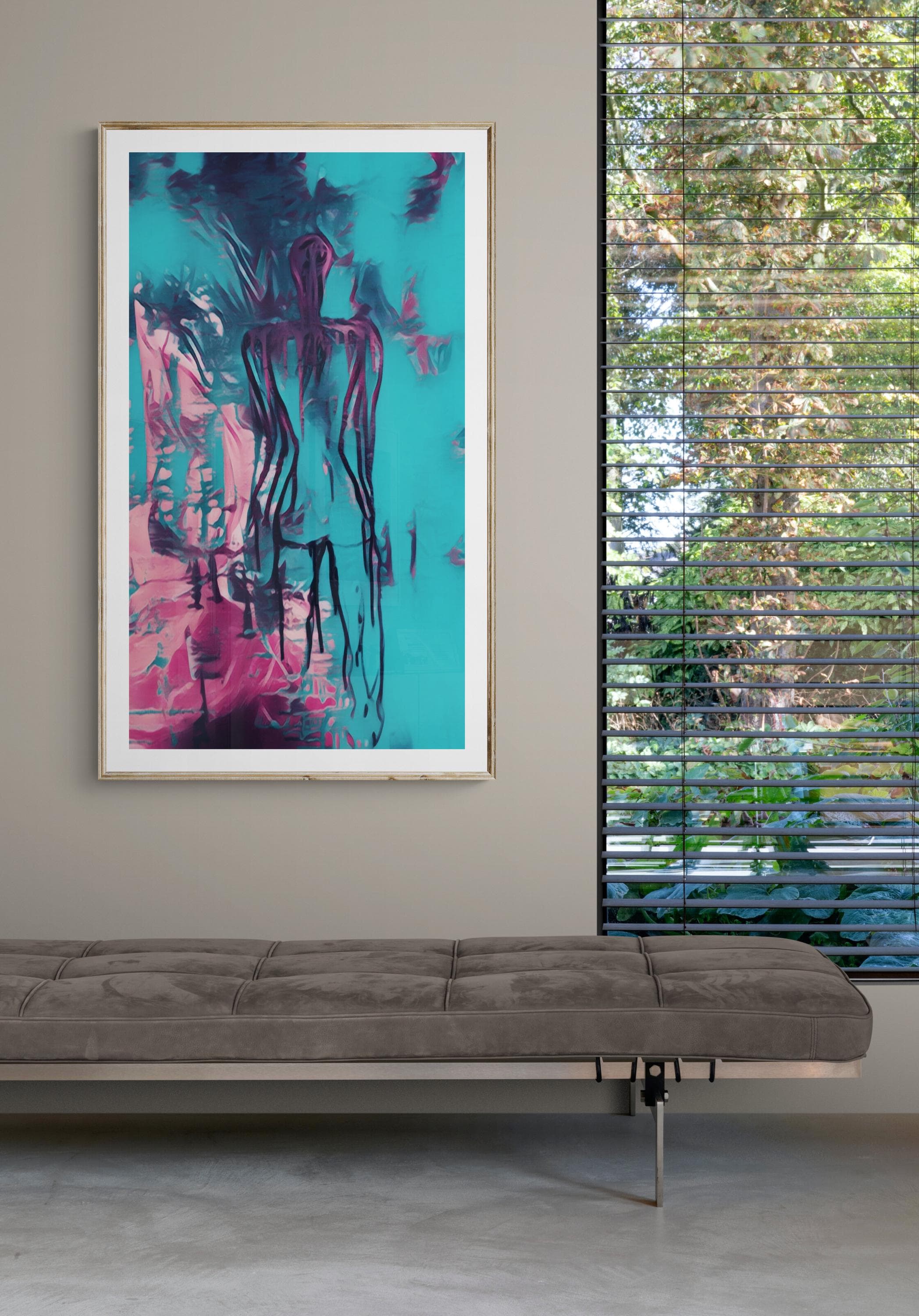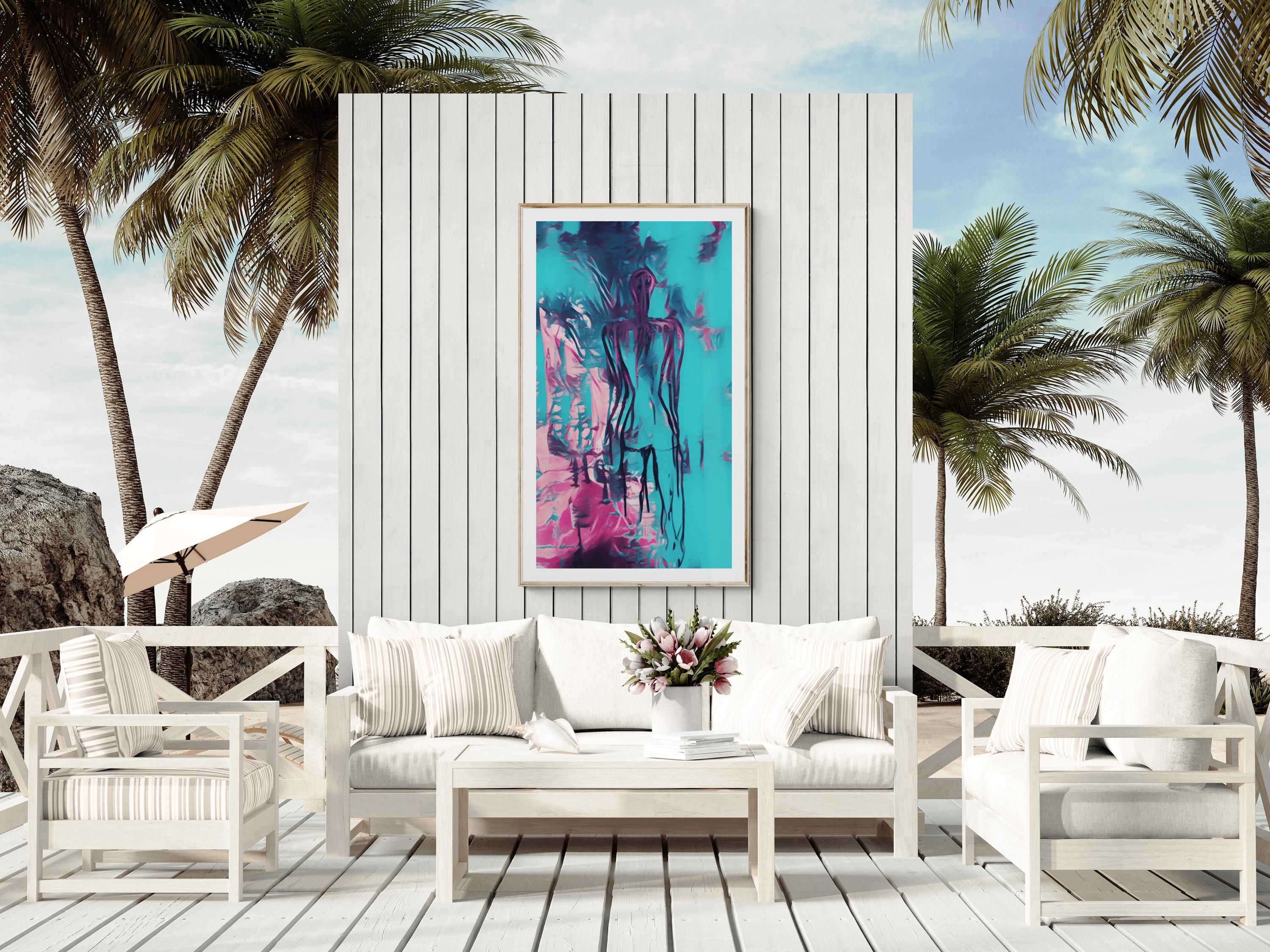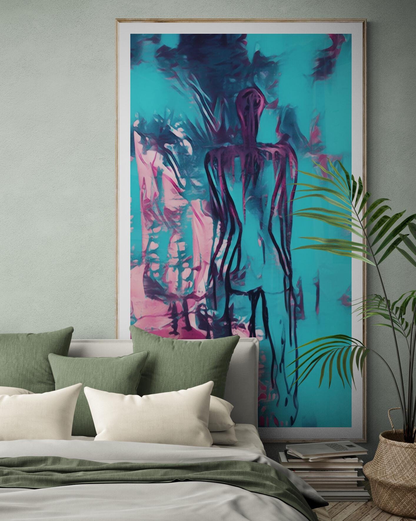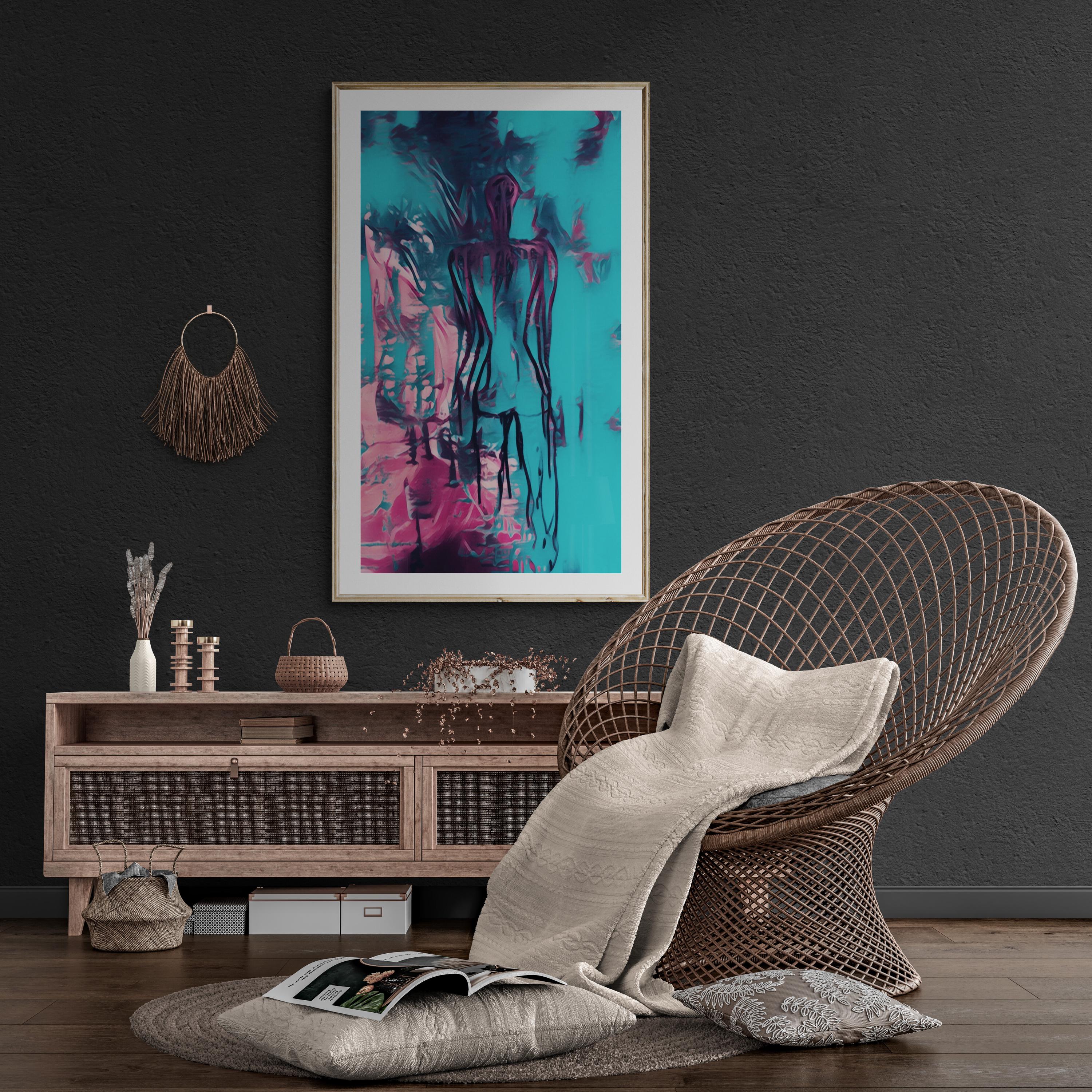 Turquoise Abstract Woman painting, Canvas art Print Figurative wall Art