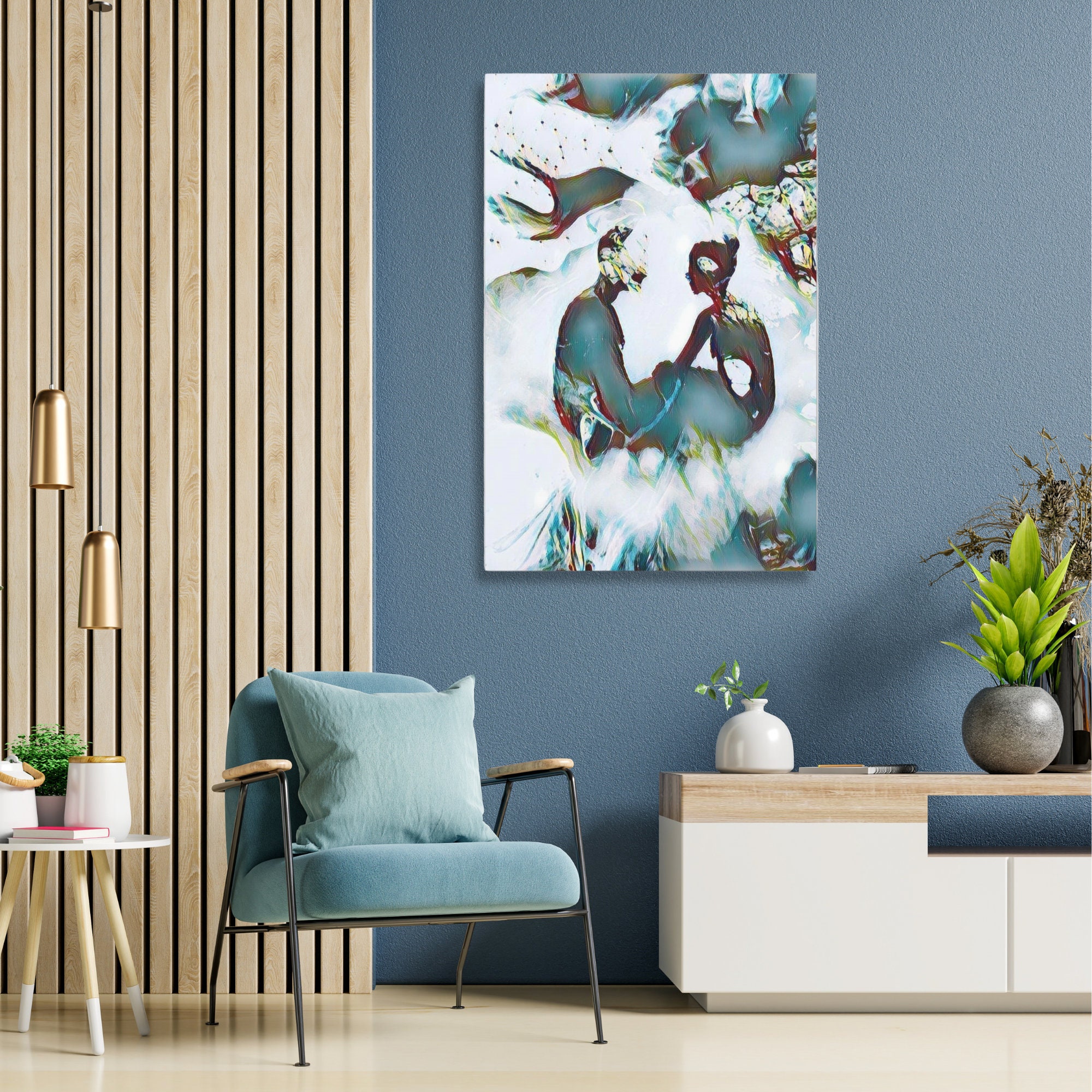 Blue Couple Love Painting Contemporarya acrylic art on Silk Poster