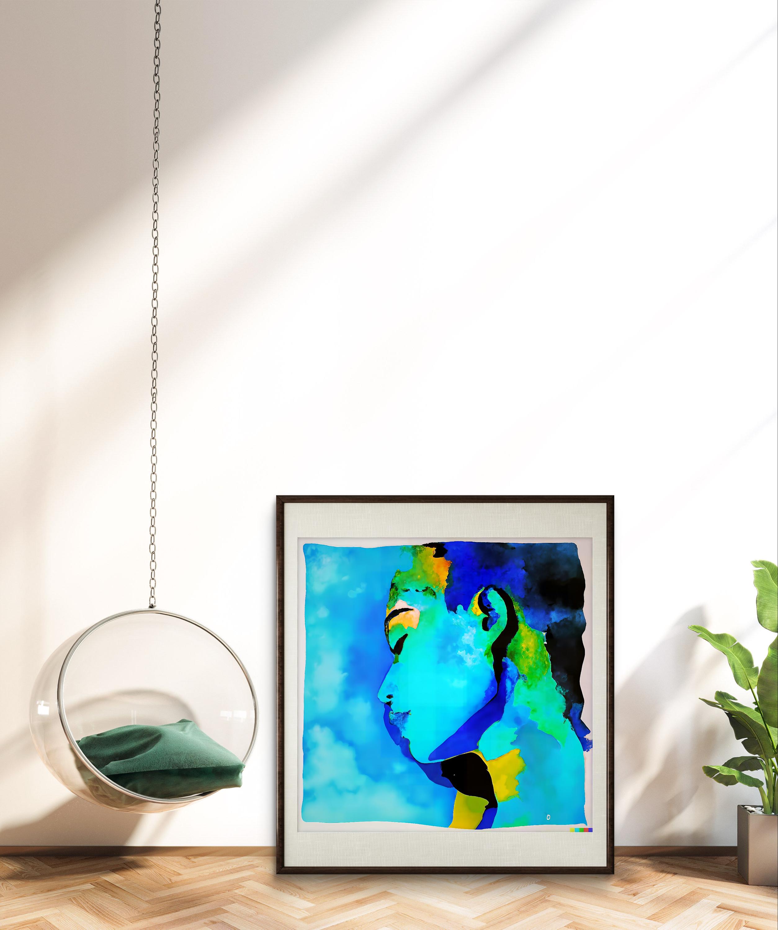 Blue Female portrait Painting Abstract Figurative wall Art