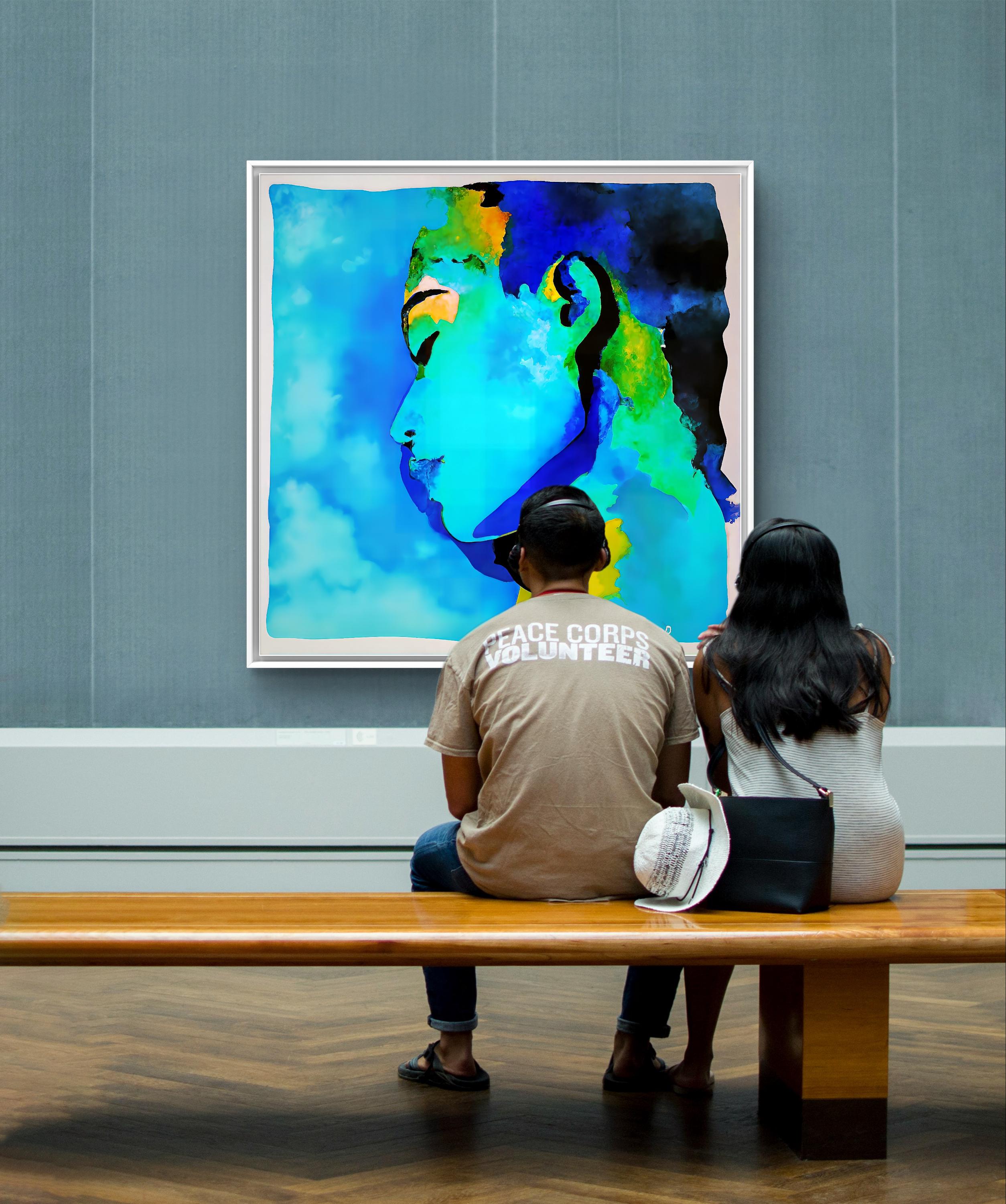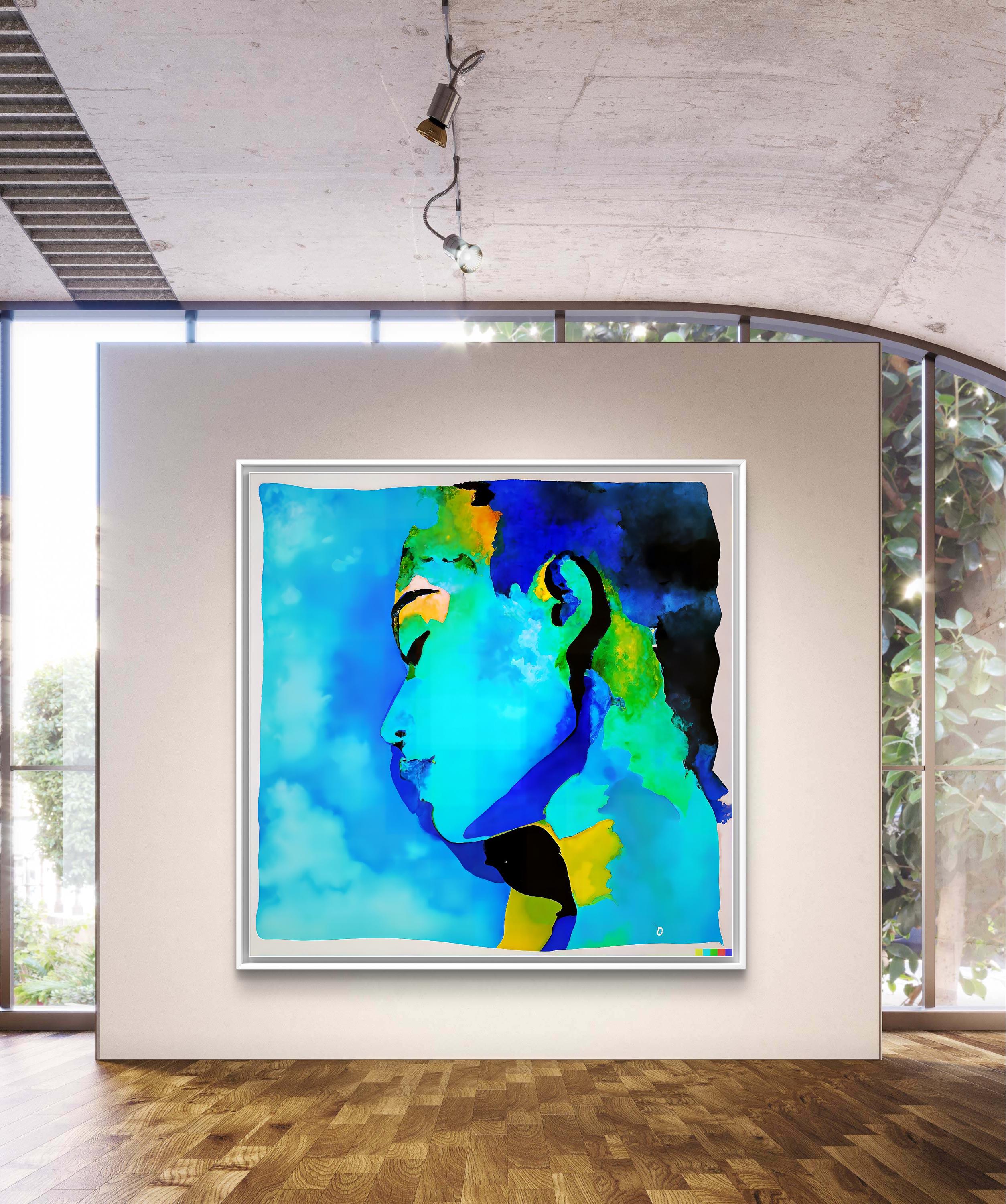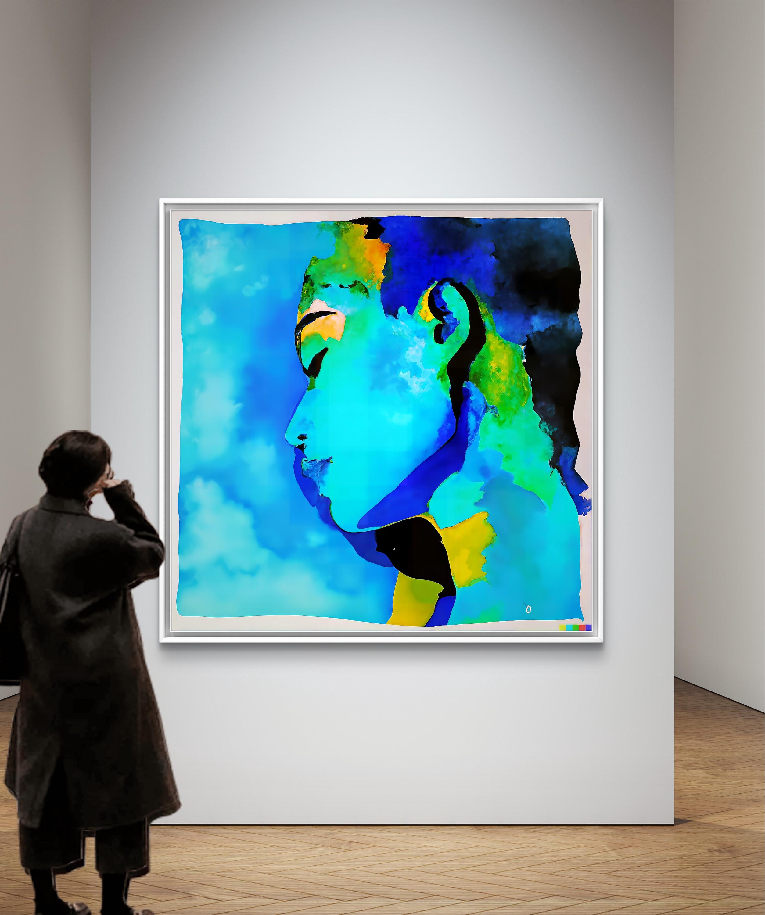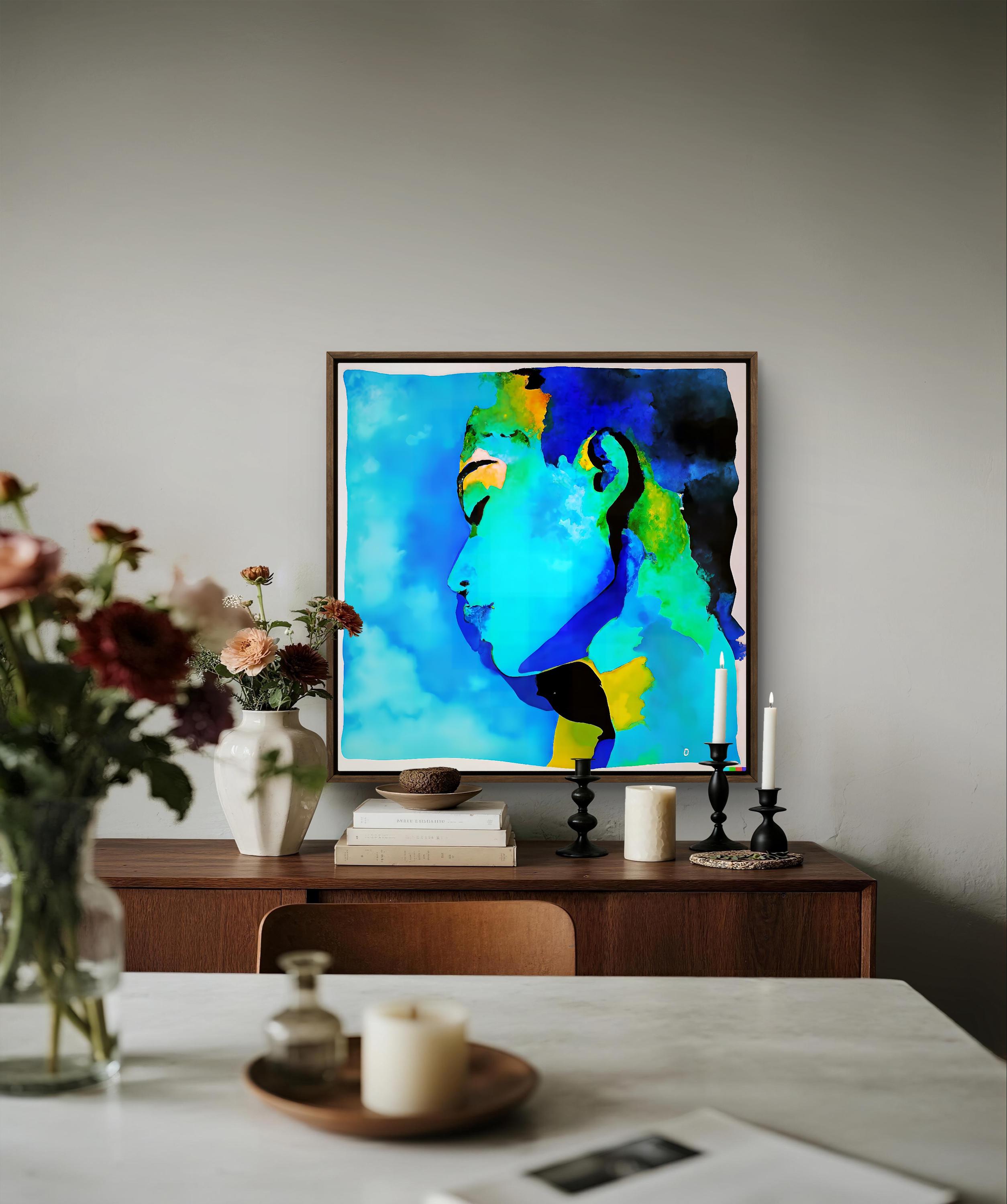 This paintung combines abstract and figurative elements, presenting feminin profile that merges seamlely into the vibrant backround.