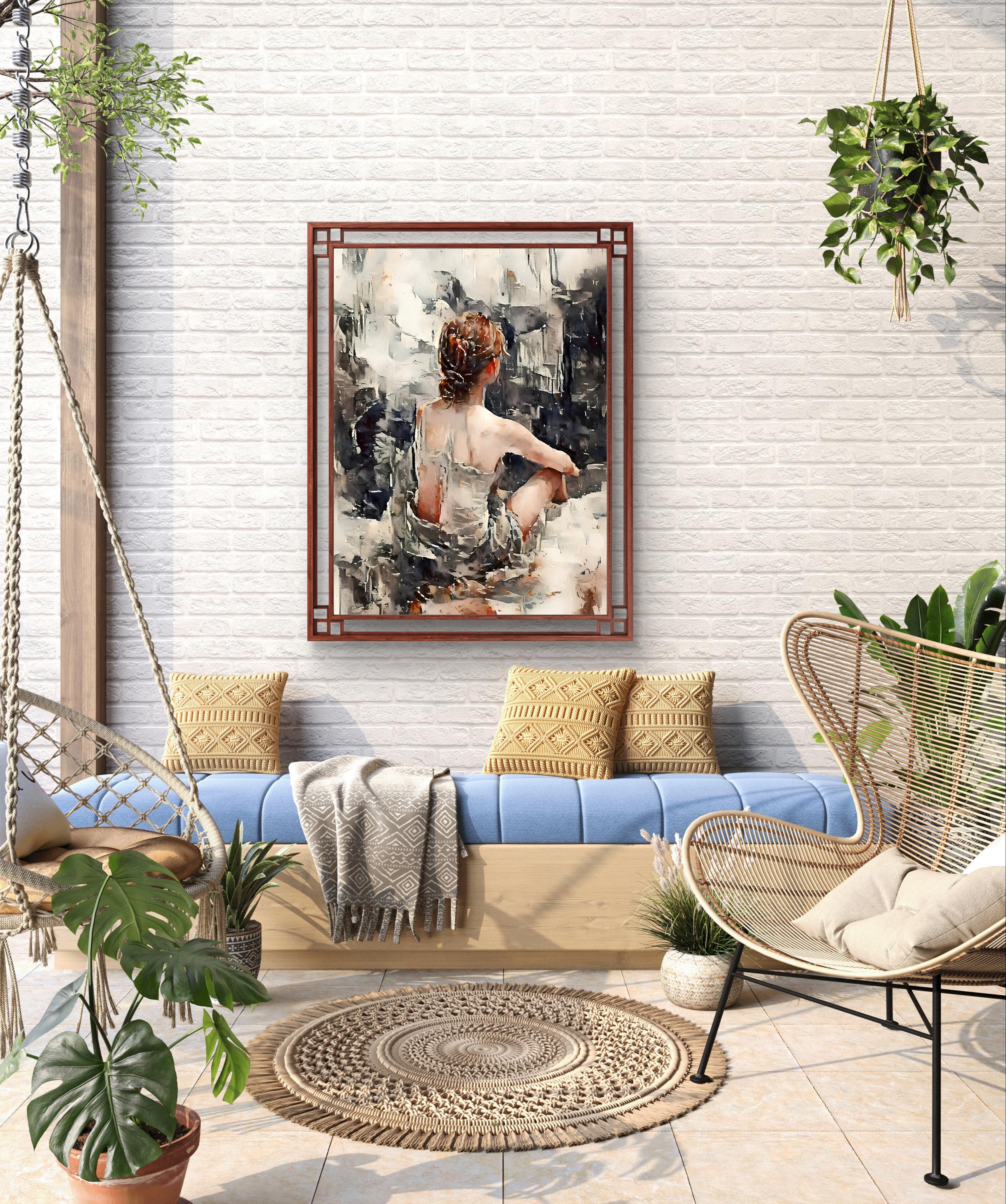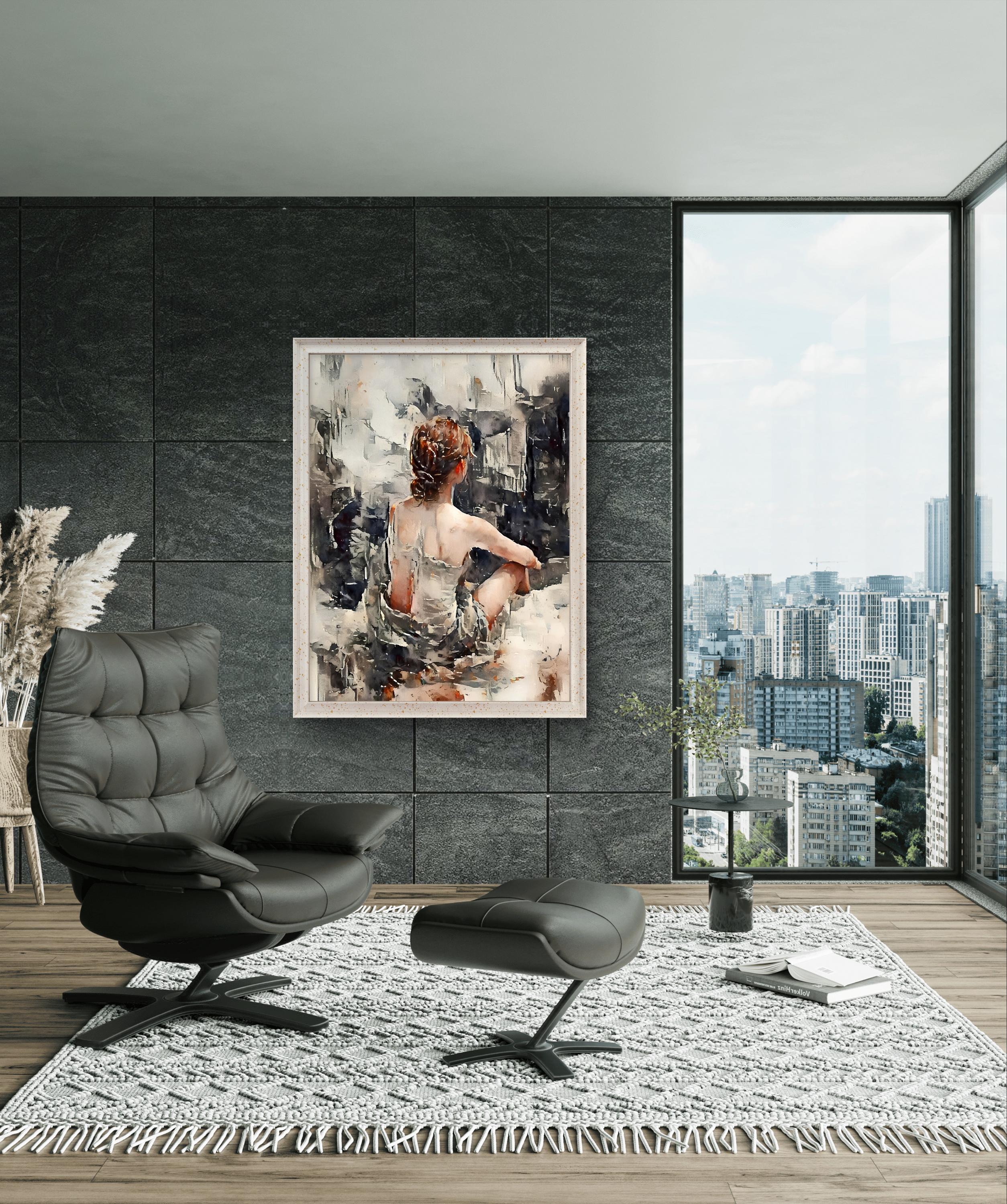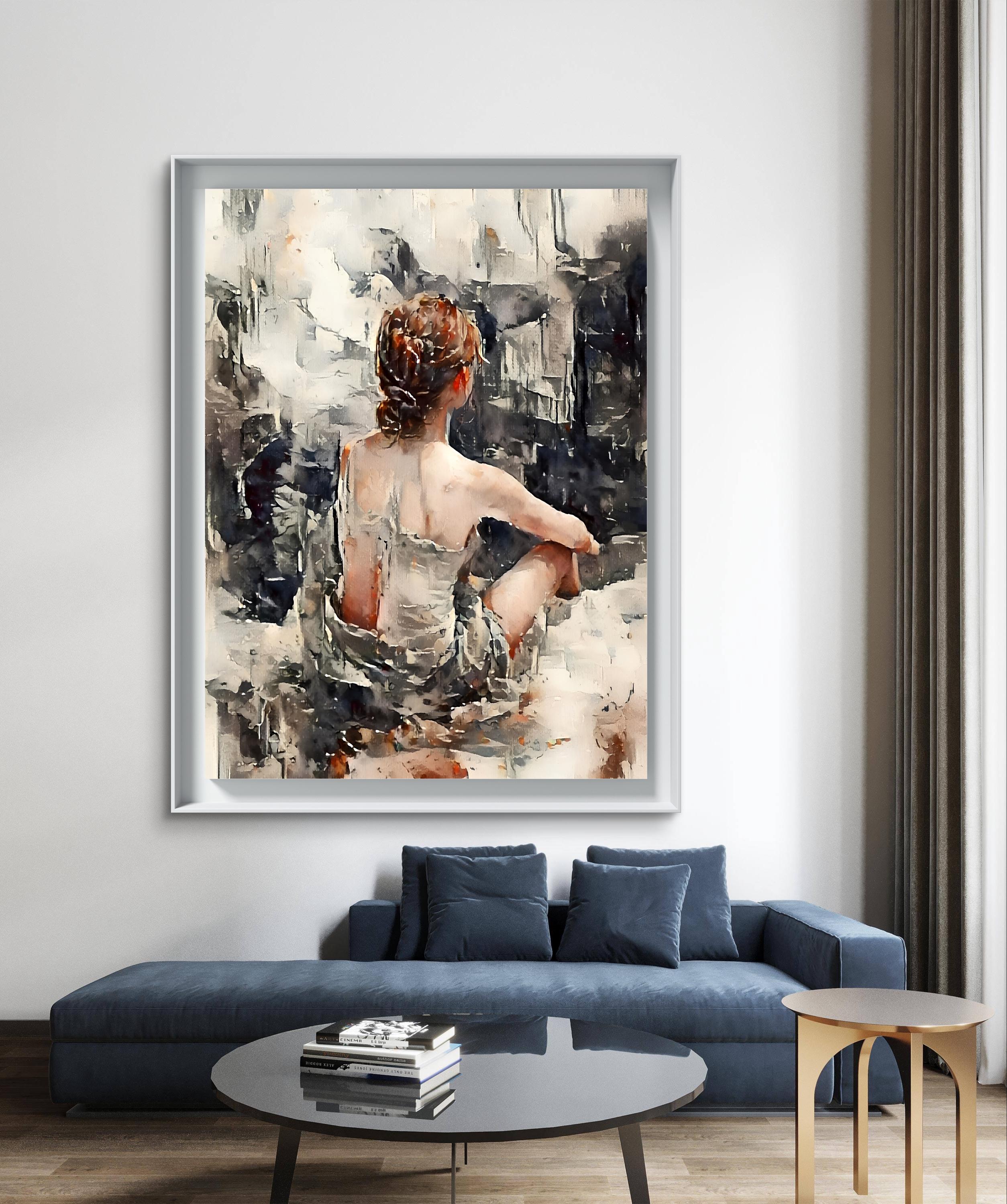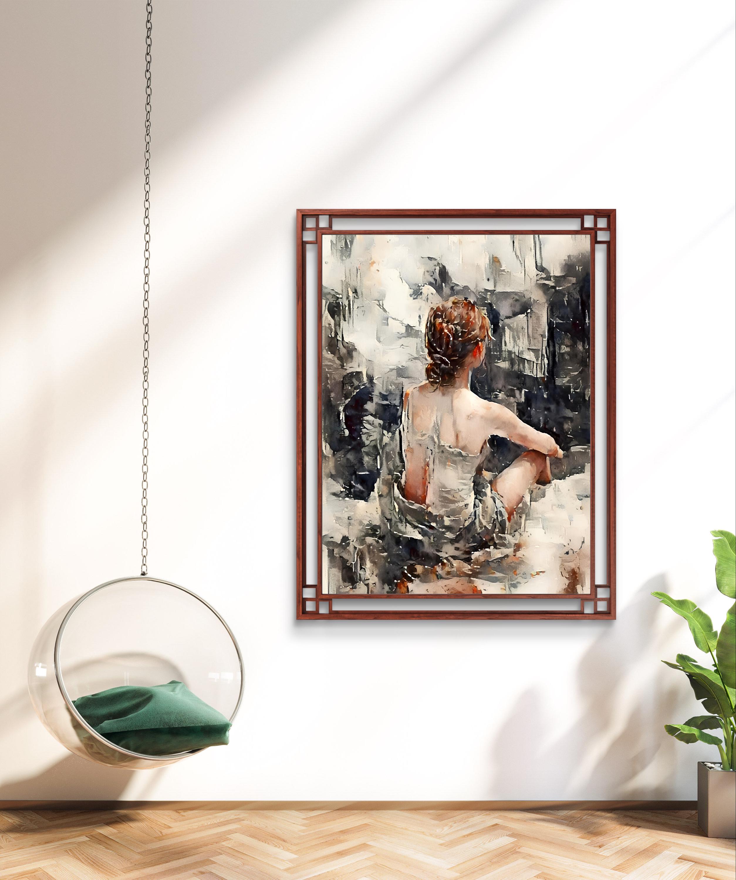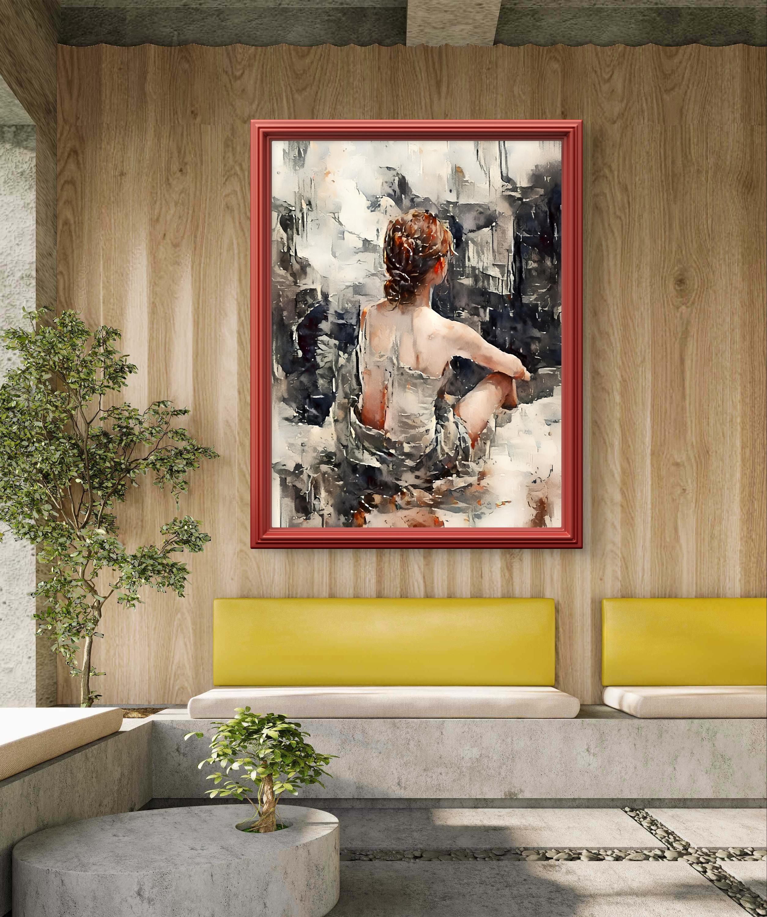 This artwork adds a poetic, reflective atmosphere to any space. Its neutral tones and emotional resonance make it ideal for modern interiors that appreciate subtlety and soul.