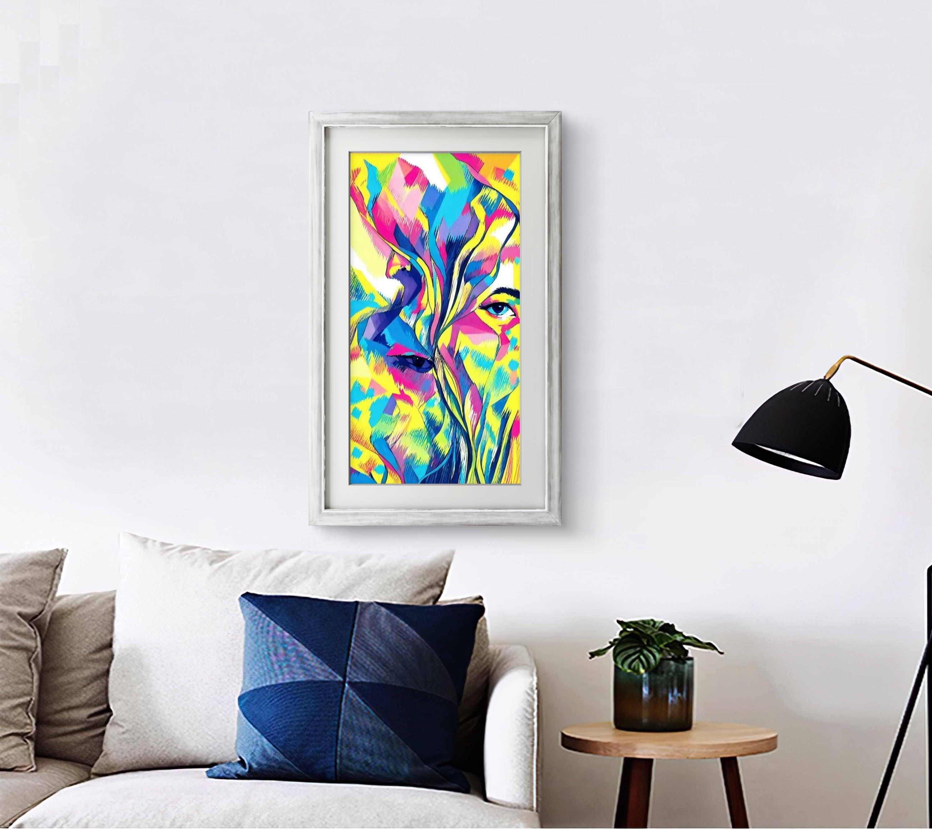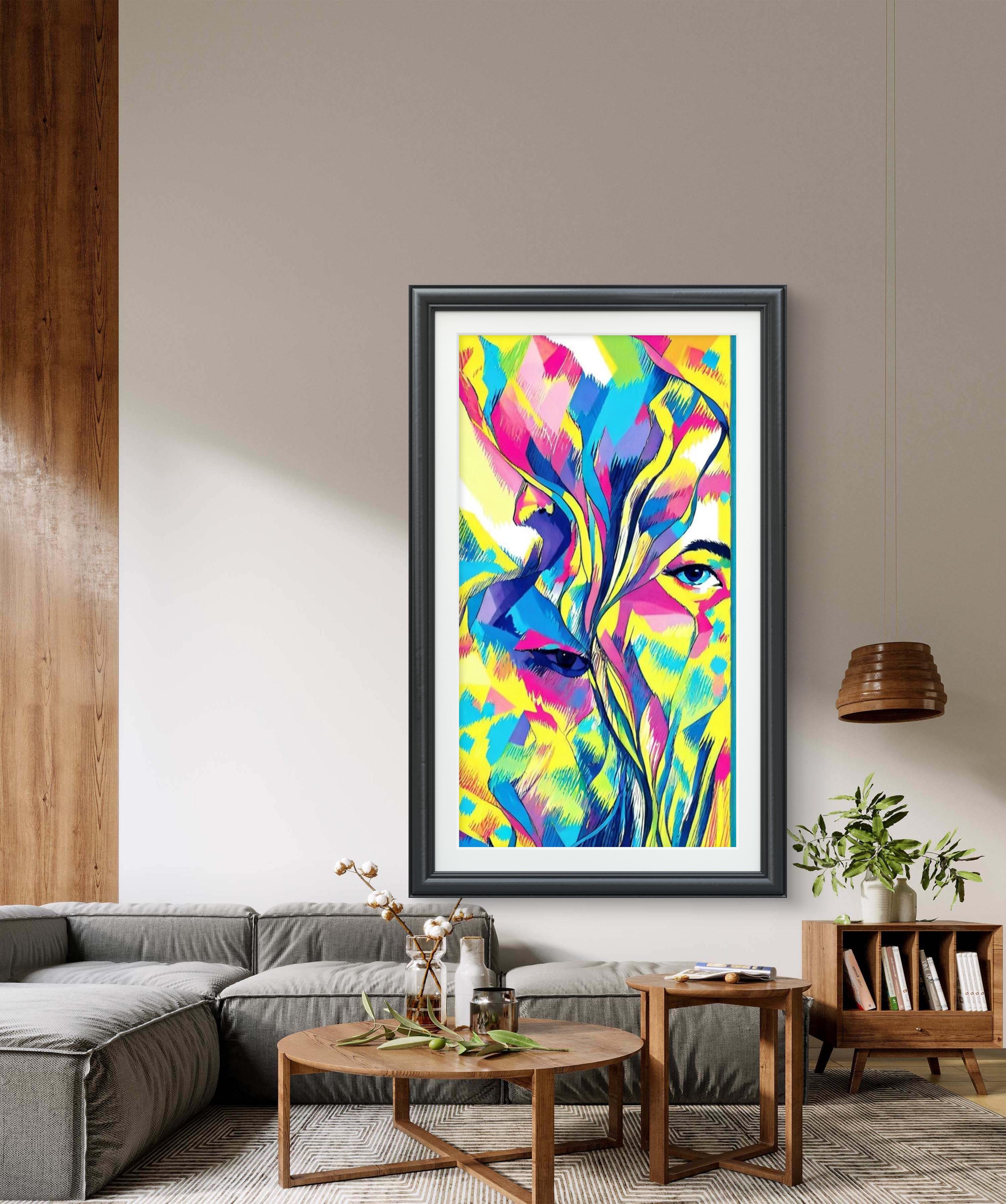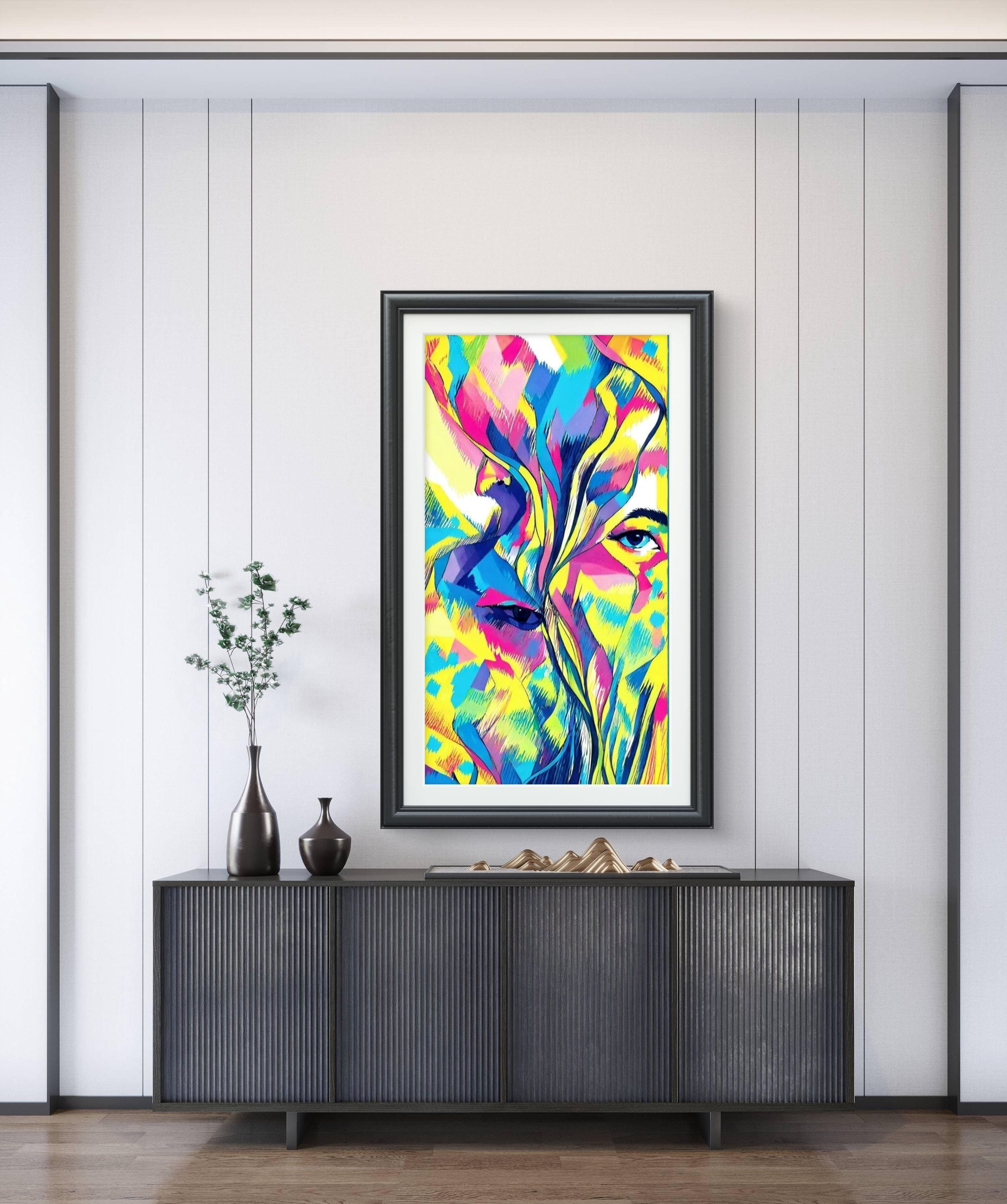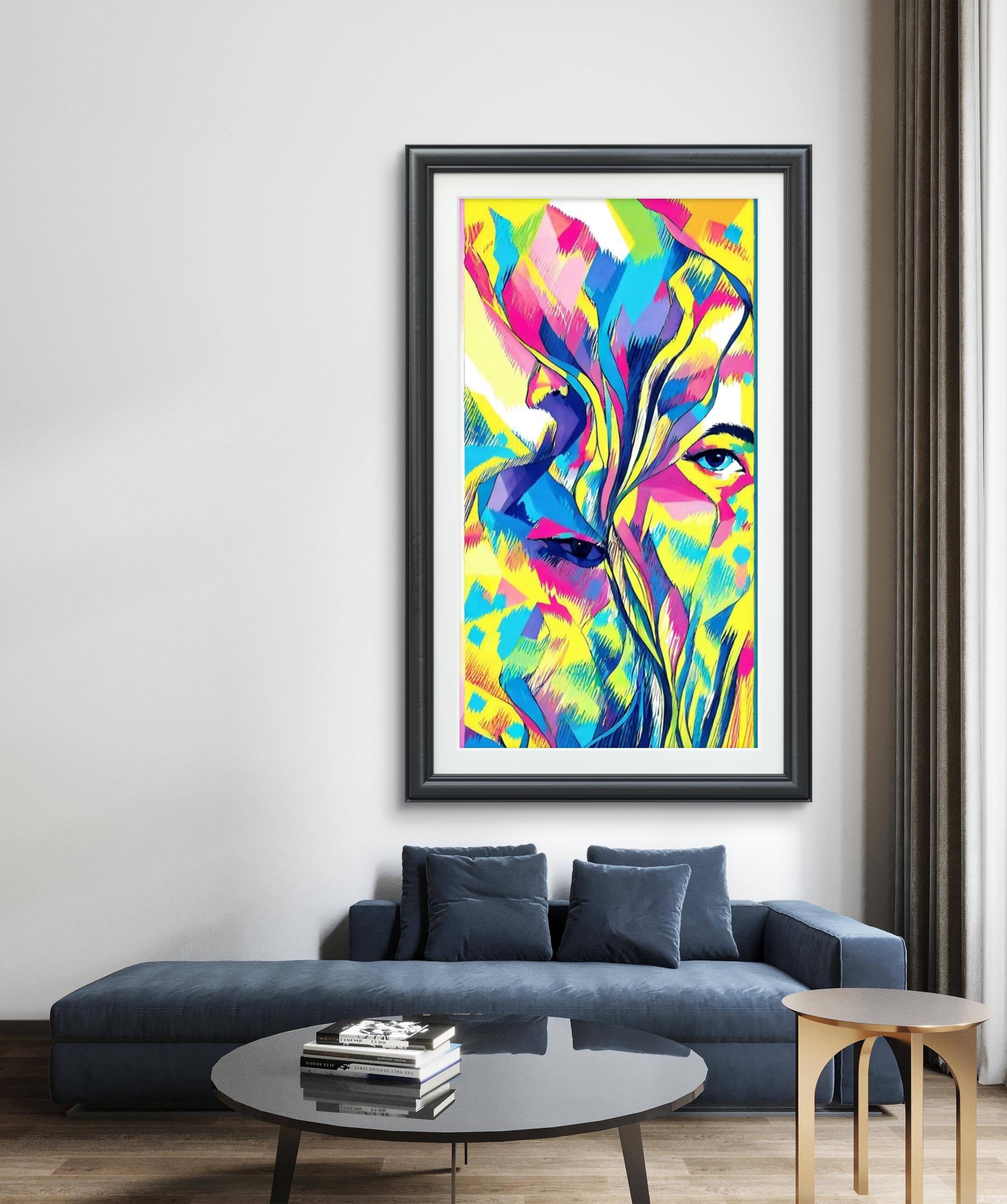 This piece is perfect for spaces that benefit from bold artistic presence and vibrant energy: Living Room
