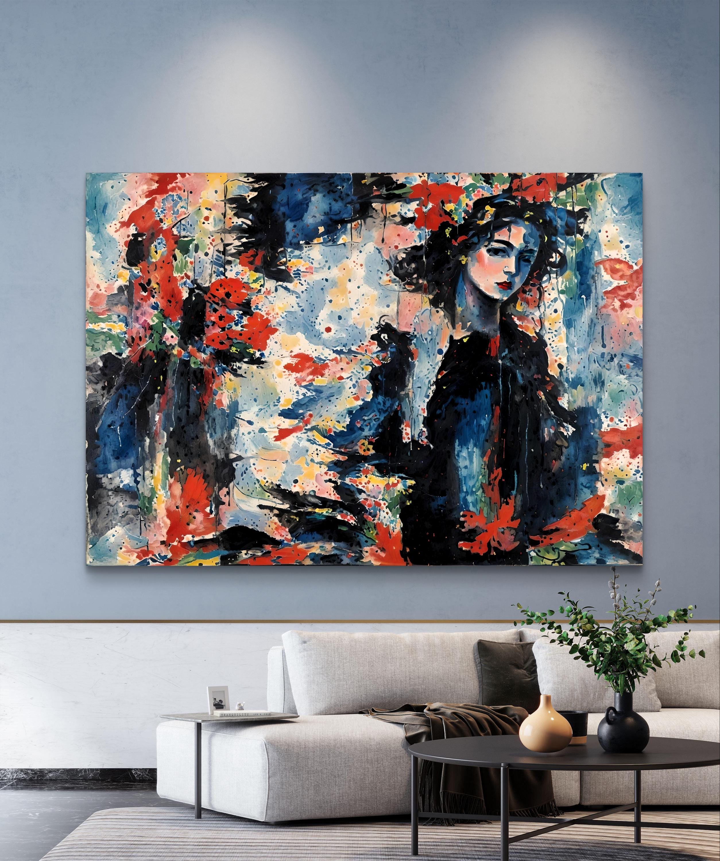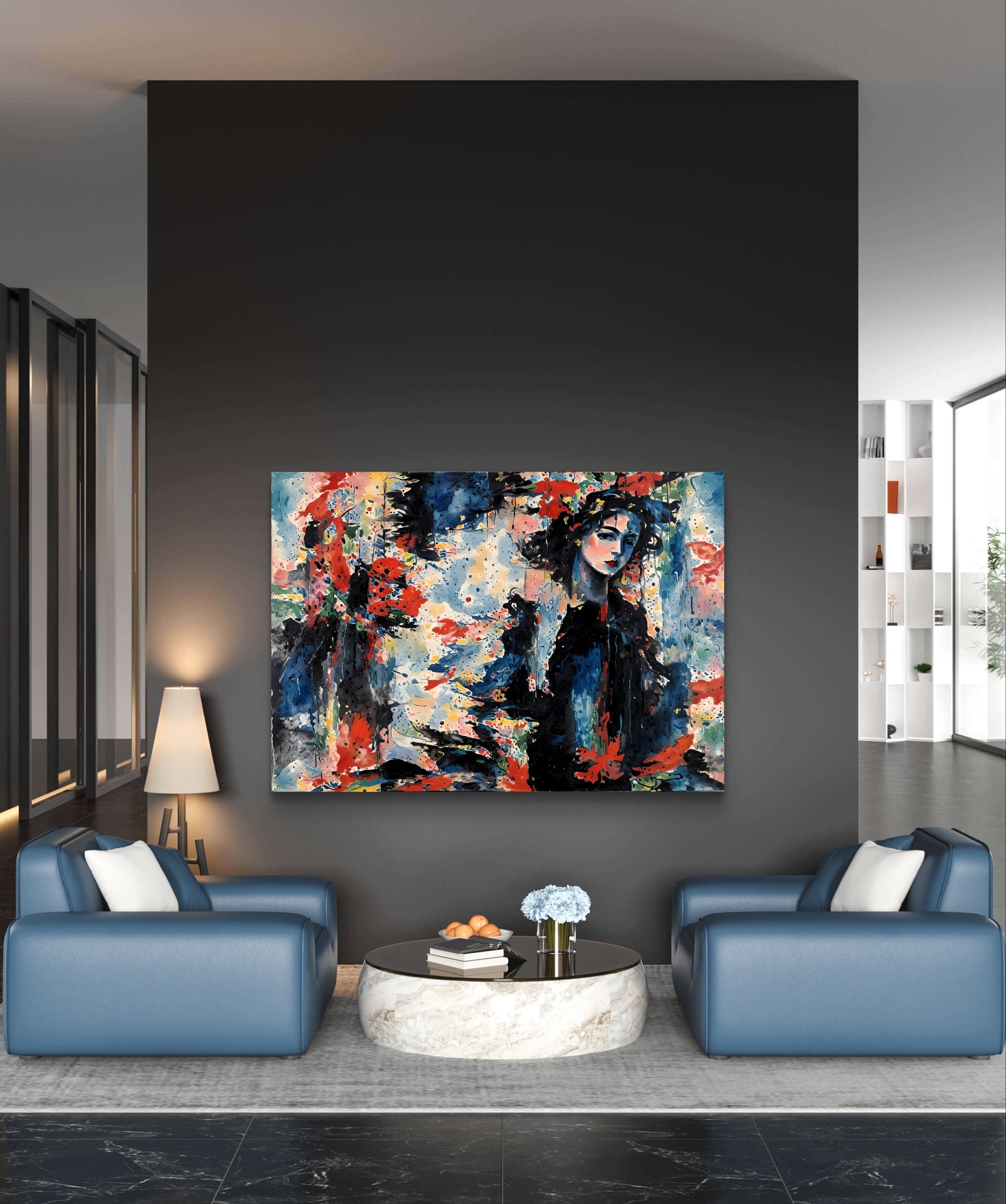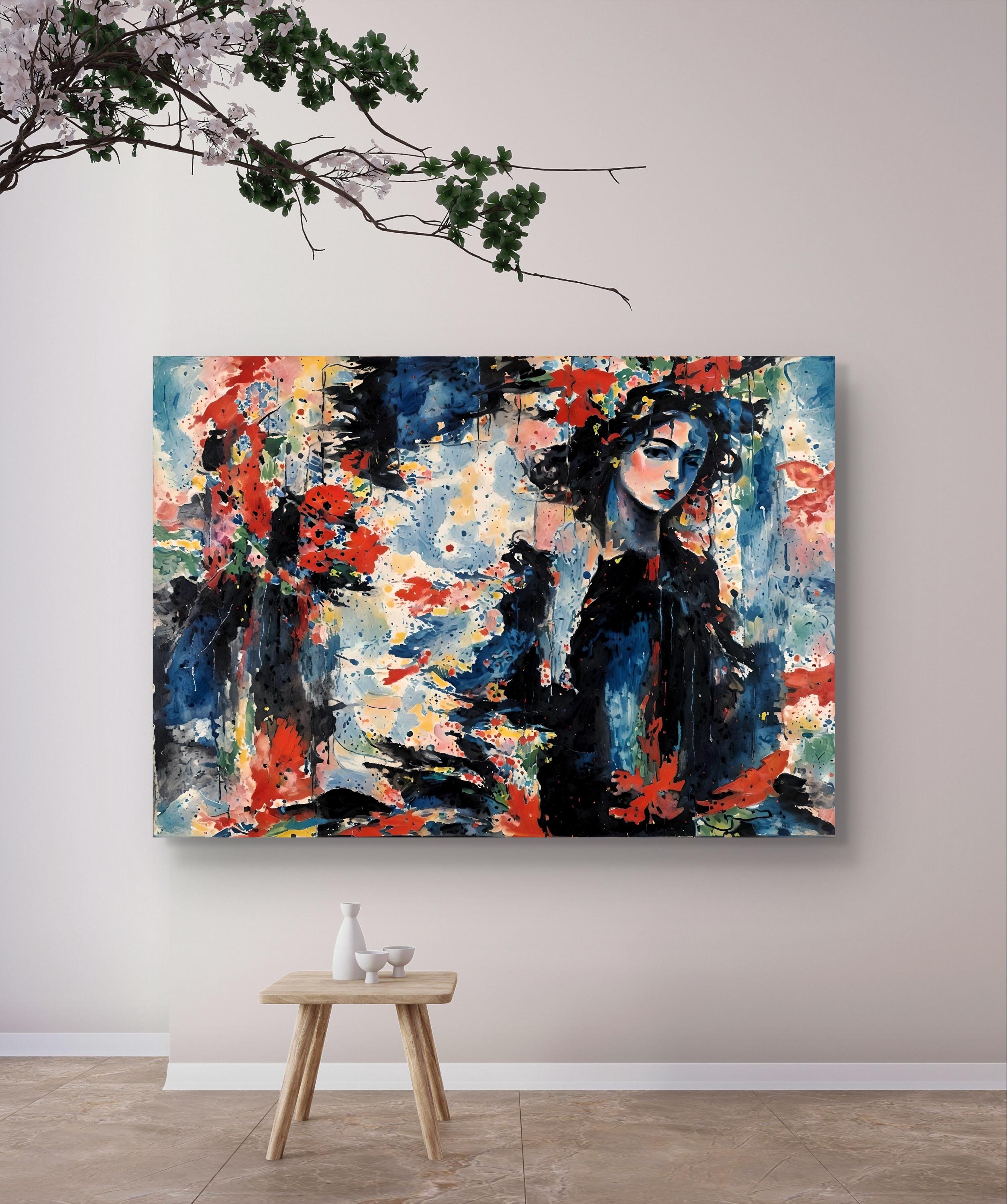 Abstract wall art, large wall art, contemporary art print. Abstract original painting on canvas, livingroom, bedroom art, Home decor art.Abstract woman figur, original painting on canvas, living room modern painting, Home decor art, colorful contemporary abstract art. ready to hang.
