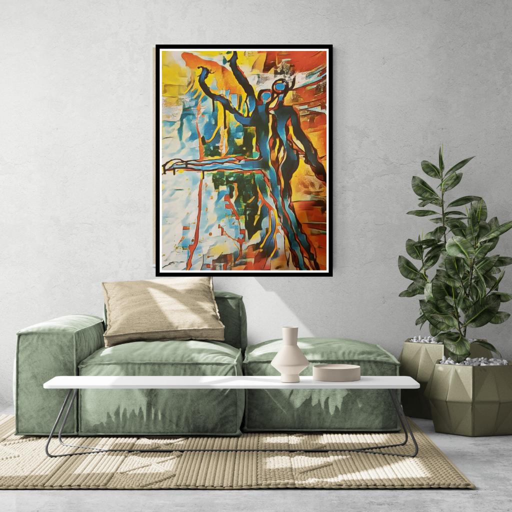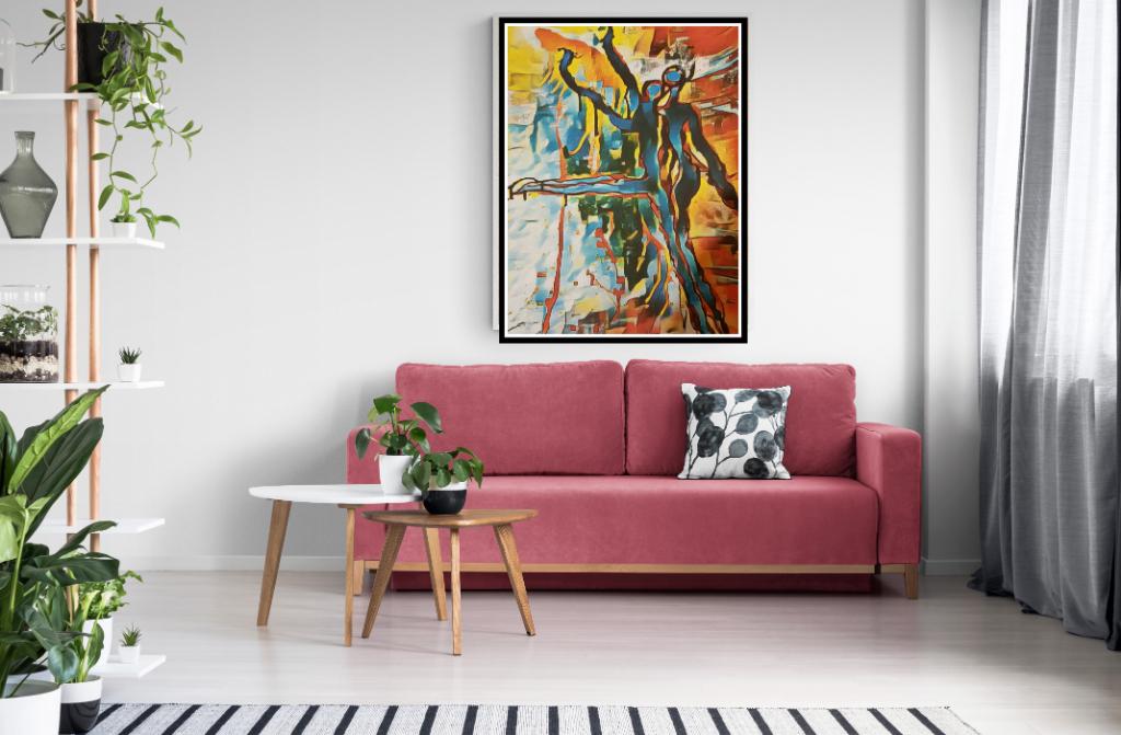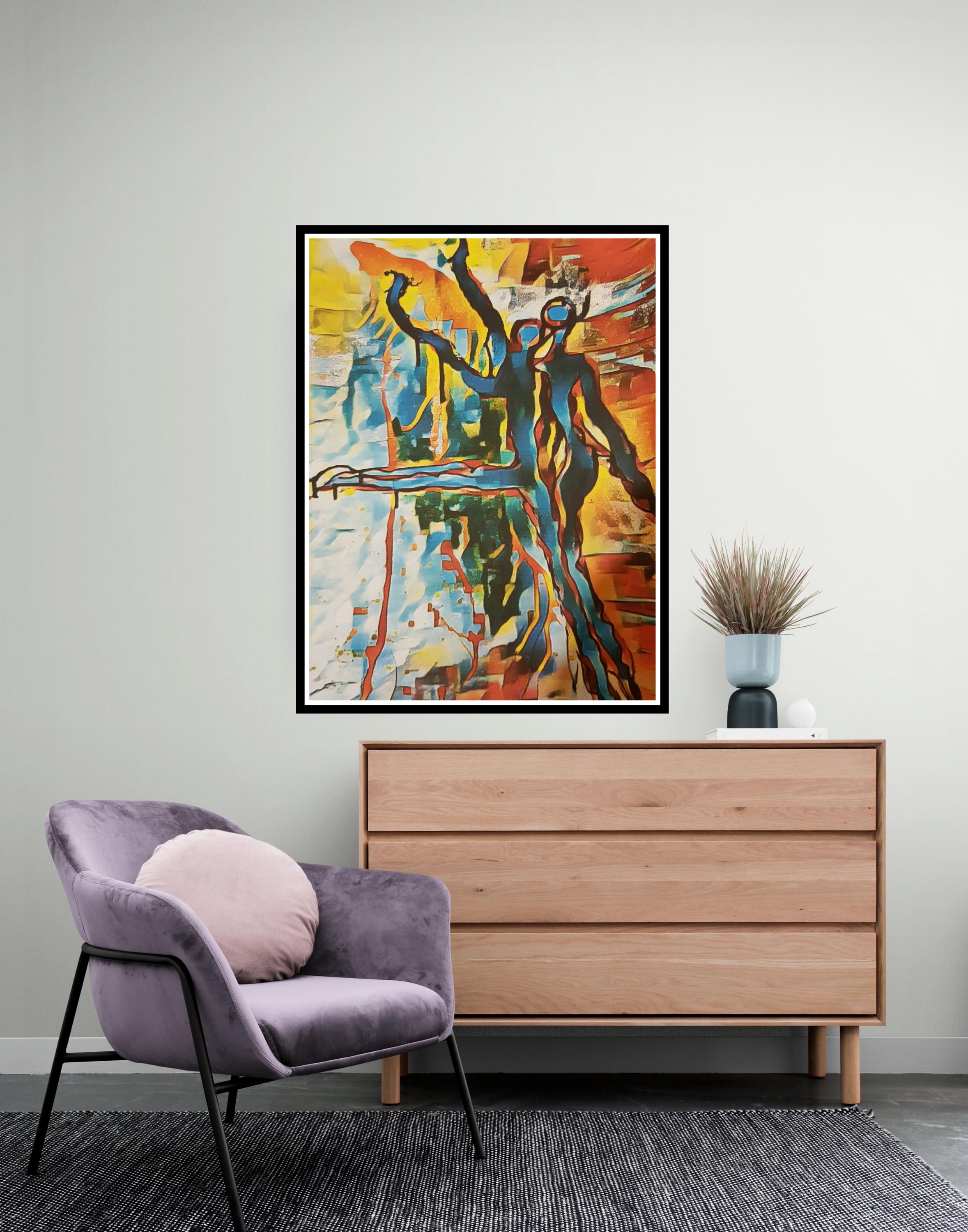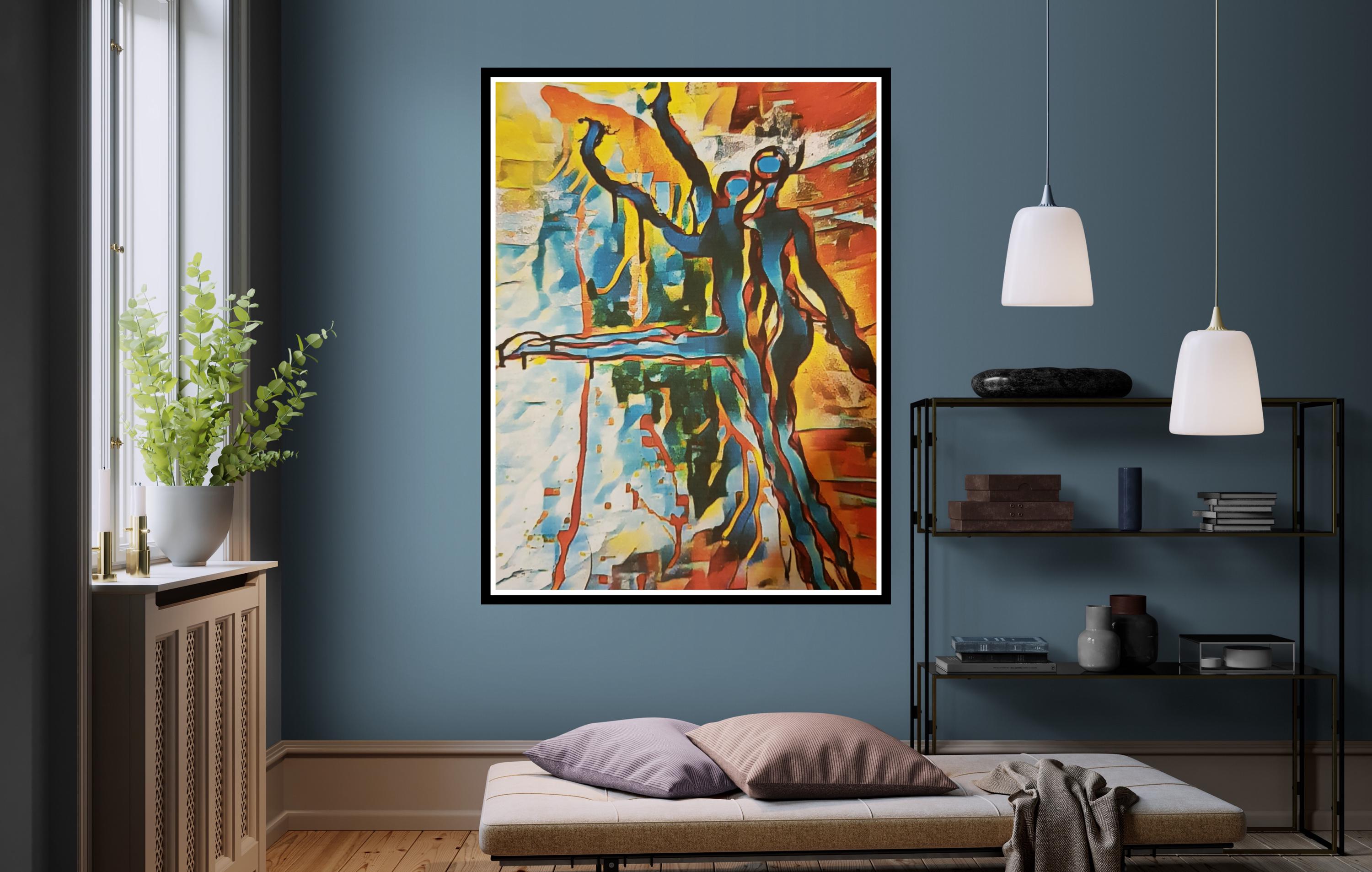 Elevate your space with this stunning abstract expressionist piece that captures the essence of human connection and natural growth. This vibrant painting features two stylized figures intertwined with tree-like forms, symbolizing a deep bond, spirituality, and the vitality of life.
