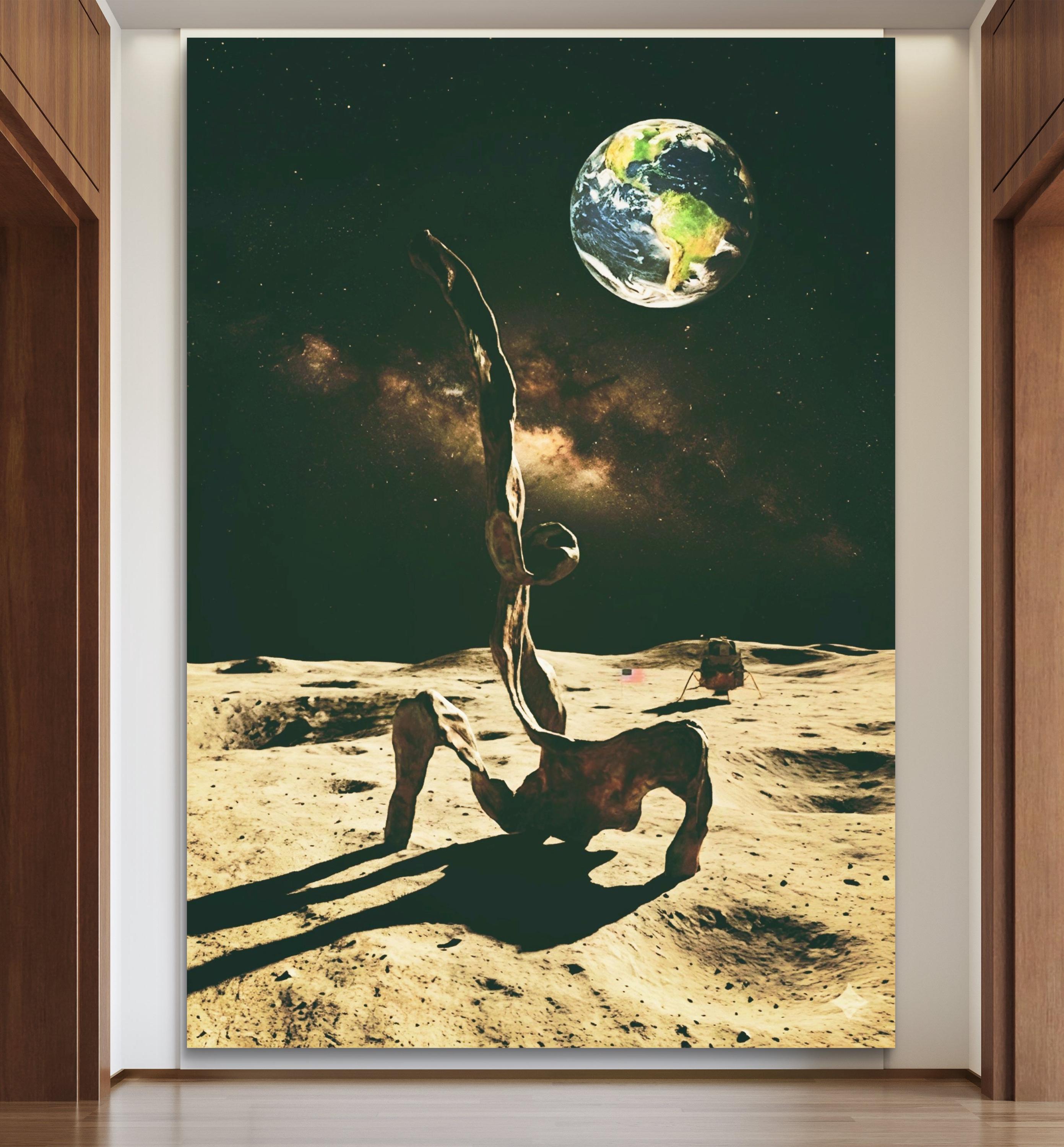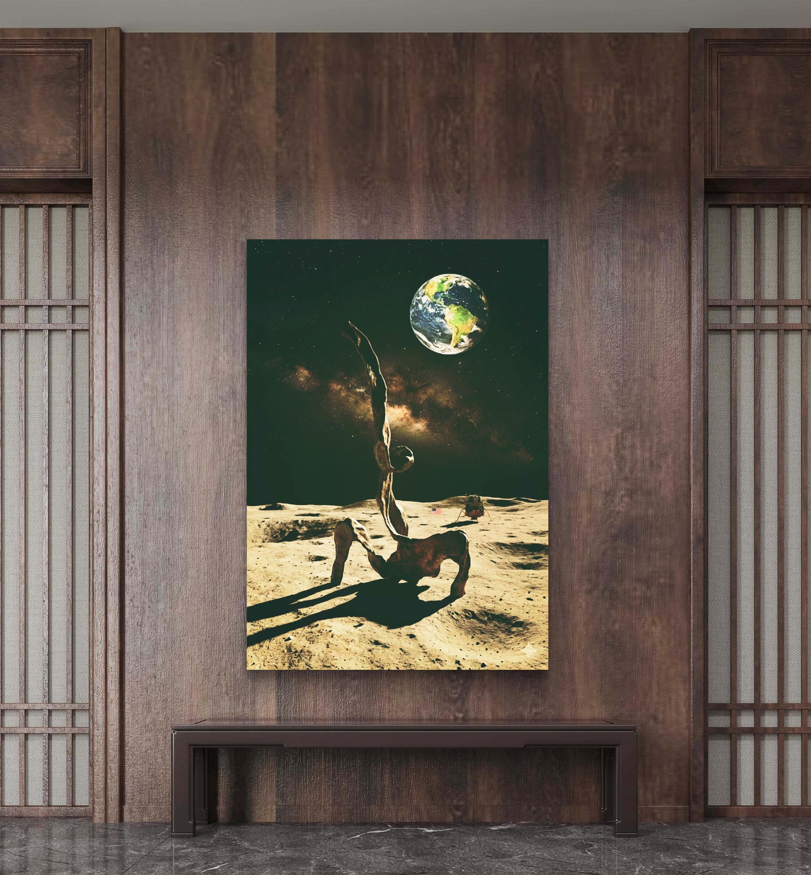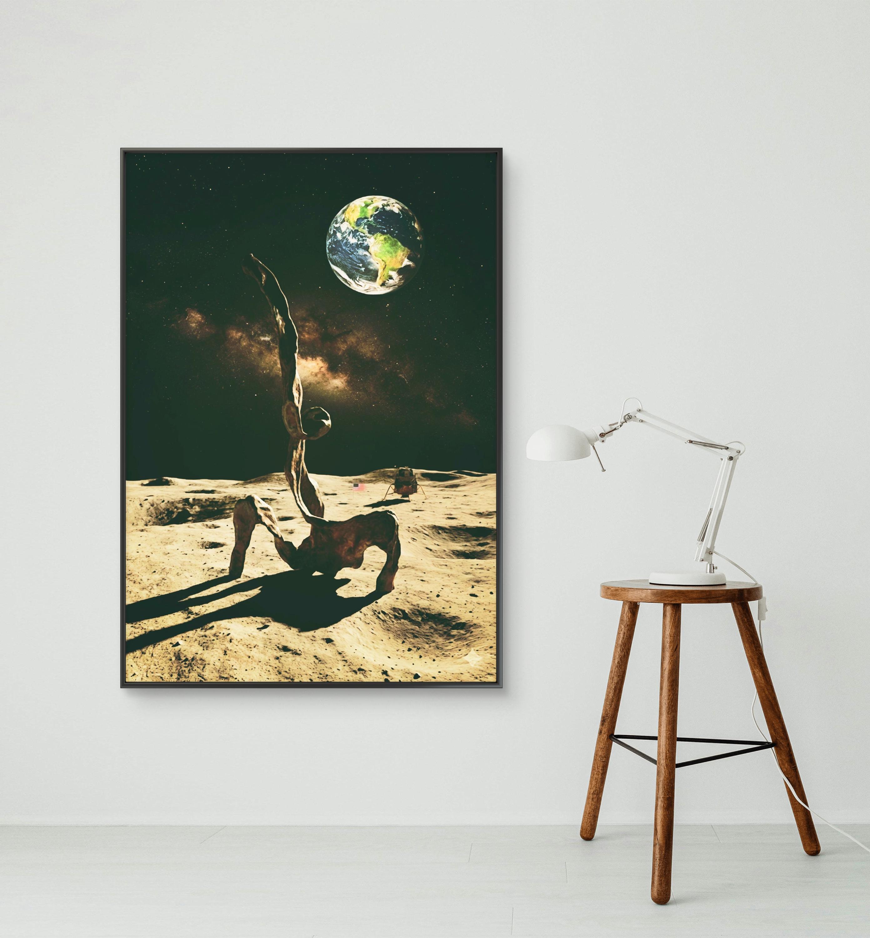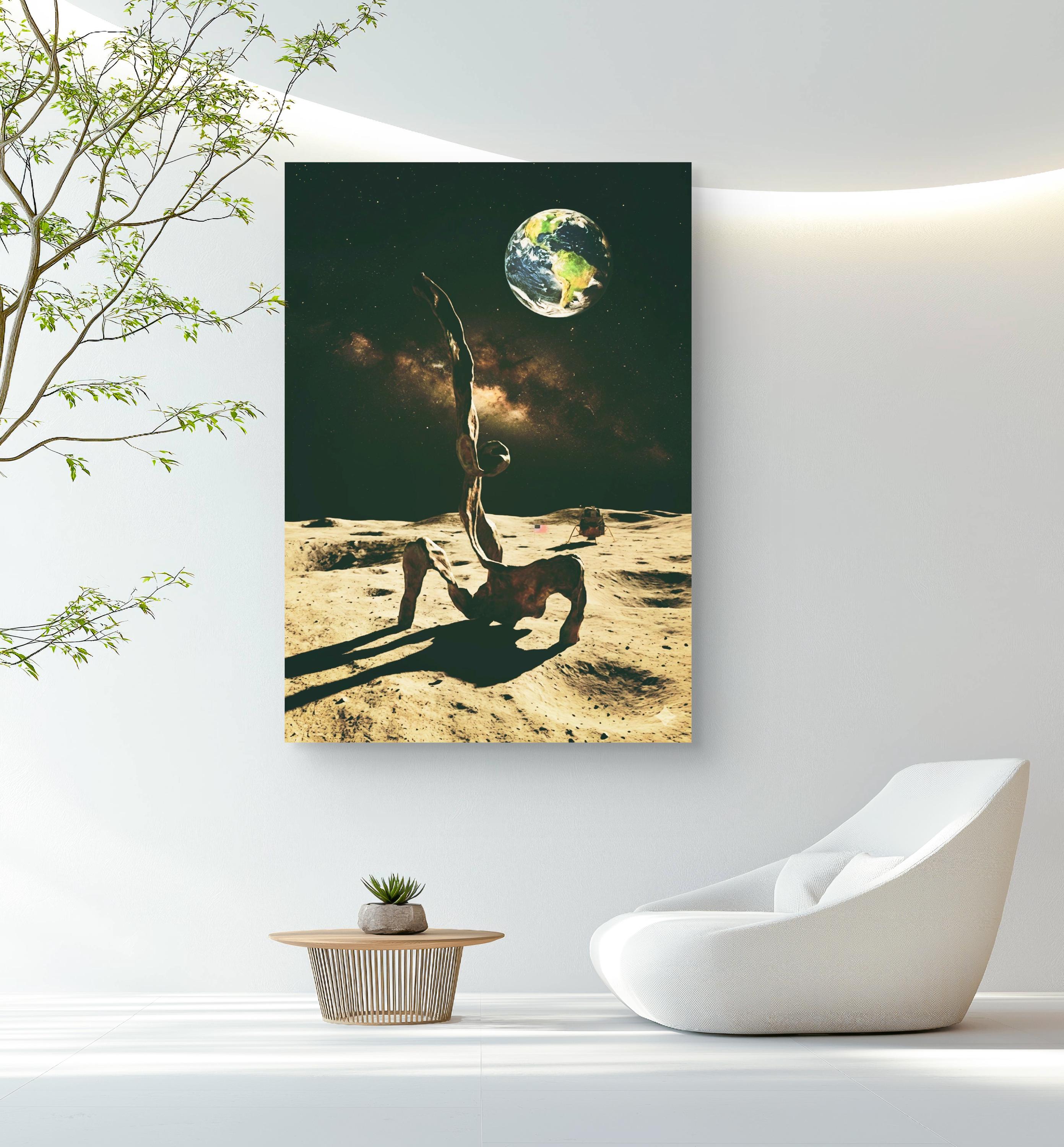 Abstract Sculpture bronze figure in full moon minimalist artwork poster