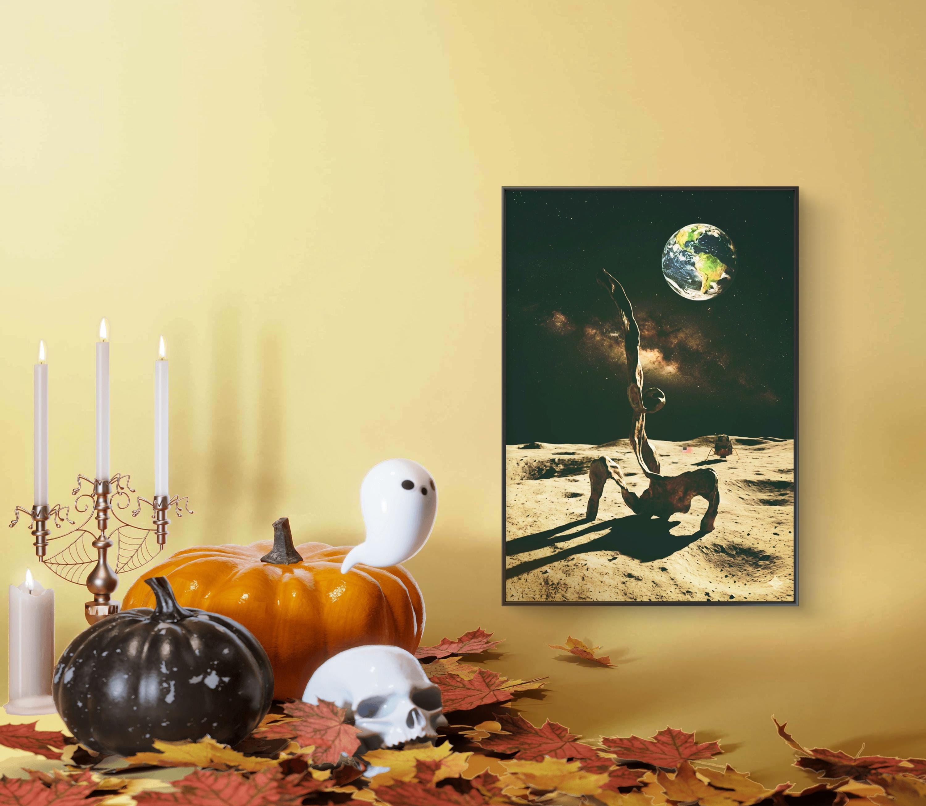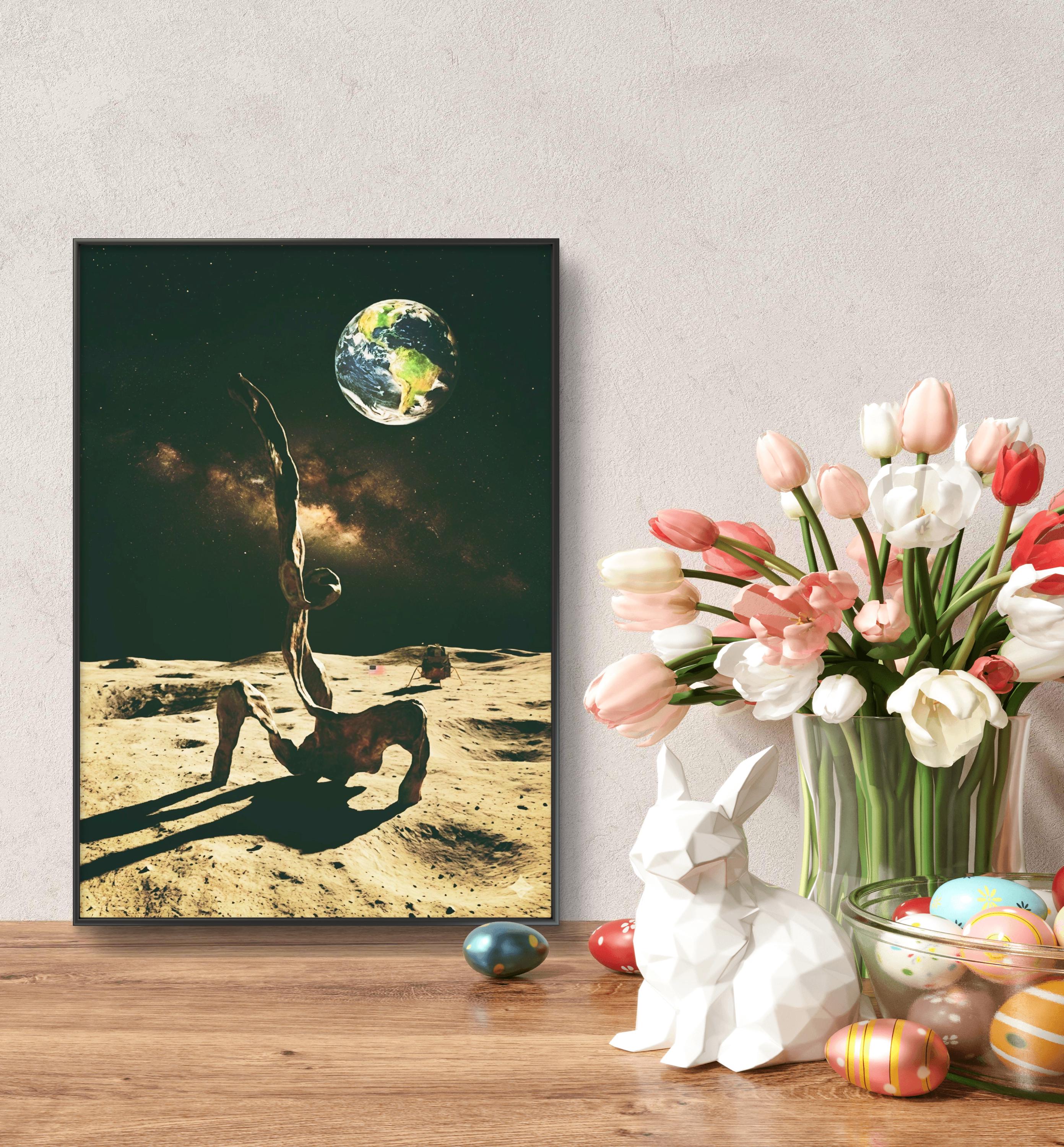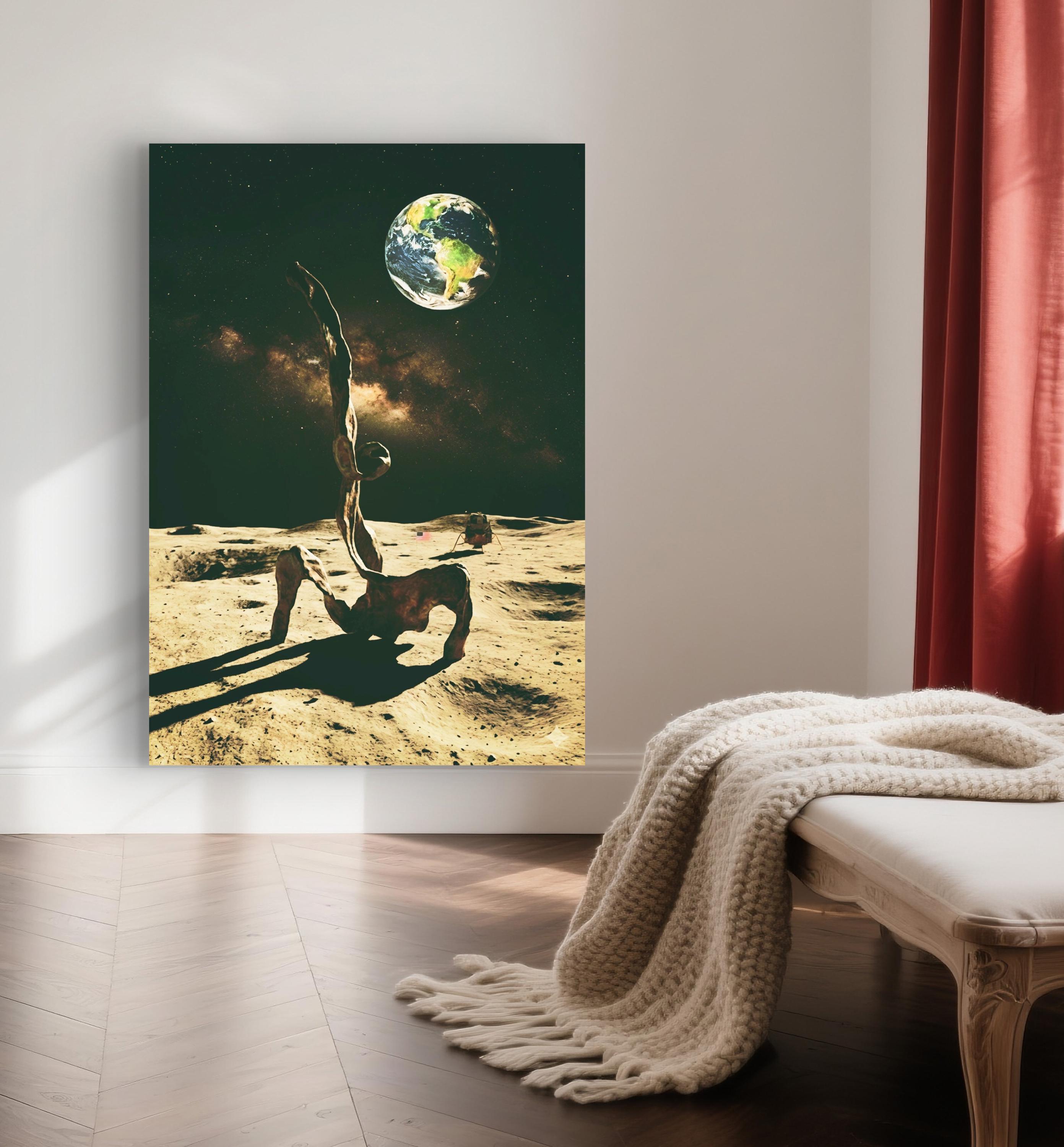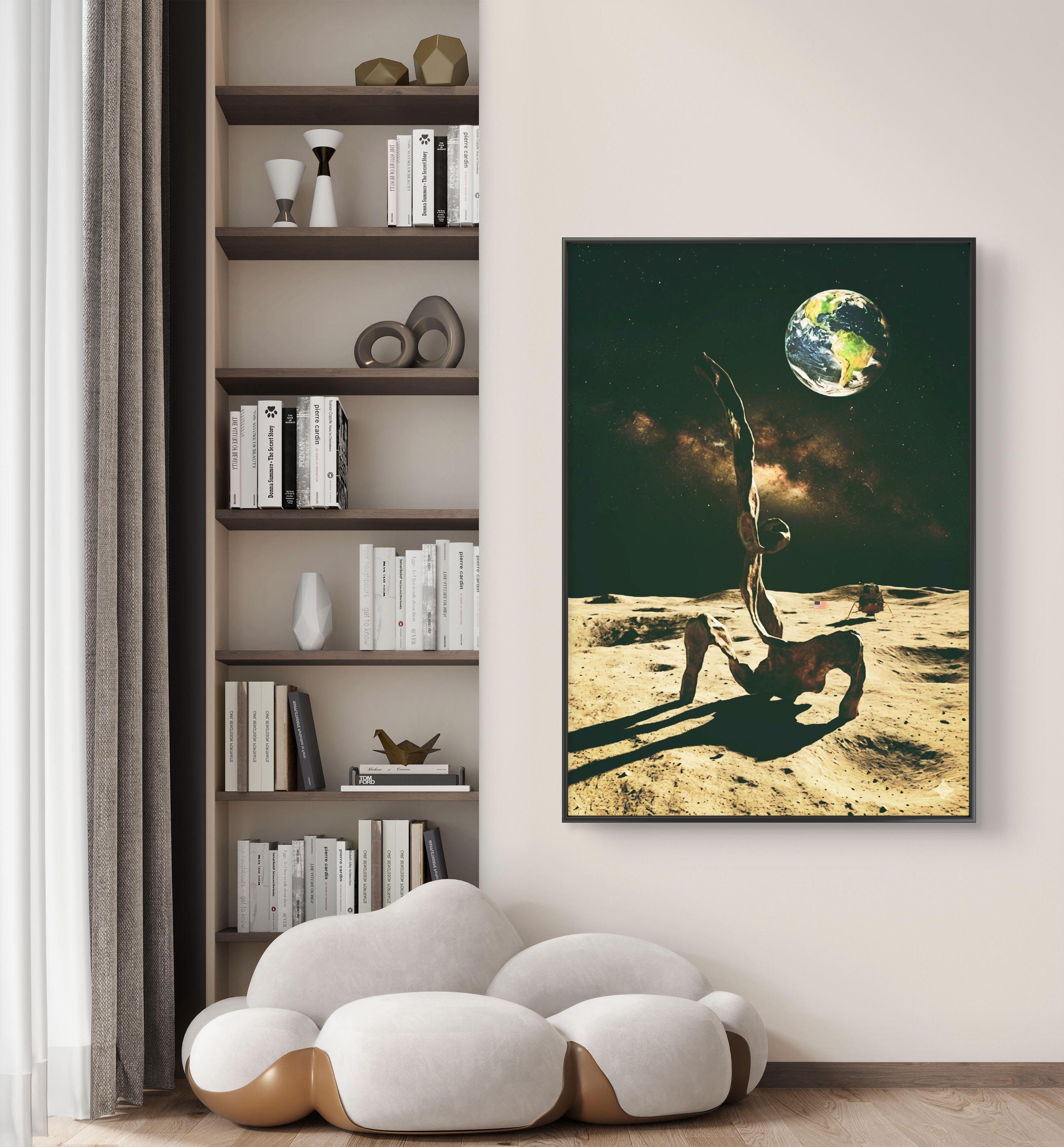 Abstract Sculpture bronze figure in full moon minimalist artwork poster