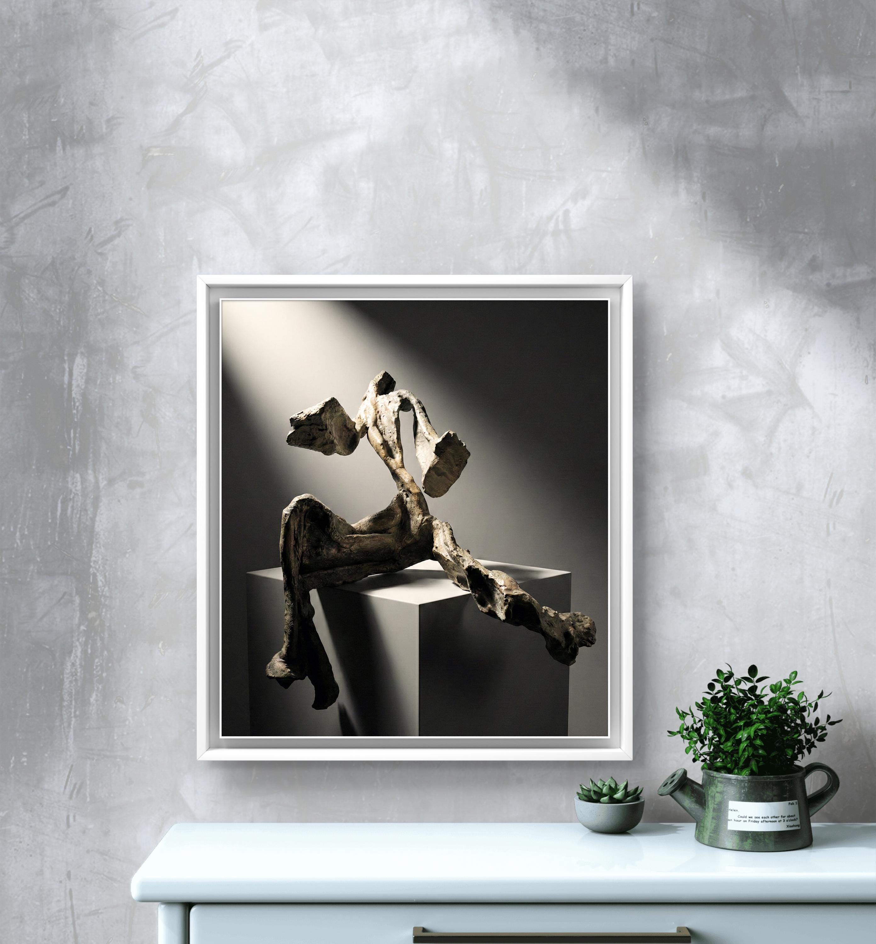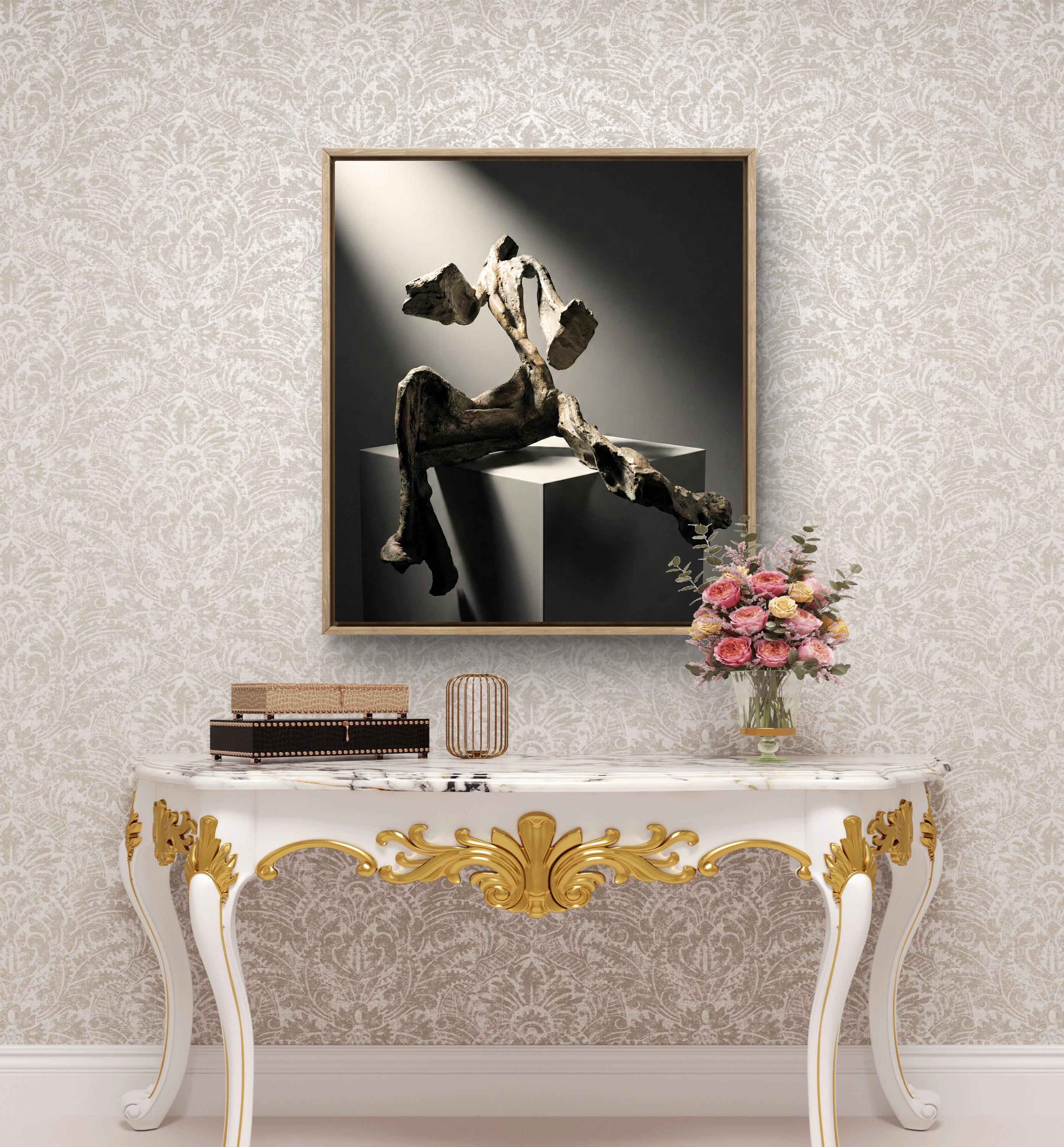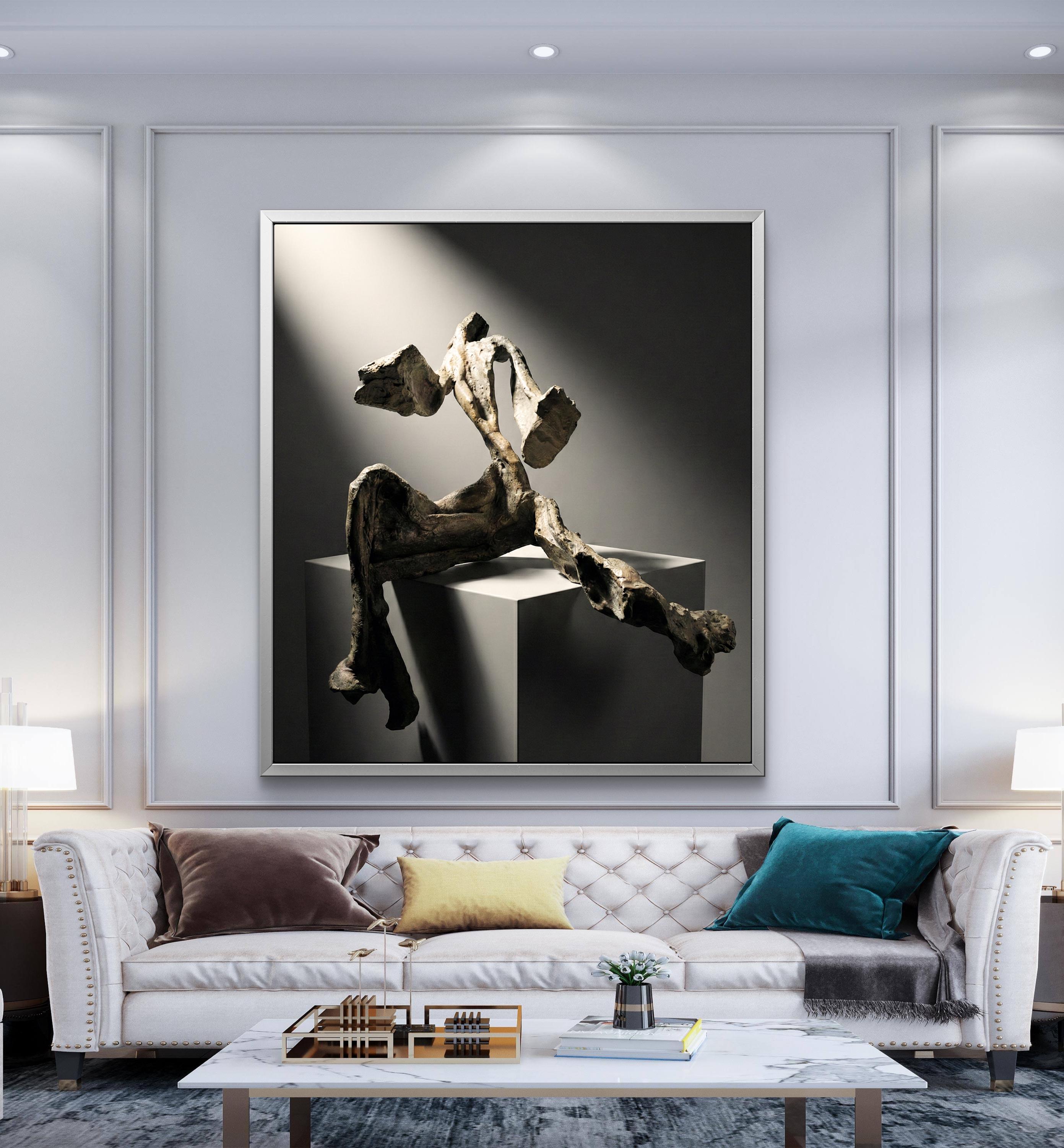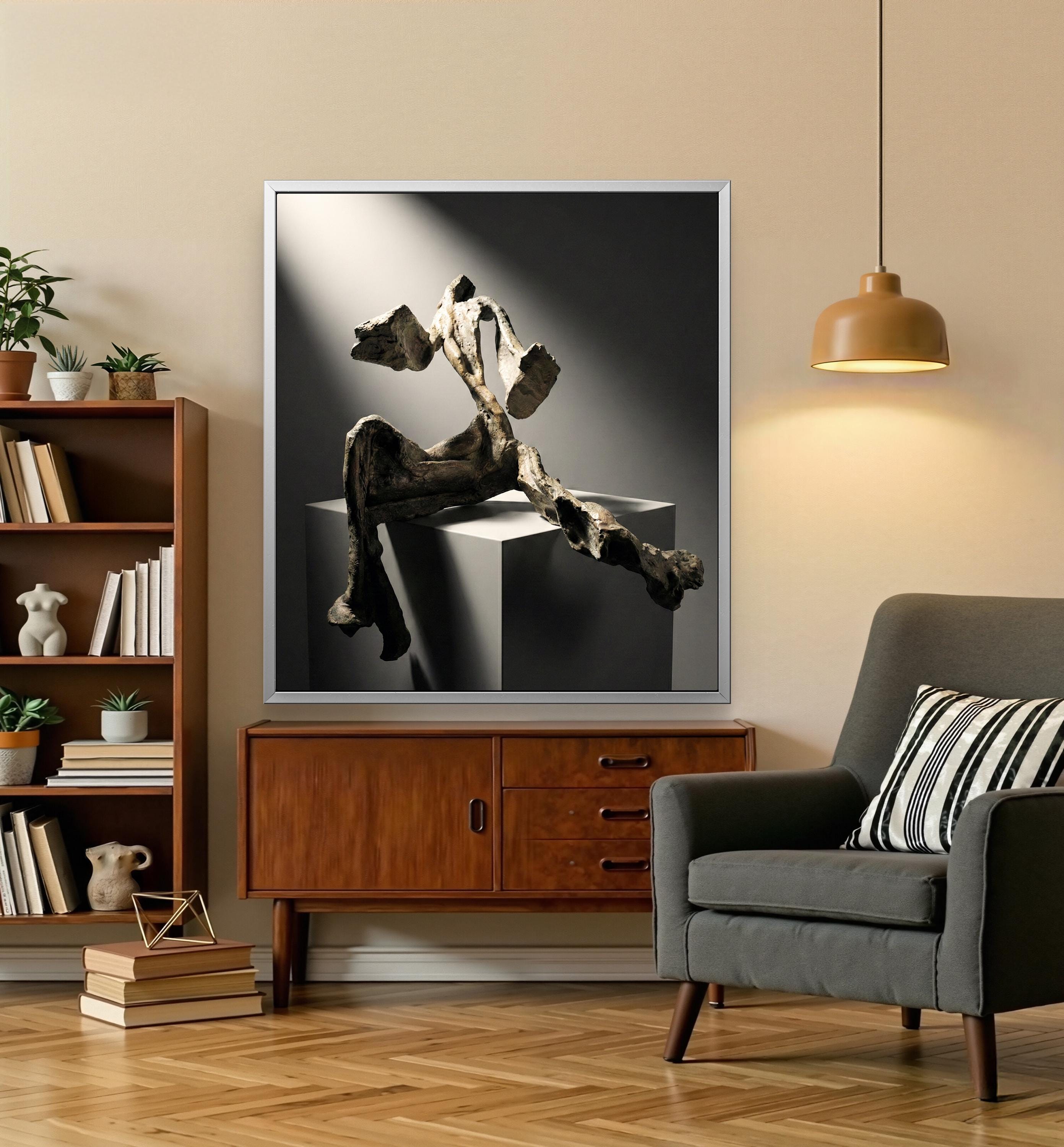 This isn't just a print; it's a conversation starter. The fluid lines of the sculpture combined with the stark lighting create a sense of movement and depth that draws the eye and grounds the room's energy.