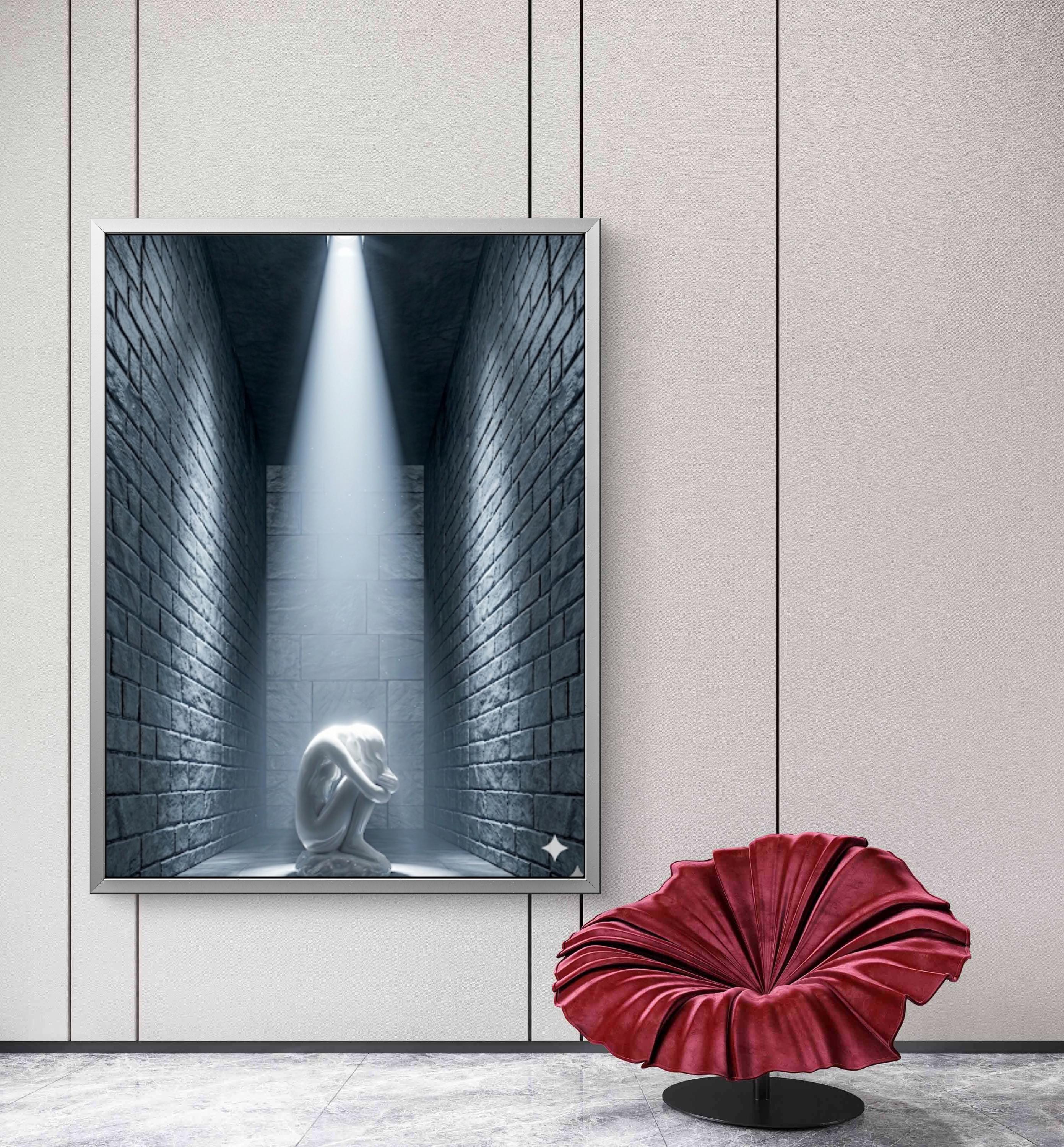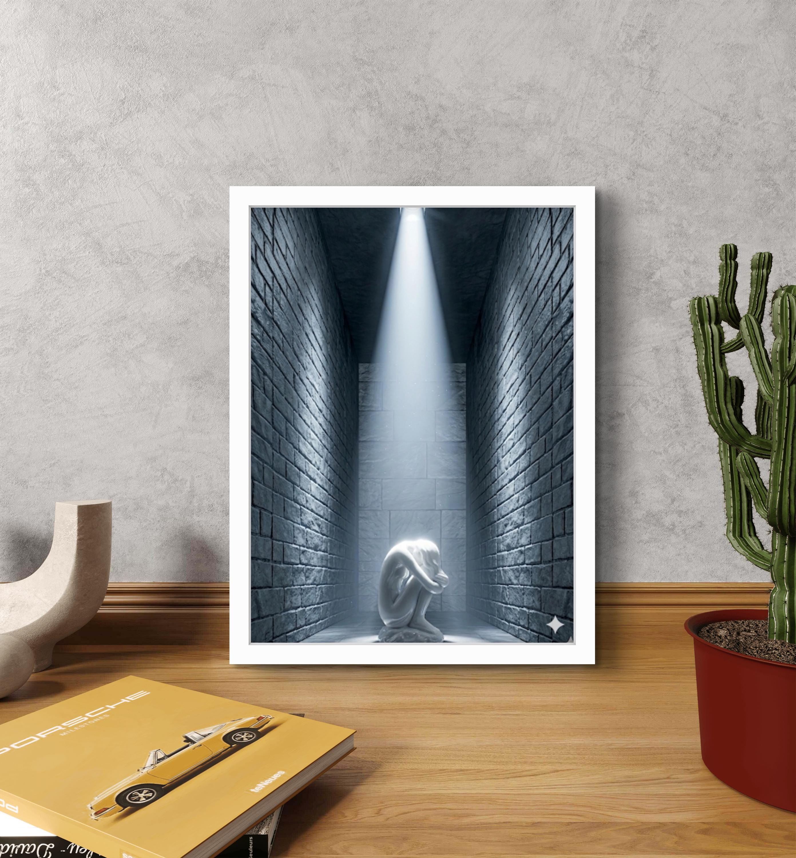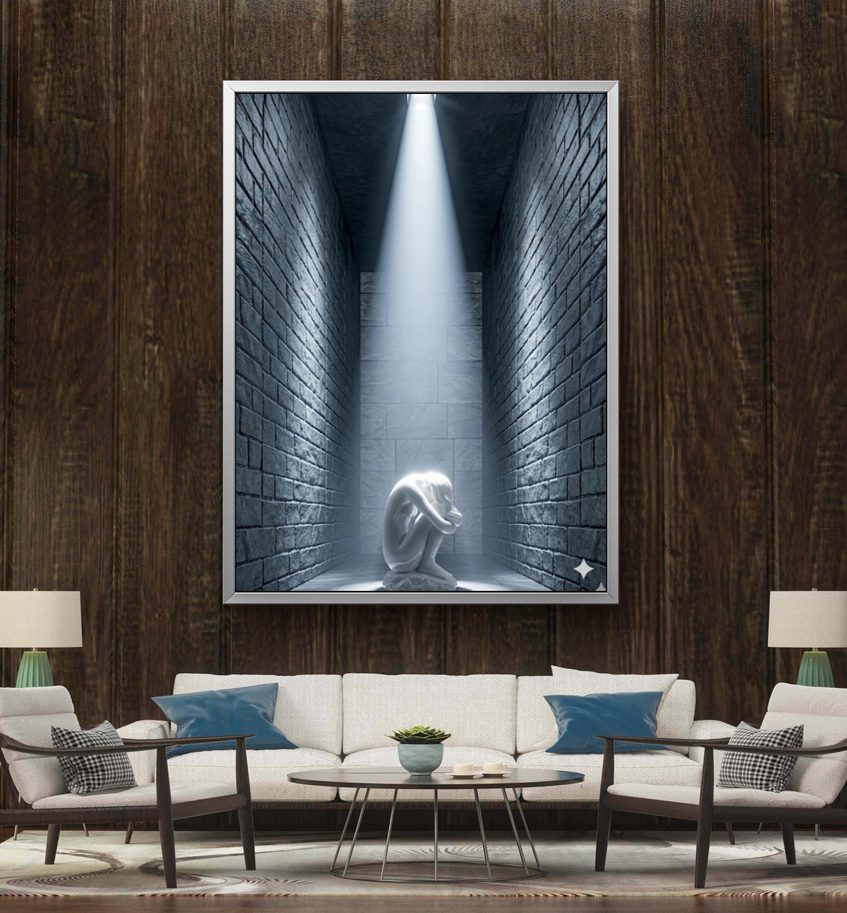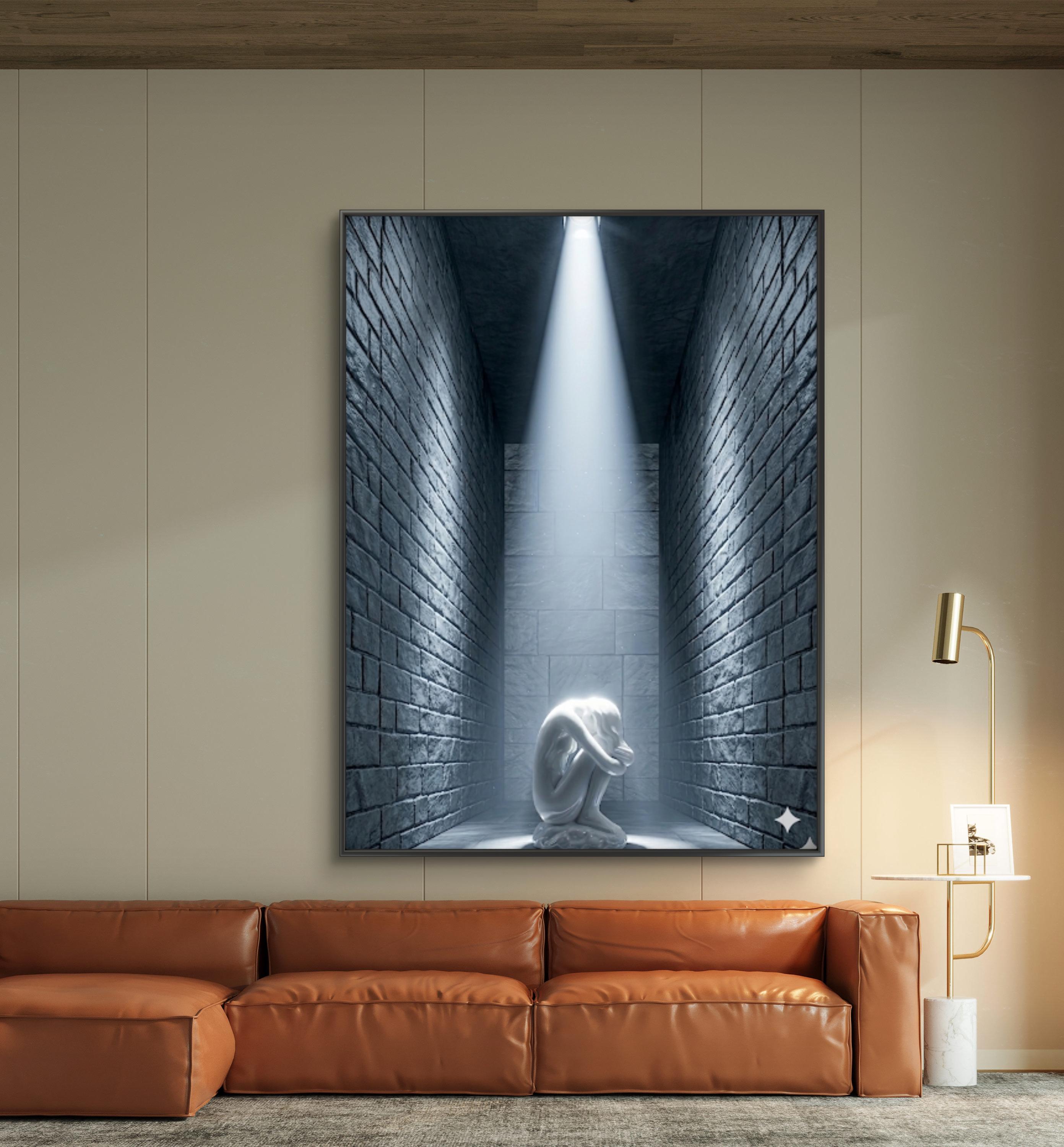 This artwork adds a poetic, reflective atmosphere to any space. Its neutral tones and emotional resonance make it ideal for modern interiors that appreciate subtlety and soul.