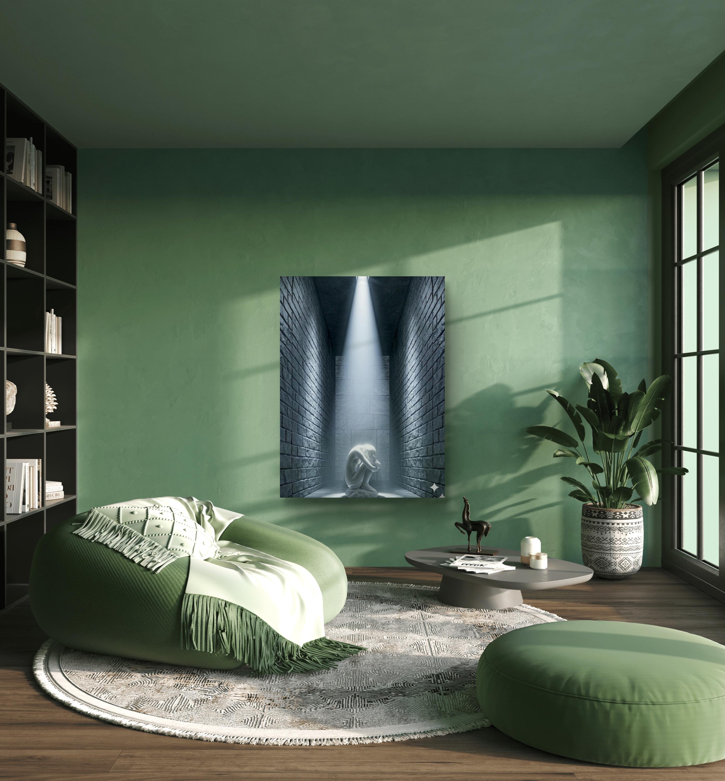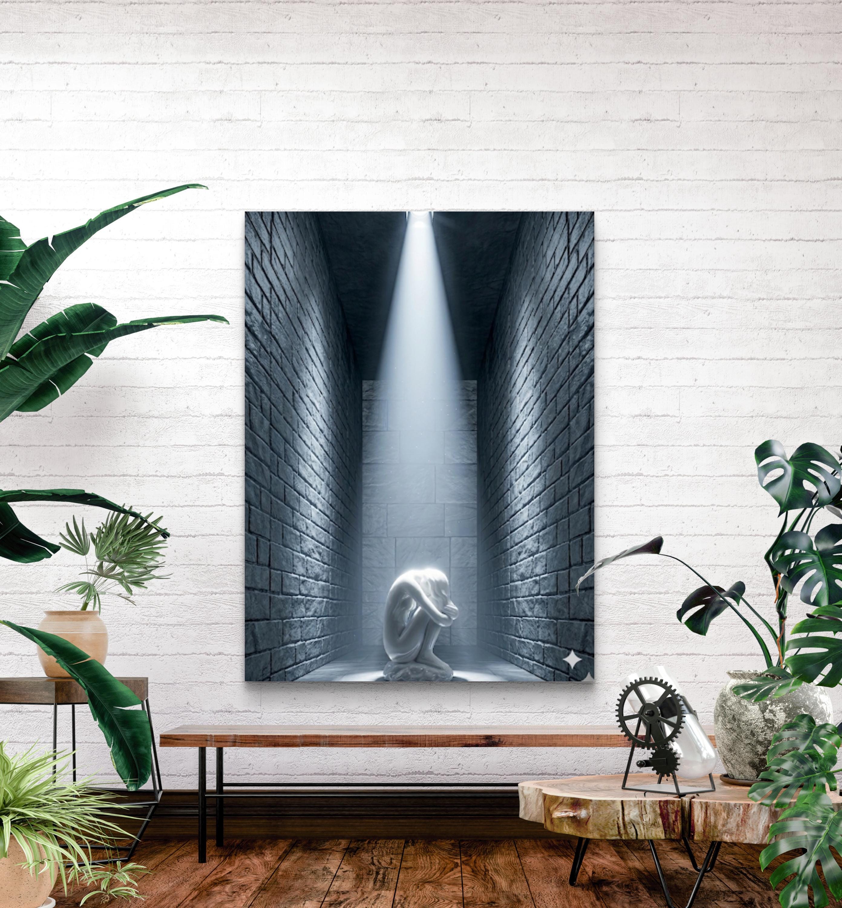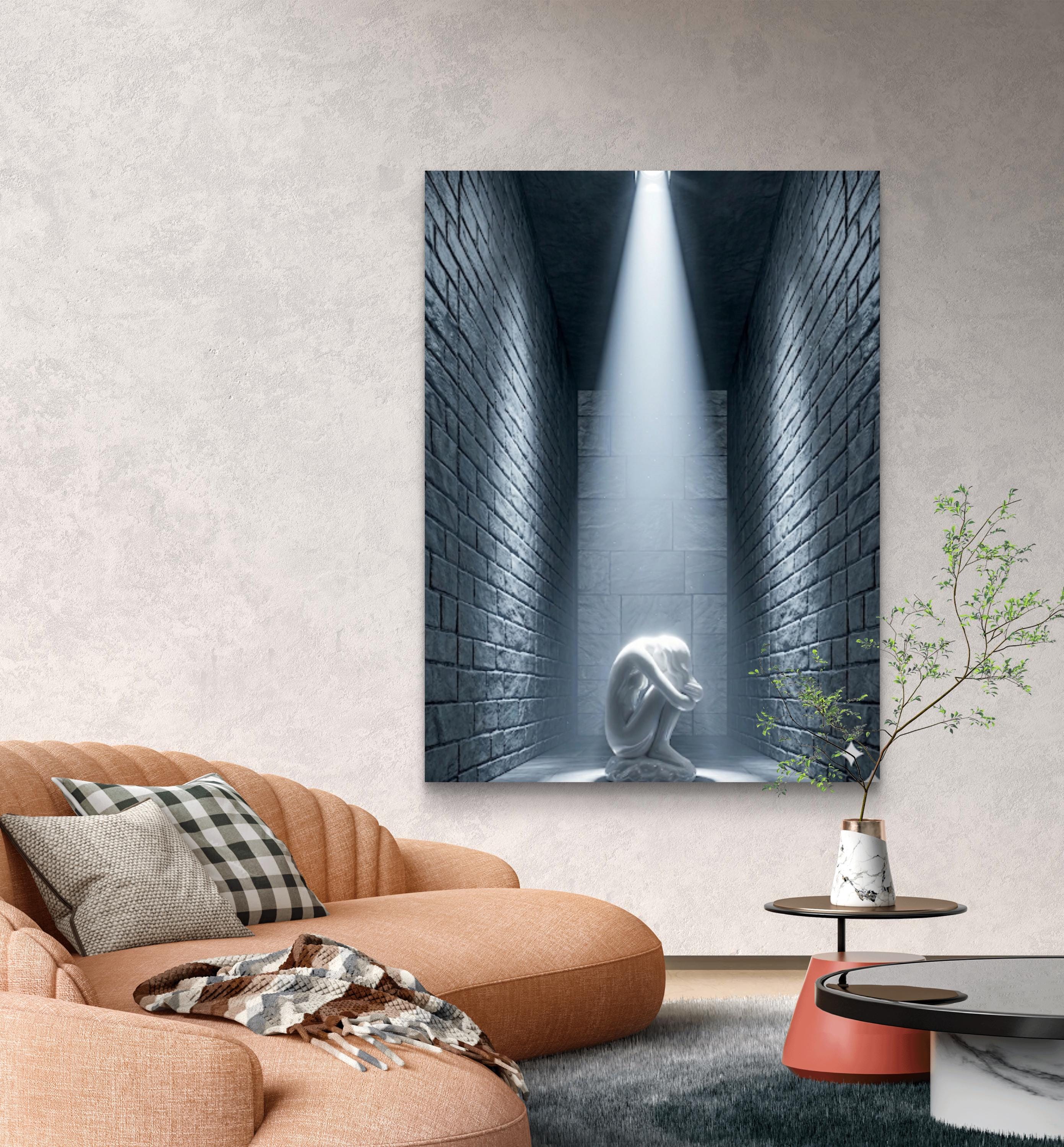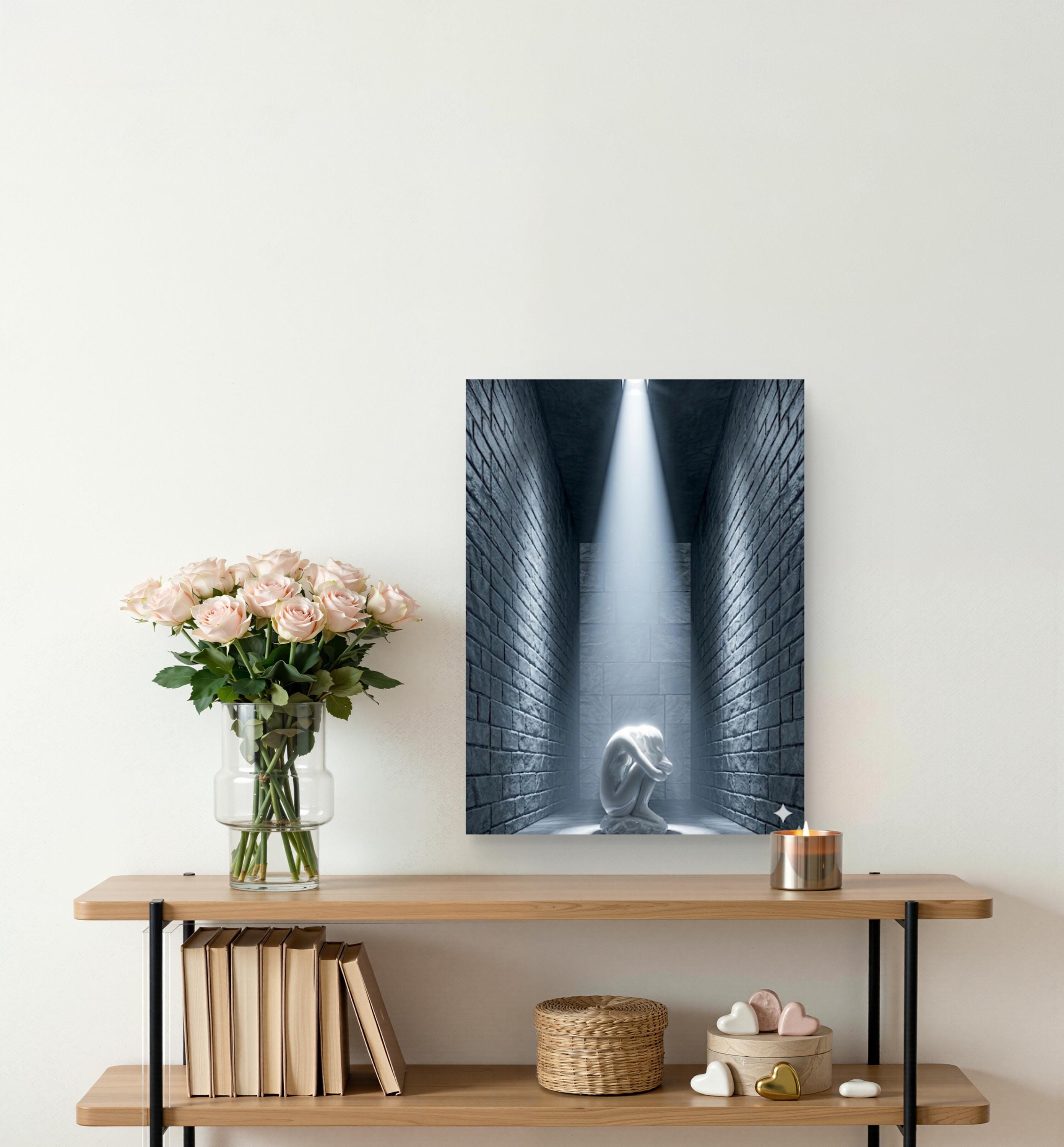 This artwork adds a poetic, reflective atmosphere to any space. Its neutral tones and emotional resonance make it ideal for modern interiors that appreciate subtlety and soul.